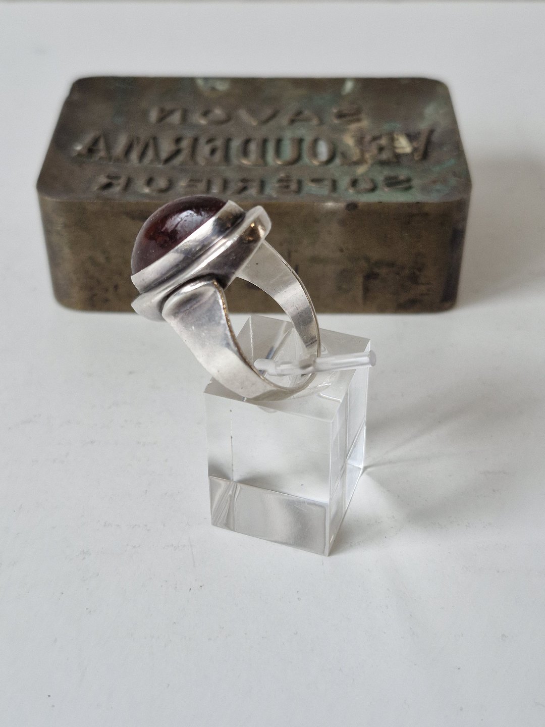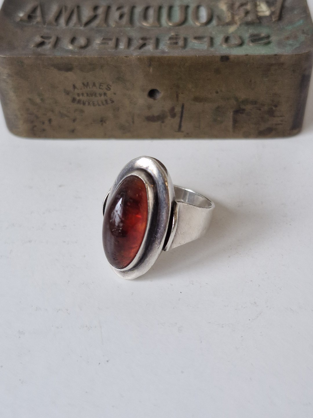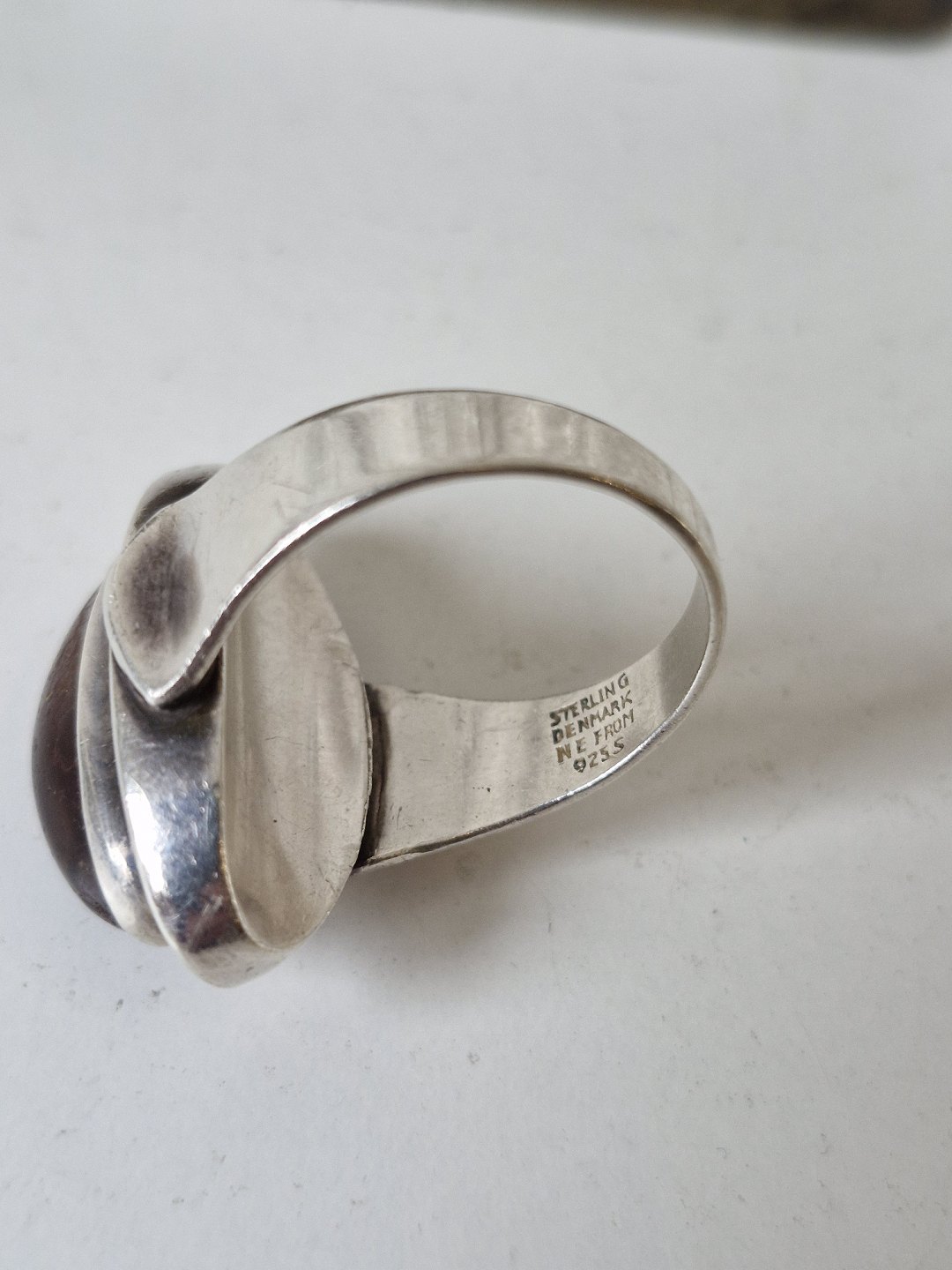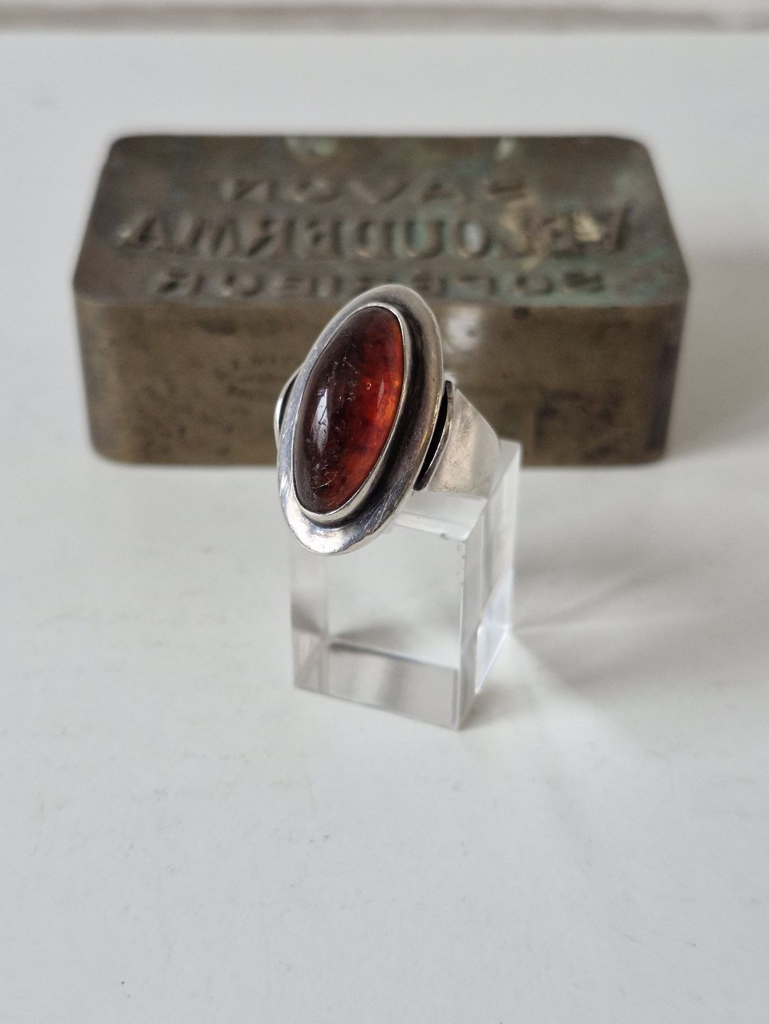 N.E.From vintage ring in sterling silver with oval amber pearlStamped: N.E.From - Sterling - Denmark