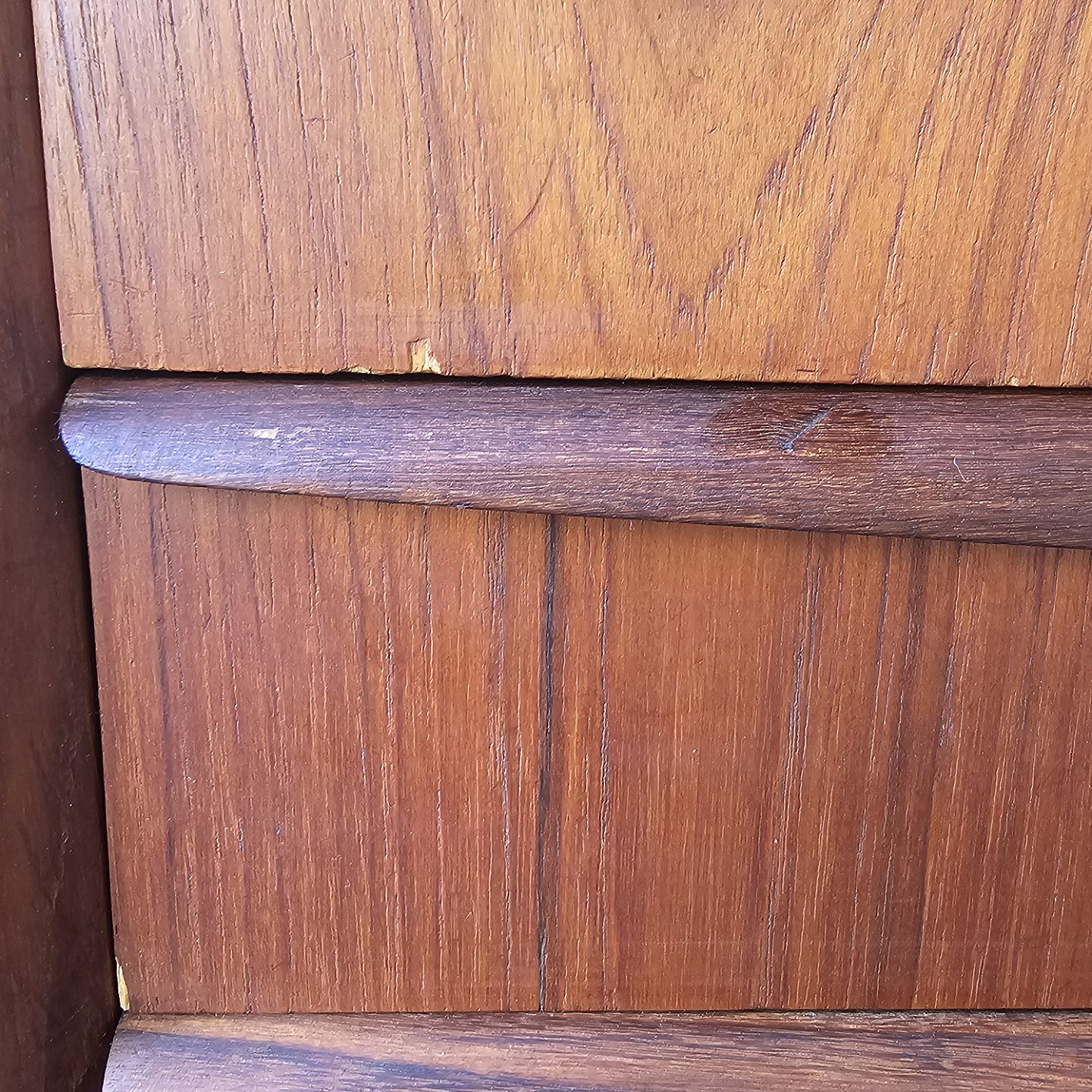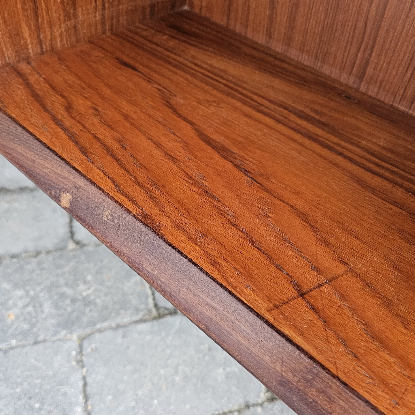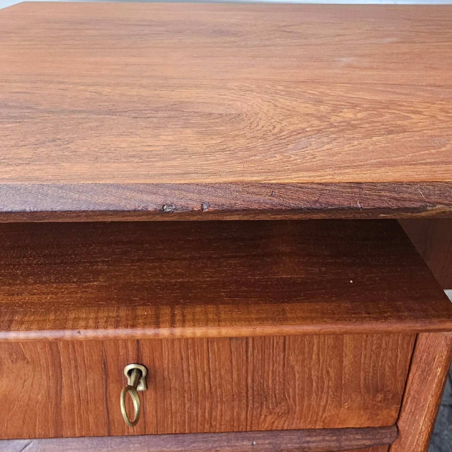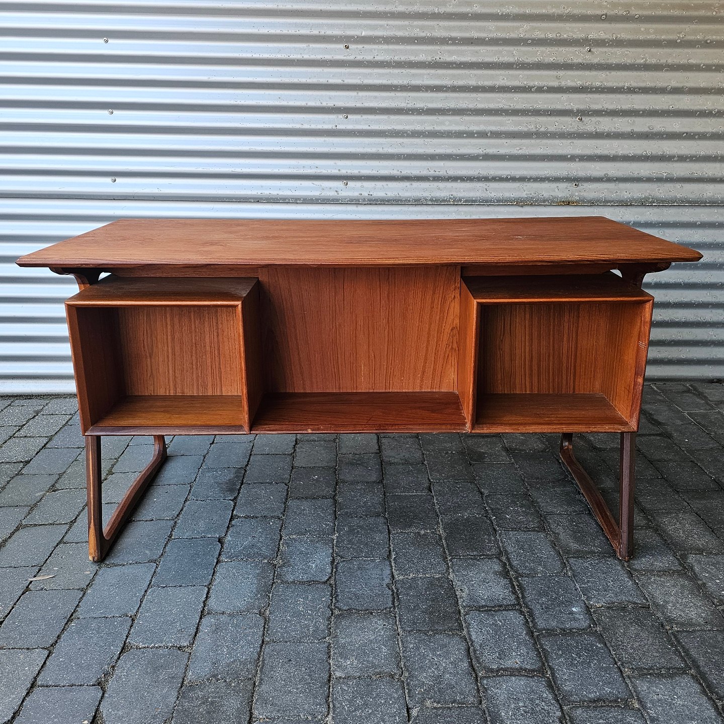 Skrivebord i teaktræ med skuffer i begge sider, øverste skuffer med nøgleDesign Svend Aage Madsen