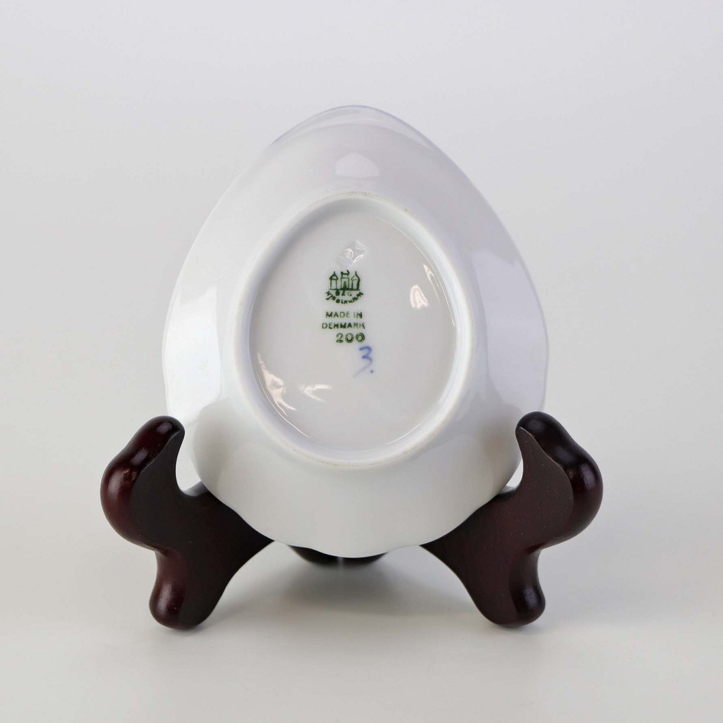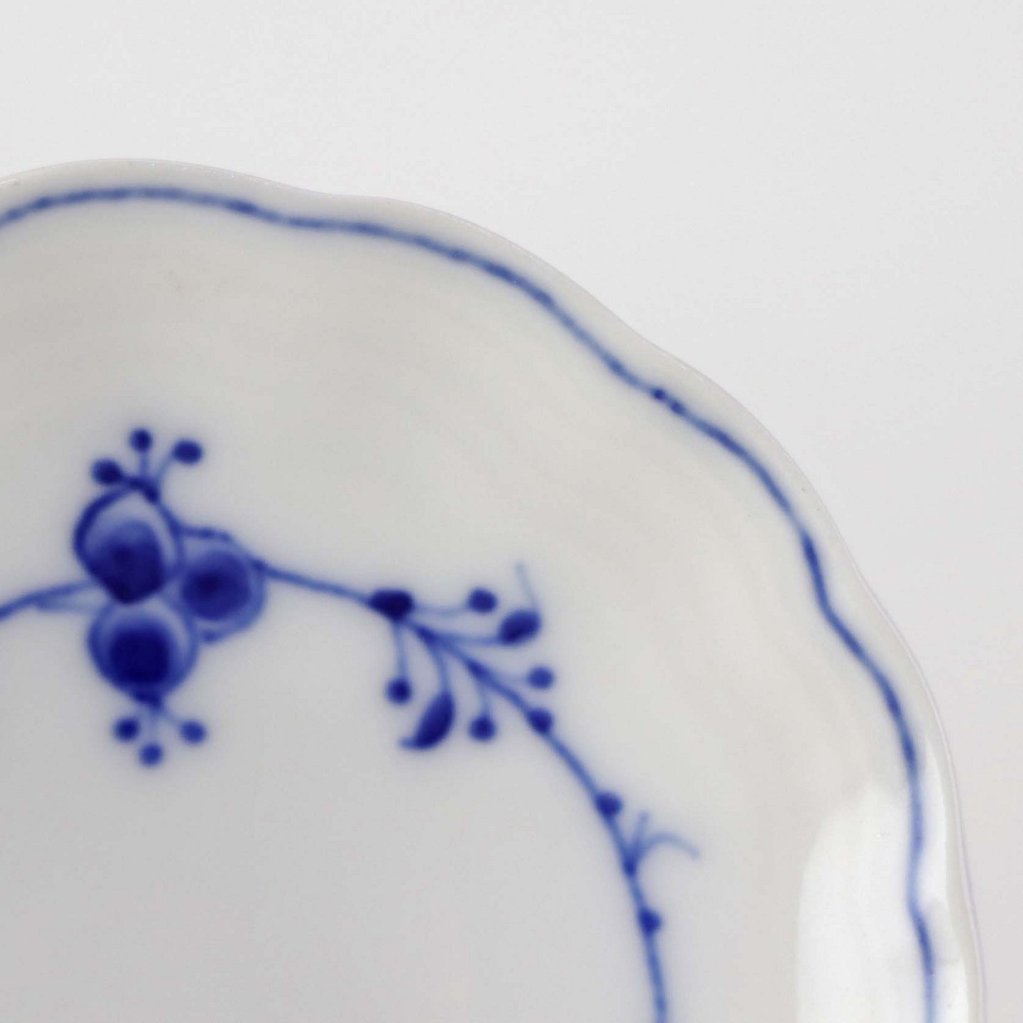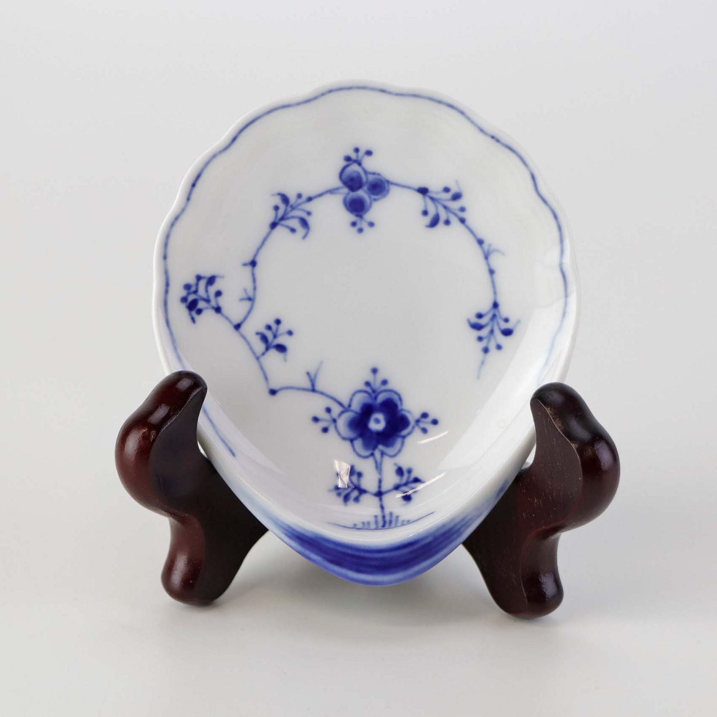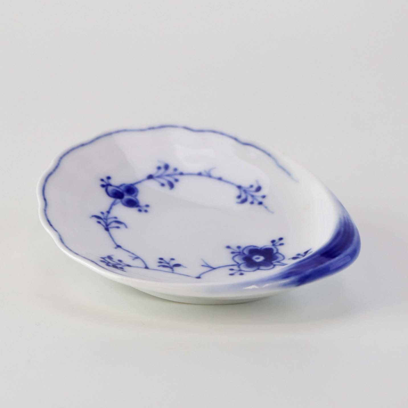 Muslingeformet kuvertasiet i porcelæn fra stellet Blåmalet. Nr. 200Producent Bing & Grøndahl