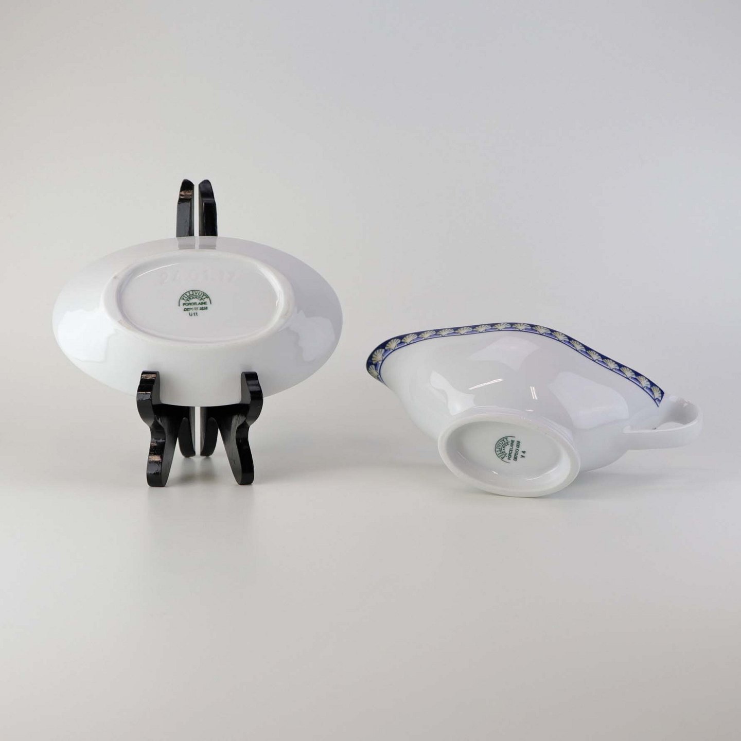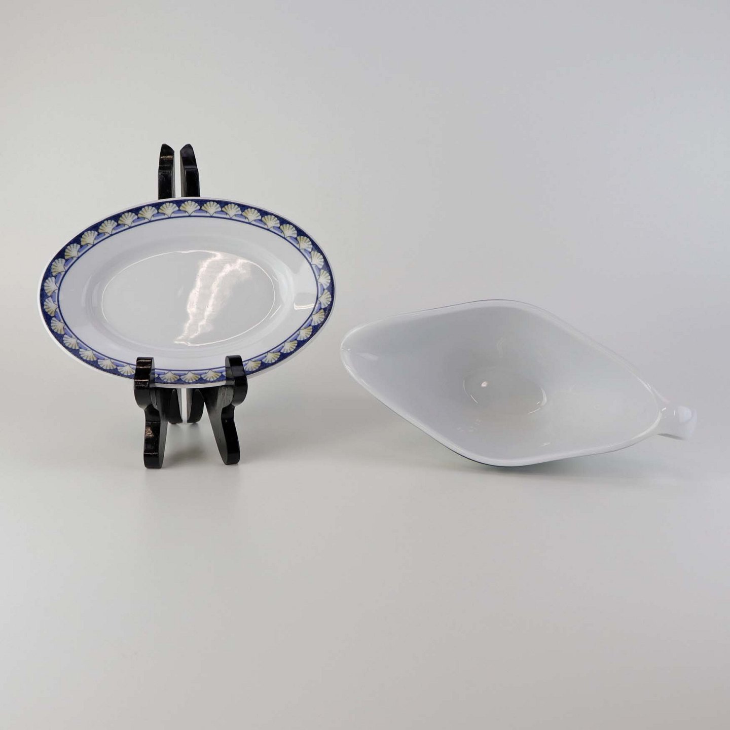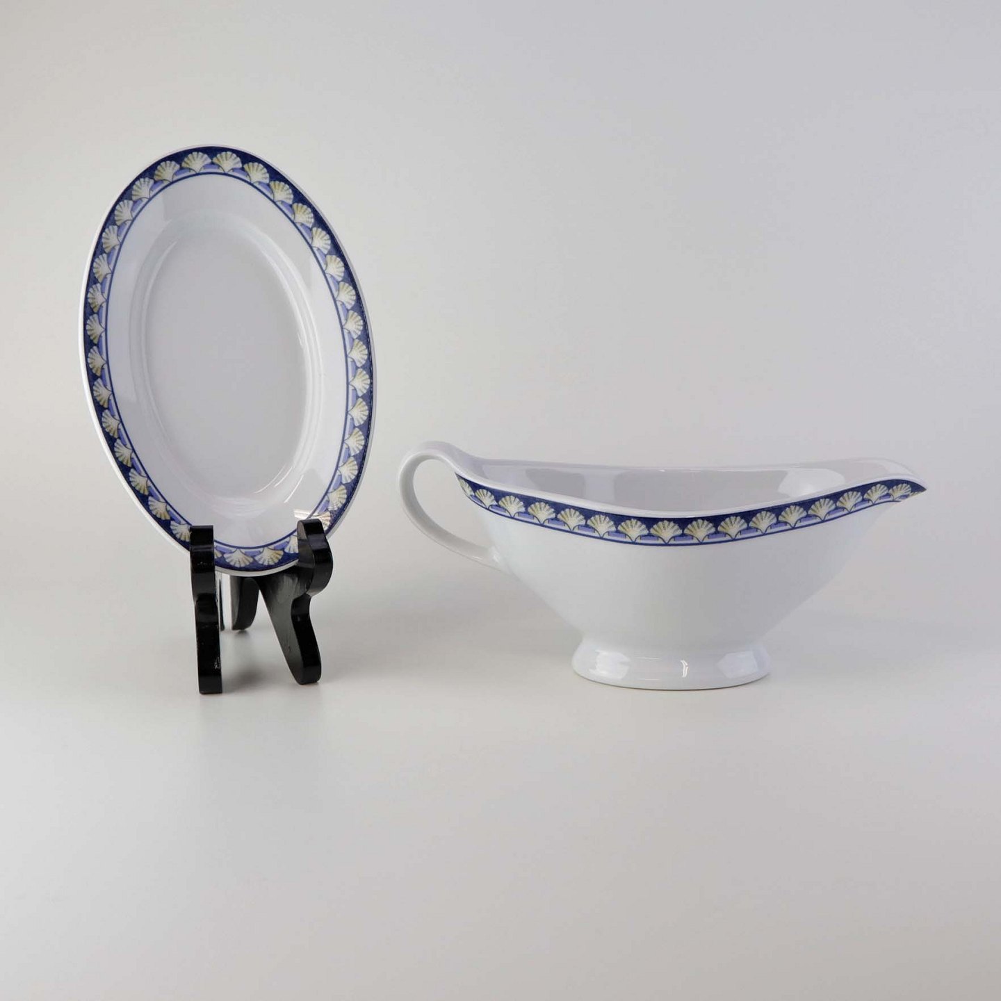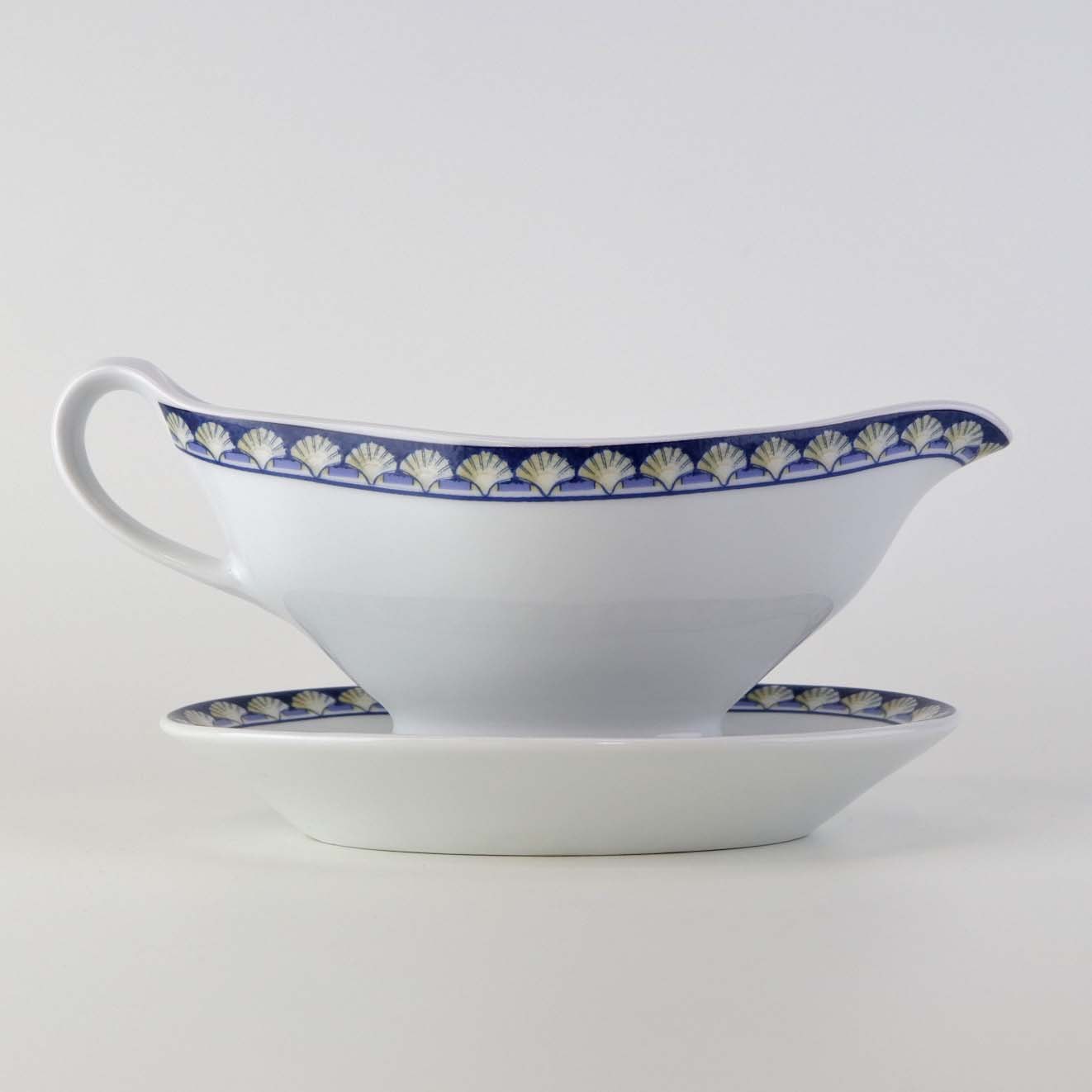 Saucekande med tilhørende underskål i porcelæn fra stellet Maeva. Nr. U11 og V4Producent Pillivuyt, France