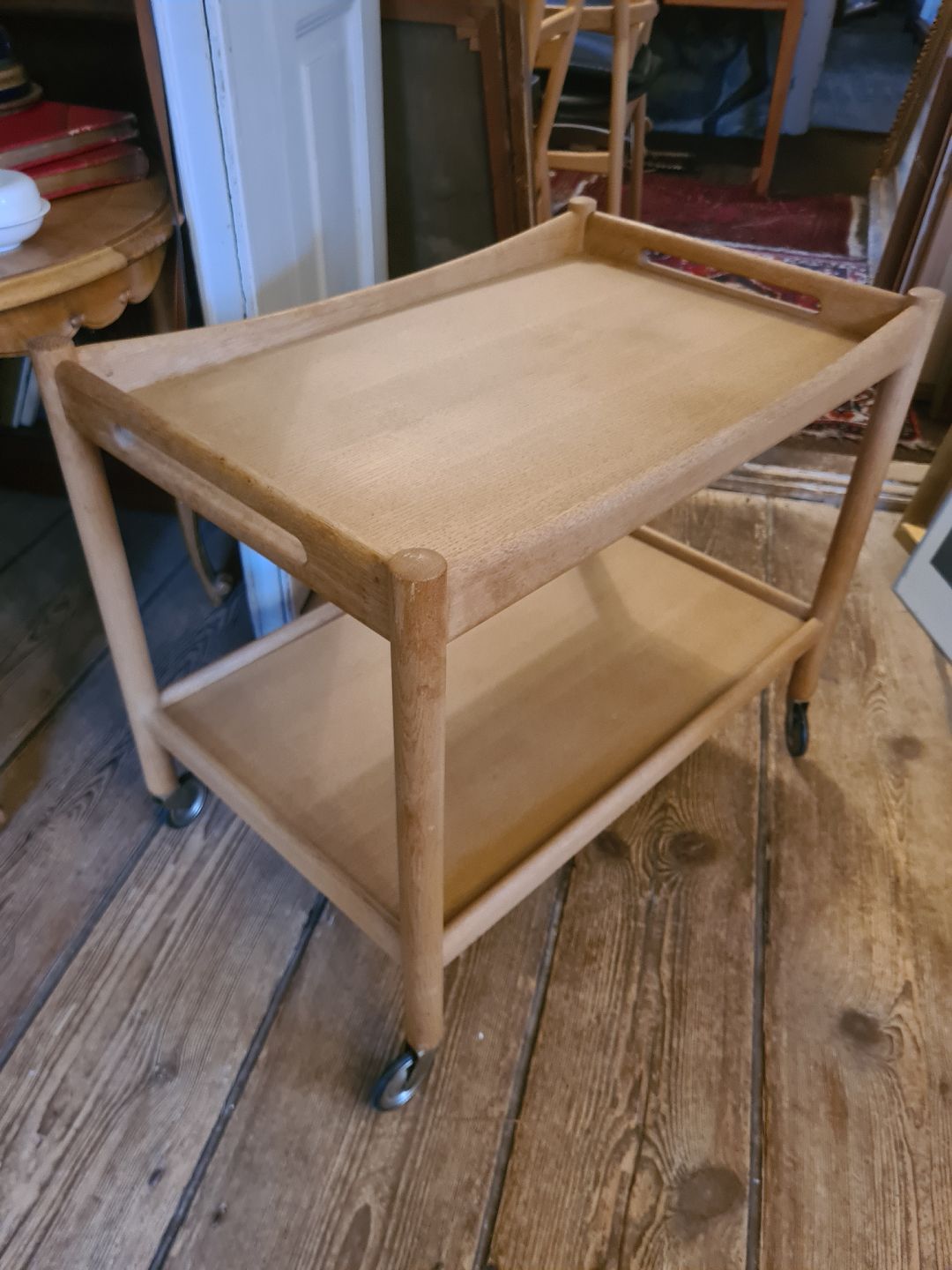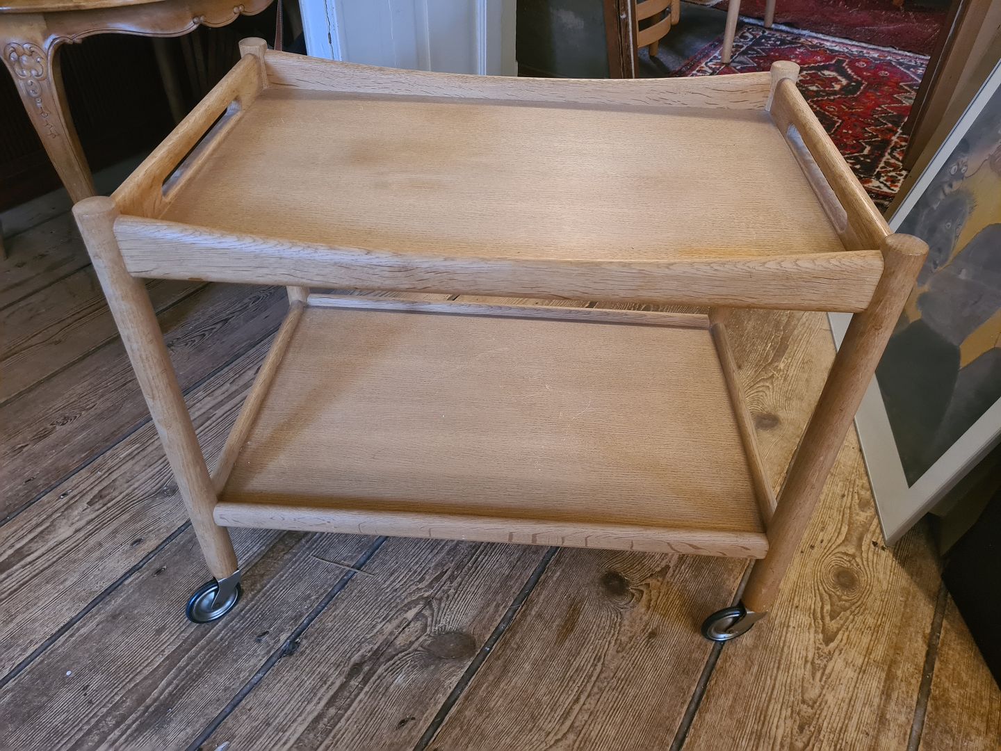 Rullebord i eg designet af Hans J. Wegner og fremstillet hos Andreas Tuck. Fremstår pænt og velholdt uden de store brugsspor. Højde 60 cm. Længde 72 cm. Bredde 47 cm.