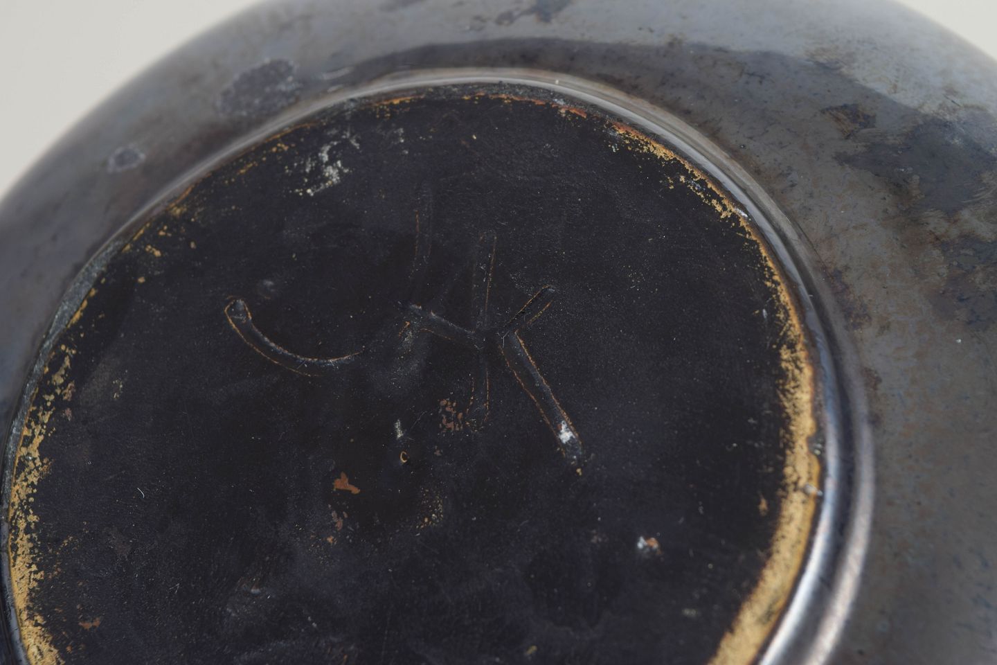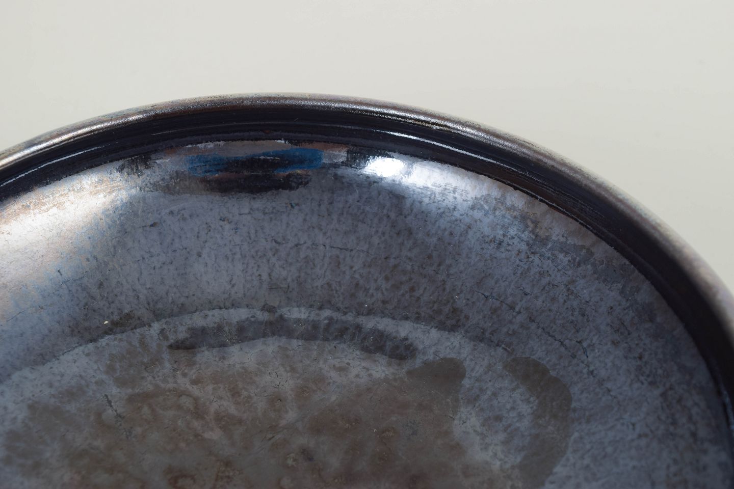 Svend Hammershøi for Kähler, bowl.Decorative stoneware bowl with a simple low form and characteristic luster glaze in dark tones with subtle variation across the surface. A classic example of Hammershøi’s refined design language and accomplished glaze work from the 1930s. Marked on the base.