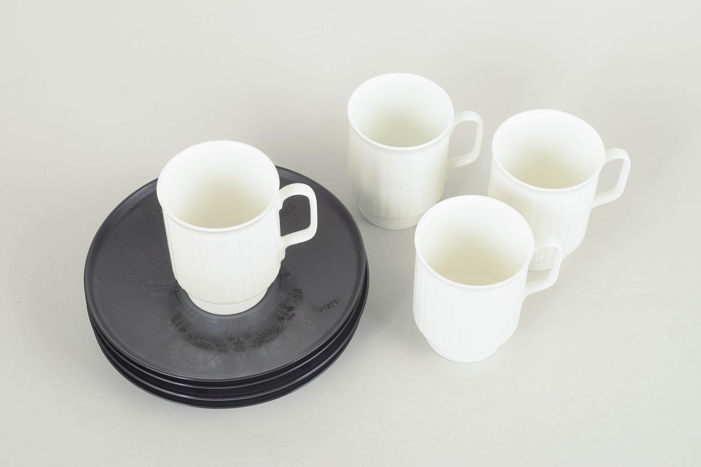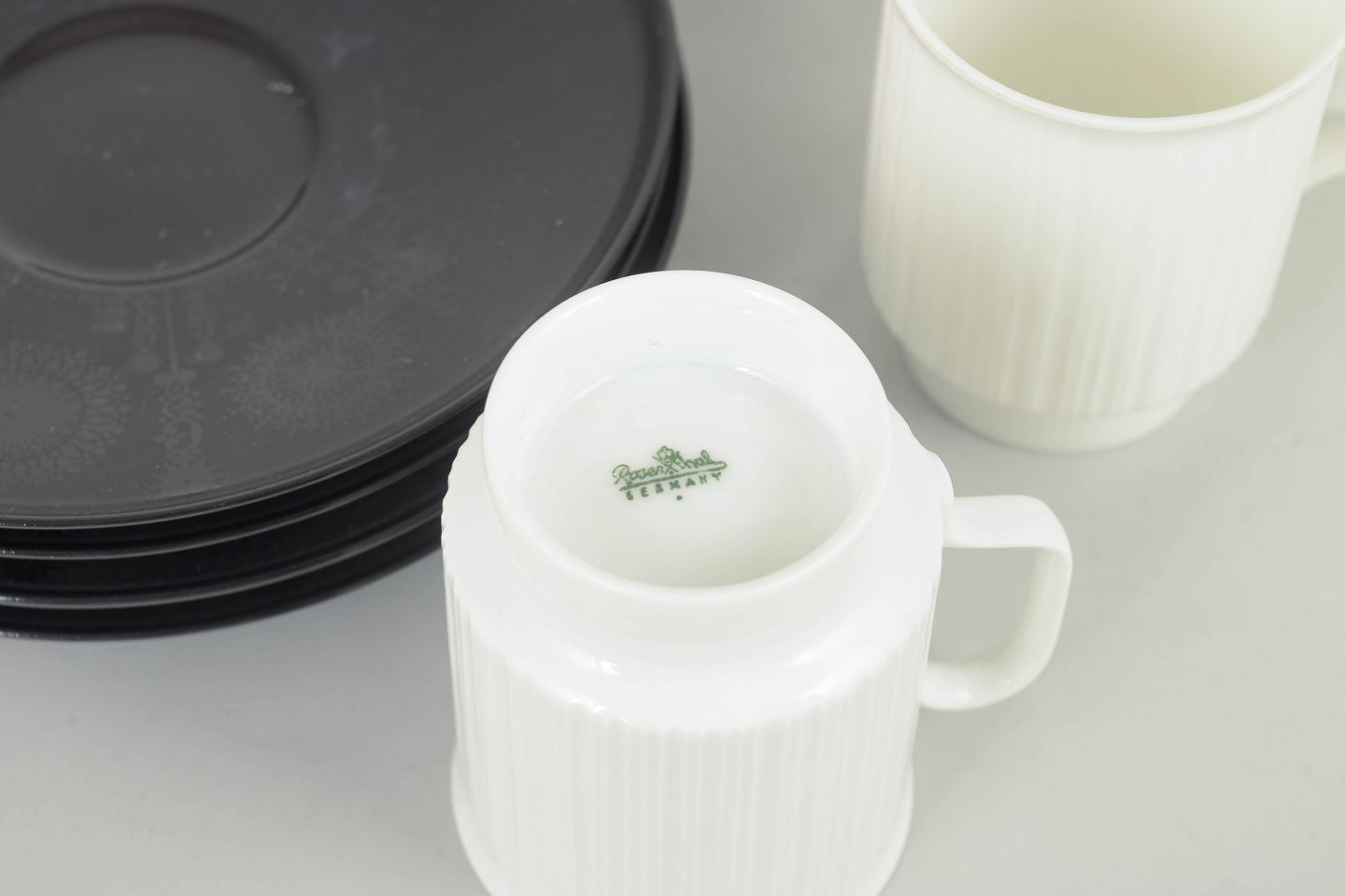 Tapio Wirkkala for Rosenthal, set of four demitasse espresso cups with matching saucers.Elegant porcelain espresso cups with matching saucers, designed in a refined and functional style characteristic of Tapio Wirkkala’s work for Rosenthal in the 1980s.
