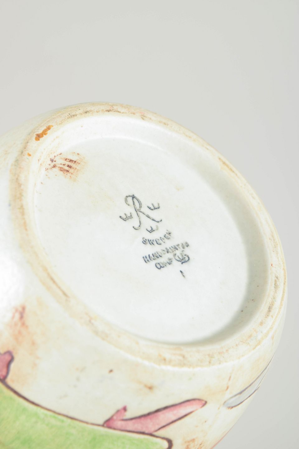 Carl-Harry Stålhane (1920–1990) was a Swedish ceramicist and designer, known for his work at Rörstrand where he played a central role in the development of modern Scandinavian stoneware. He produced both factory designs and unique artistic pieces, particularly recognized for his hand-painted decoration and refined forms. His works are highly collectible today.