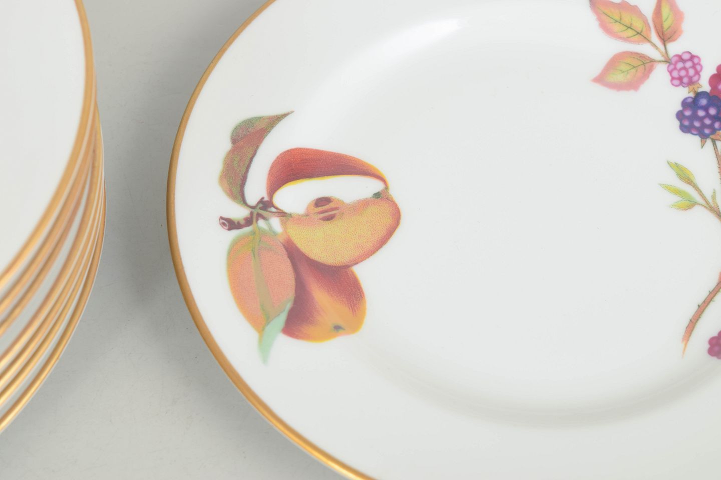 Royal Worcester Evesham, set of eight cake plates.Decorative porcelain with classic fruit decoration in warm tones and a gilt rim. Evesham model.