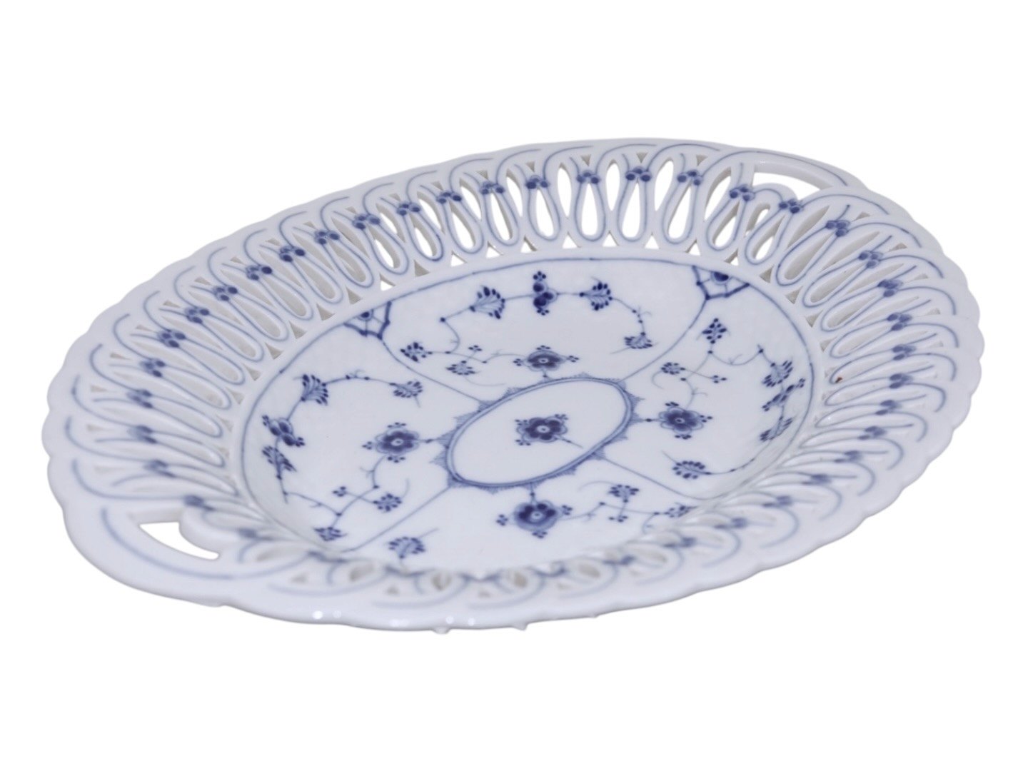 Bing & Grøndahl Blue Traditional / Blue Fluted, rare large tray with pierced border.The factory mark tells, that this was produced between 1902 and 1914.