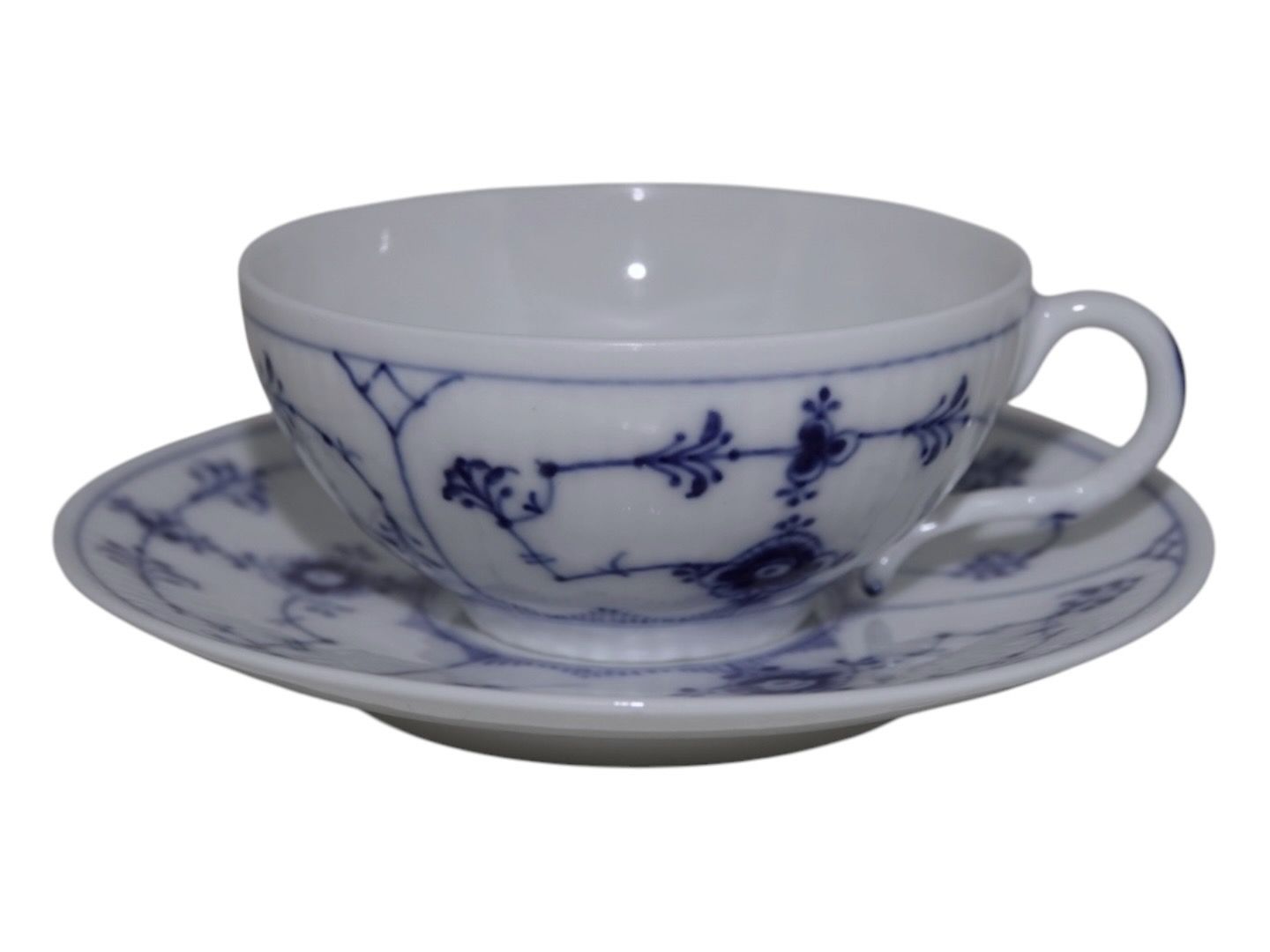 Royal Copenhagen Blue Fluted Plain, small chocolate cup with matching saucer.