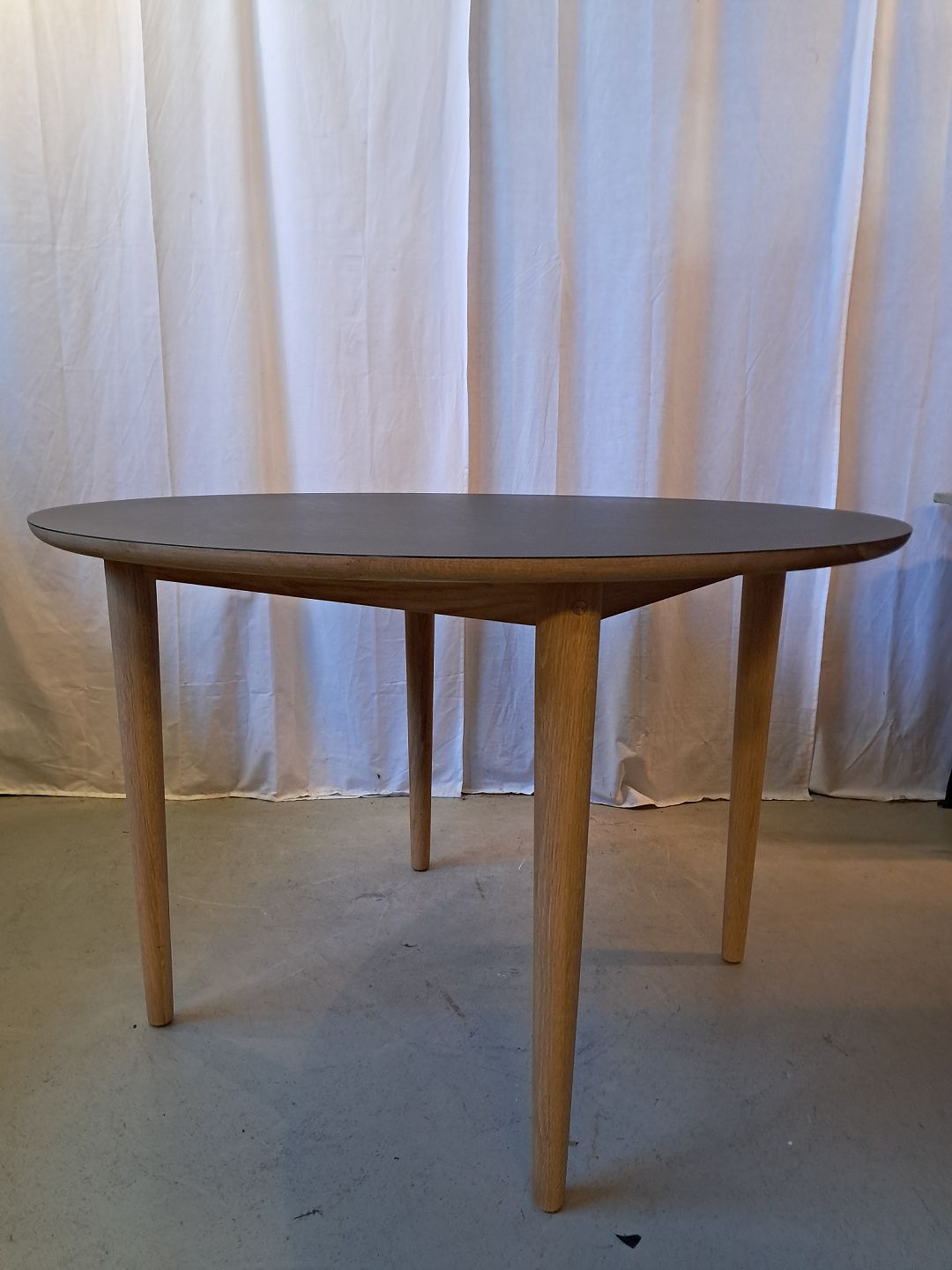 Rundt FDB spisebord modl C62,i egetræ med formikaplade, fra 2020erne.