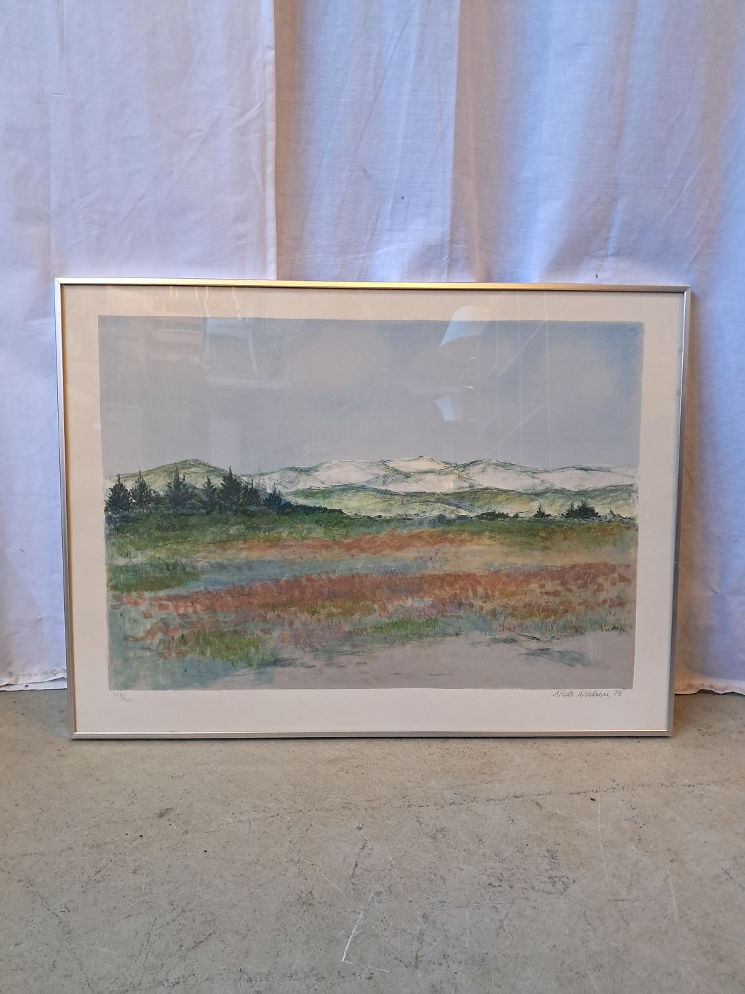 Signeret tryk i aluramme, fra 1980erne.Højde 62cm Bredde 78cm