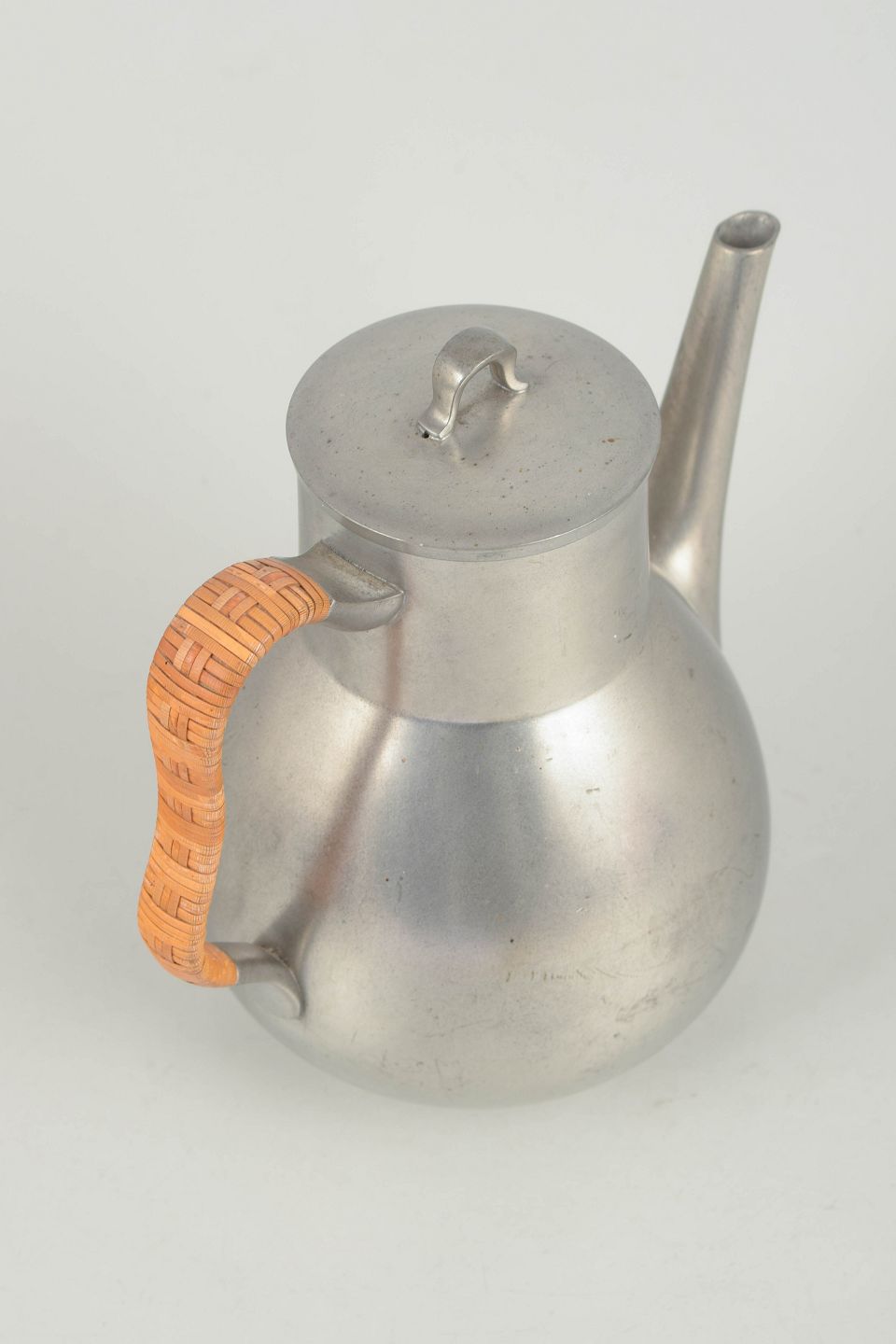 Just Andersen, coffee pot in pewter.Coffee pot in pewter with wicker handle and an elegant rounded body, executed in a refined art deco design. Model 2661.