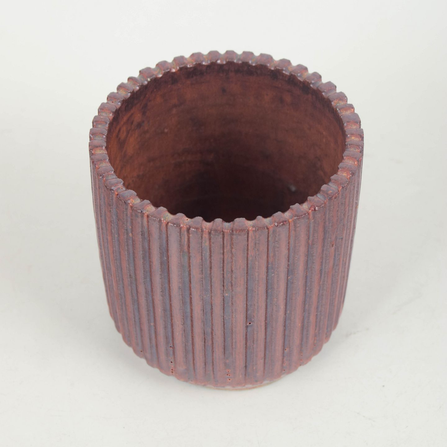 Arne Bang, art deco vase.Cylindrical stoneware vase with vertical fluting and a deep brown-purple glaze with warm tonal variations.
