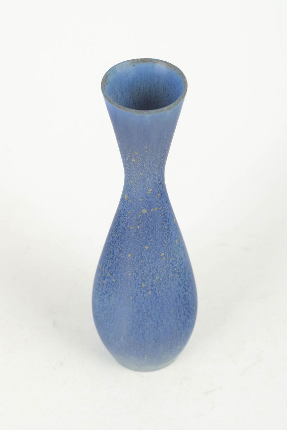Slender baluster-shaped stoneware vase with a beautiful blue glaze featuring subtle variations and a gently constricted neck. A classic example of Stålhane’s refined forms and sophisticated glazing.
