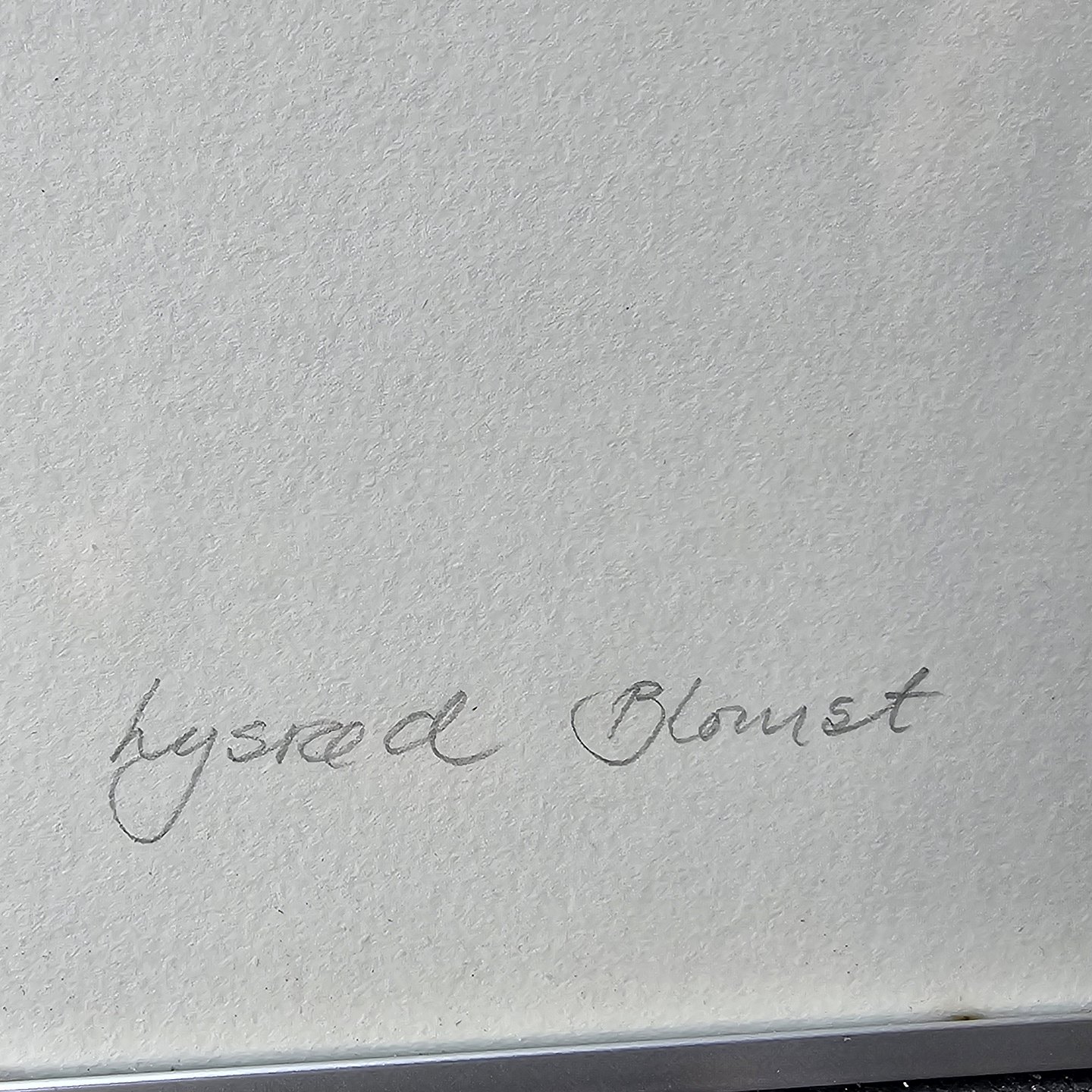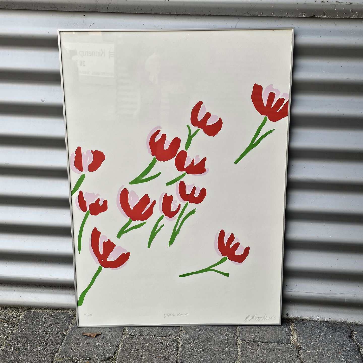 Litografi med motiv af lyserøde blomster monteret i metal rammeNr. 101/250