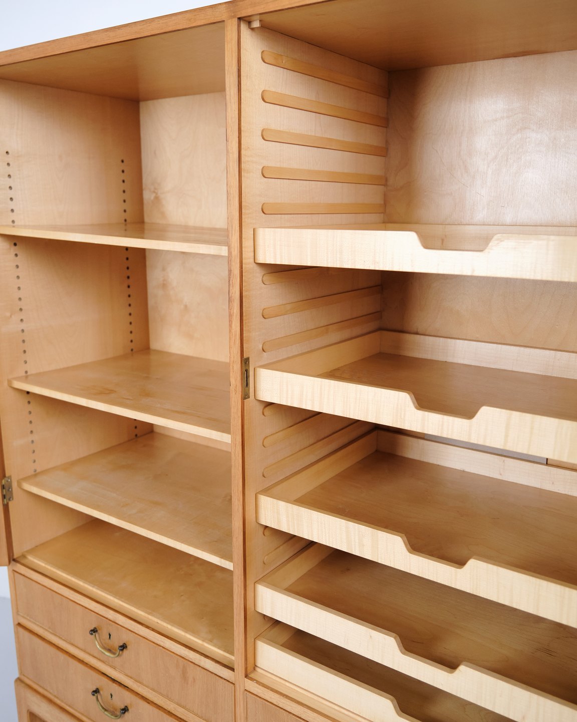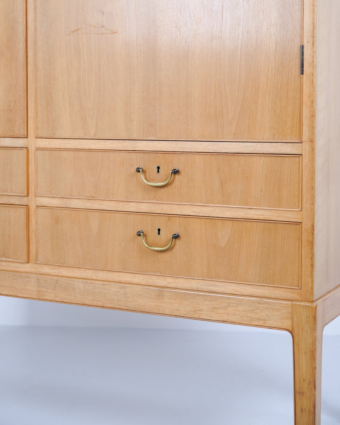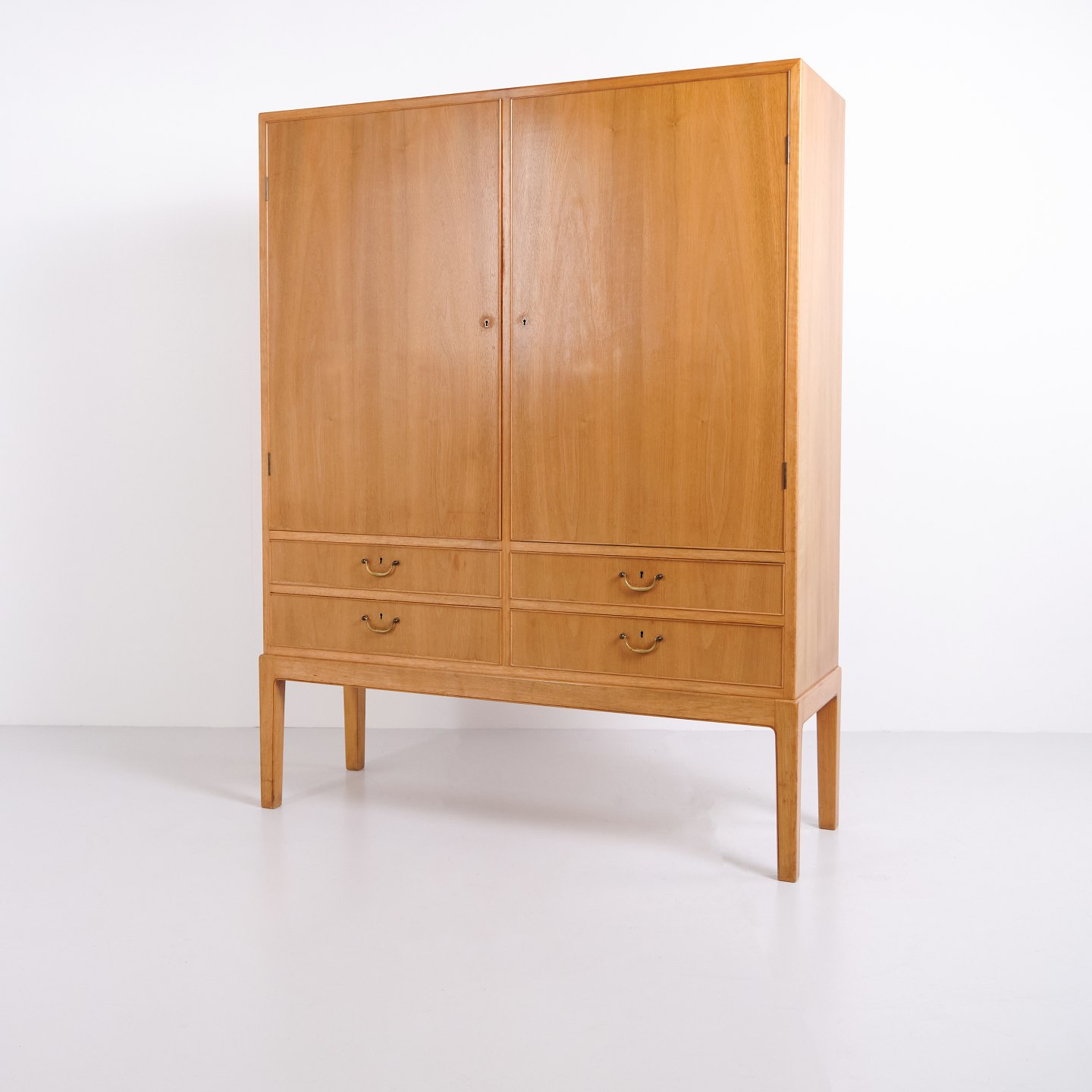 Cabinet for tableware designed by Ole Wanscher and produced by A.J. Iversen in the 1940s. Crafted in light walnut with elegant proportions and precise cabinetmaking details. The model is suitable for storing porcelain, glassware, cutlery and serving pieces, with practical interior storage and useful depth. Ole Wanscher is known for furniture with classical references, refined lines and strong material understanding, while A.J. Iversen is regarded as one of the most respected Danish cabinetmakers of the 20th century.— Origin: Denmark