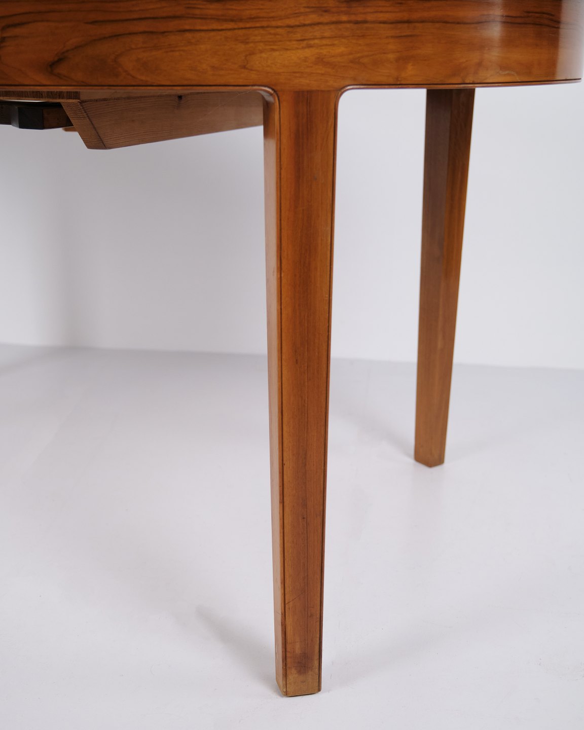 Oval dining table made in Danish design in the 1960s. Crafted in rosewood with pronounced grain. The table features extension function with four leaves consisting of three leaves measuring 55 cm each and one leaf measuring 30 cm. Total extended length is 345 cm. Suitable as a dining table, conference table or long table.