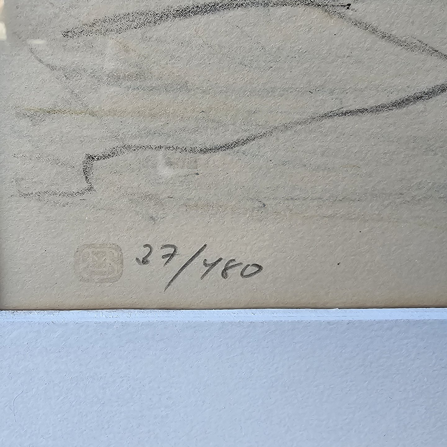 Litografi på papir med motiv af mennesker i et gadekryds. Monteret i sortmalet trærammeNr. 37/480