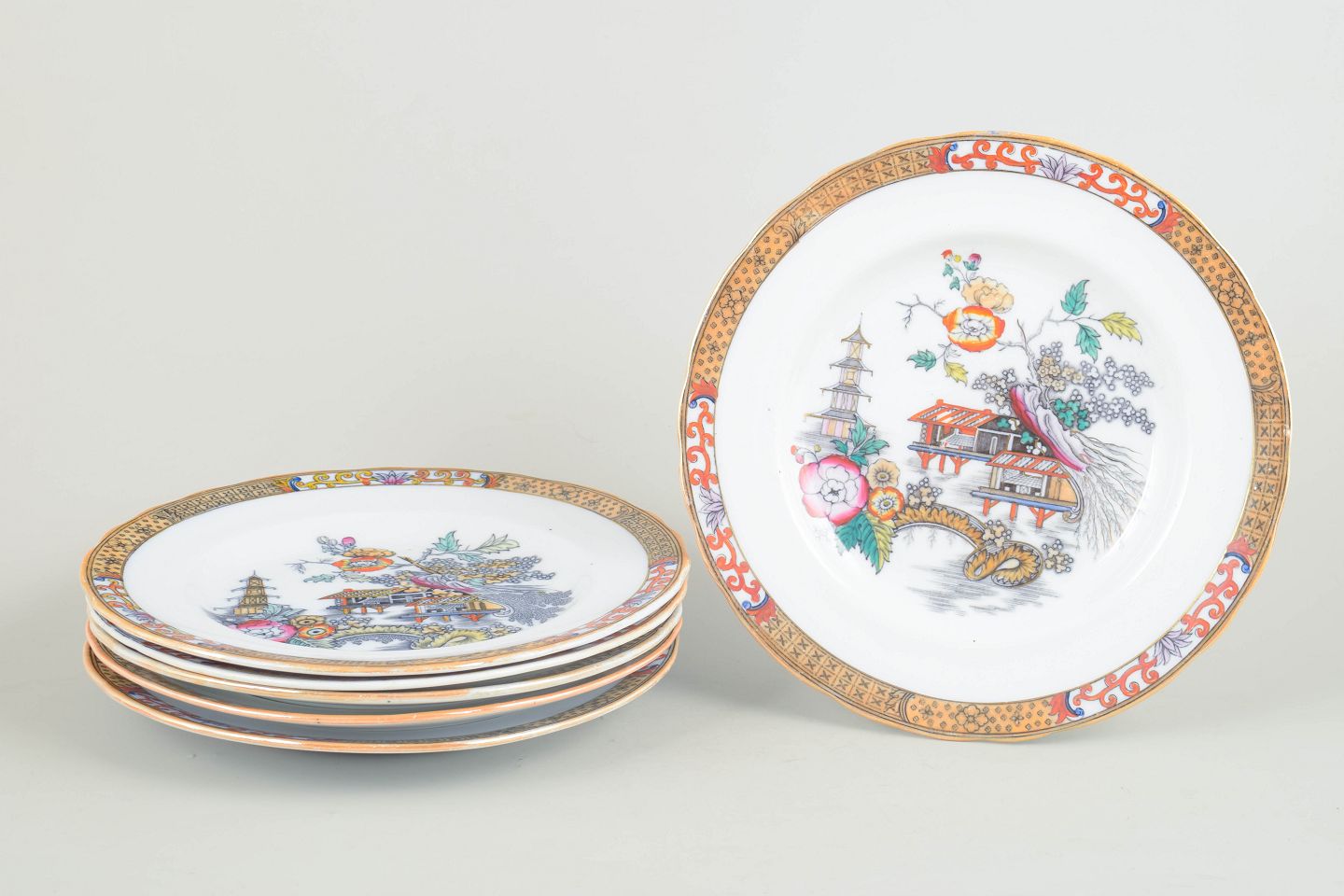 Dinner plates in faience with oriental-inspired decoration in polychrome colours and finely detailed painting in Japanese style, characteristic of Rörstrand’s japonisme production from the early 20th century.