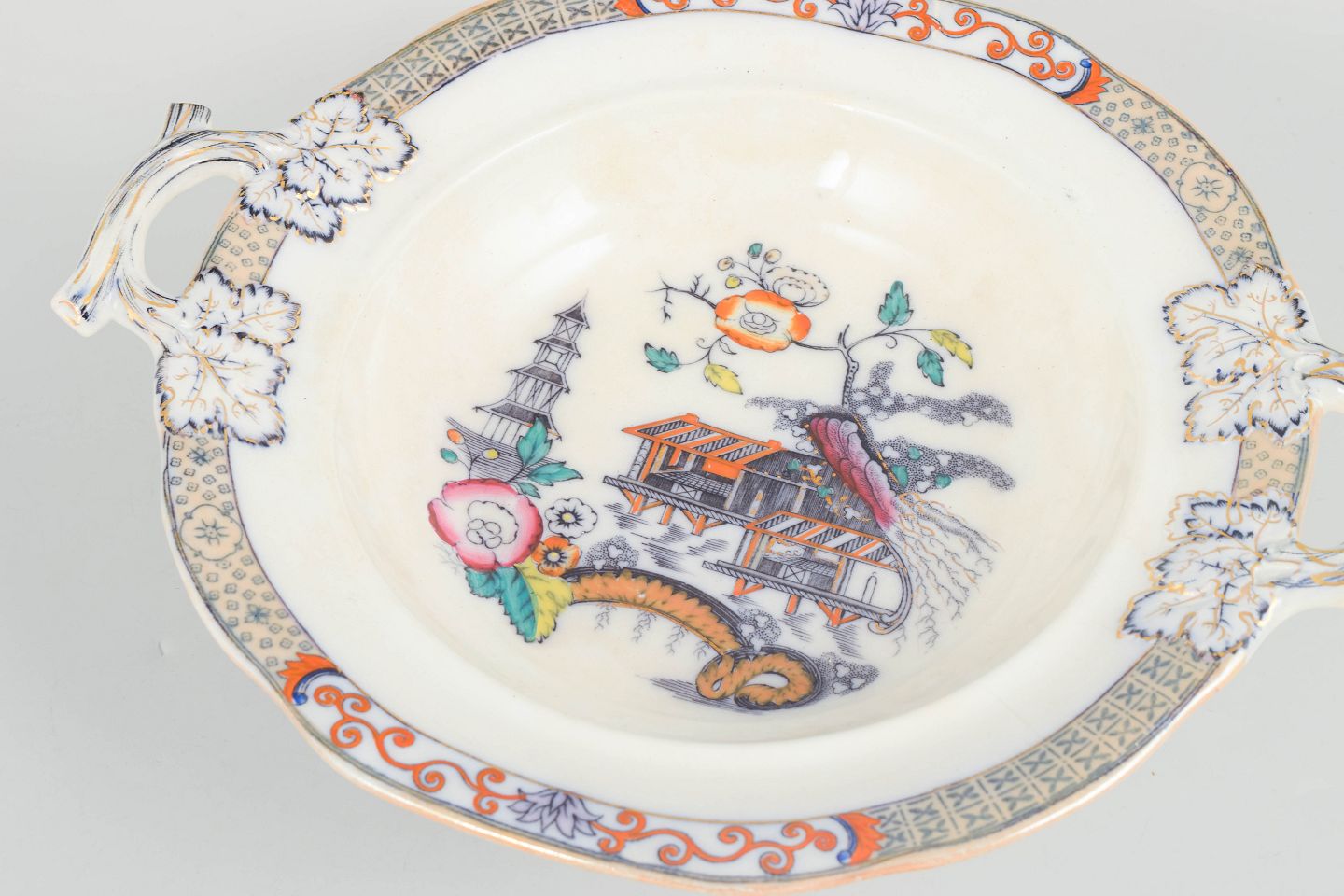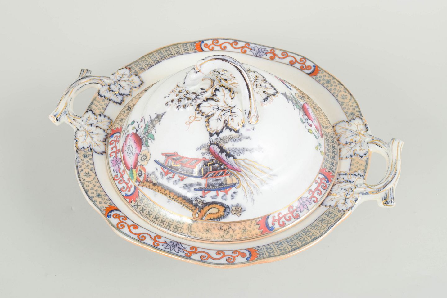 Rörstrand Japan series, lidded tureen.Faience tureen with oriental-inspired decoration in polychrome colours and finely detailed painting in Japanese style, characteristic of Rörstrand’s japonisme production from the early 20th century.