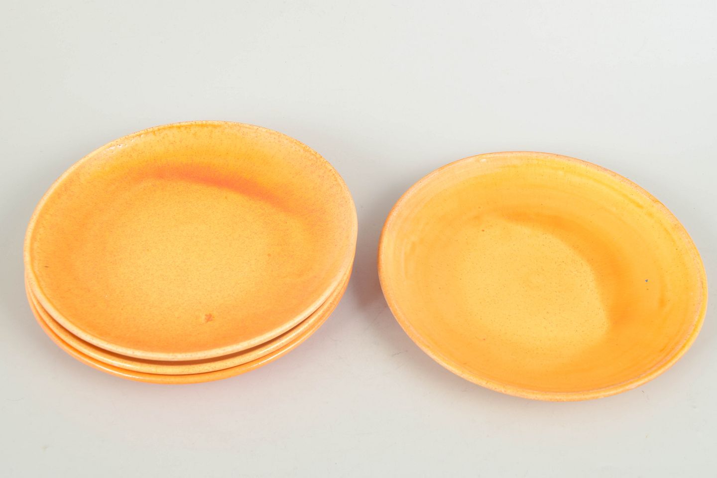 Kähler, set of four plates.Four ceramic plates with uranium glaze in warm golden tones, produced by Kähler in the 1930s.