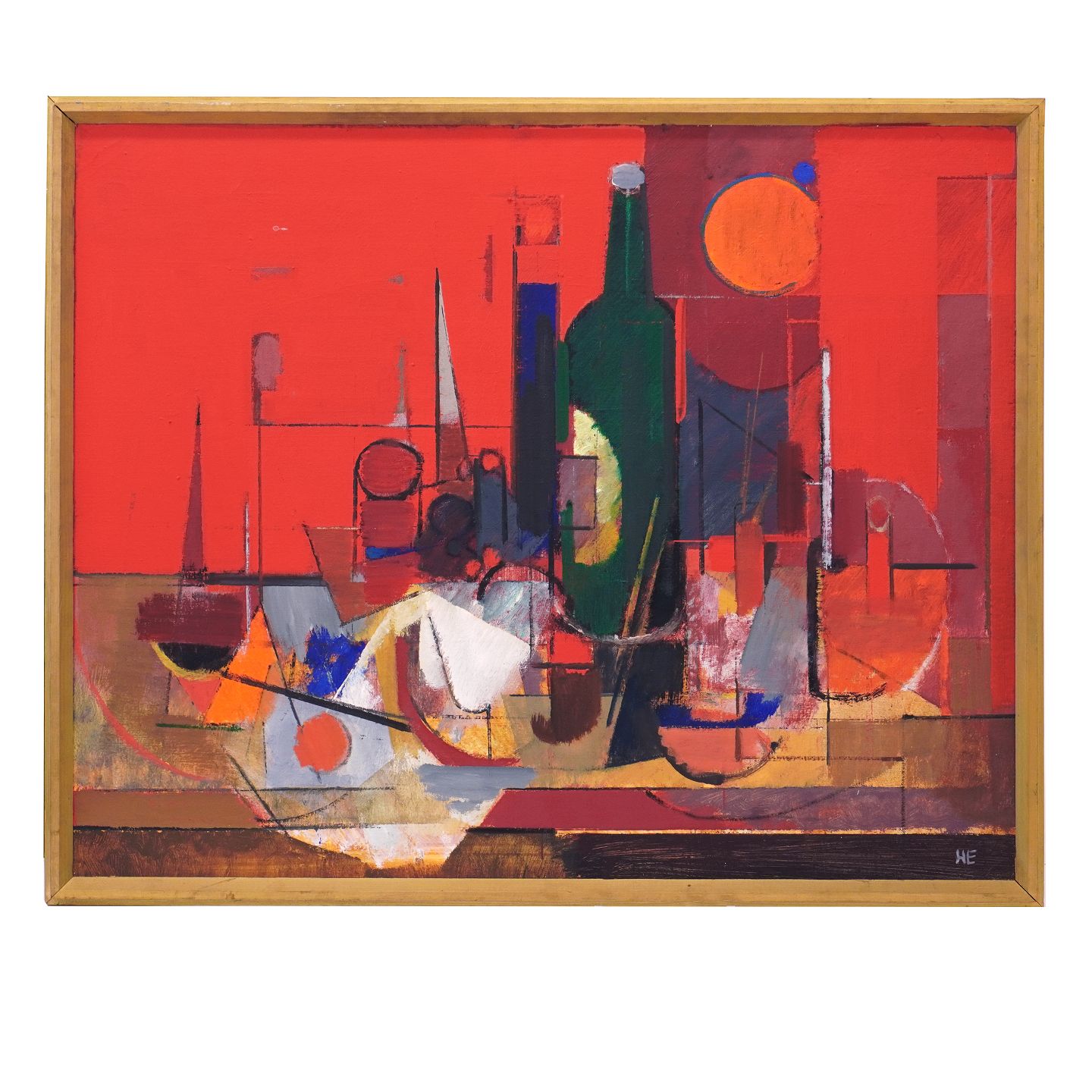 Helge Ernst, 1916-91, oil on canvas. "The Green Bottle", signed and dated 1975