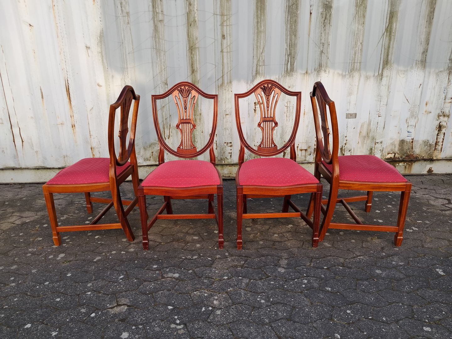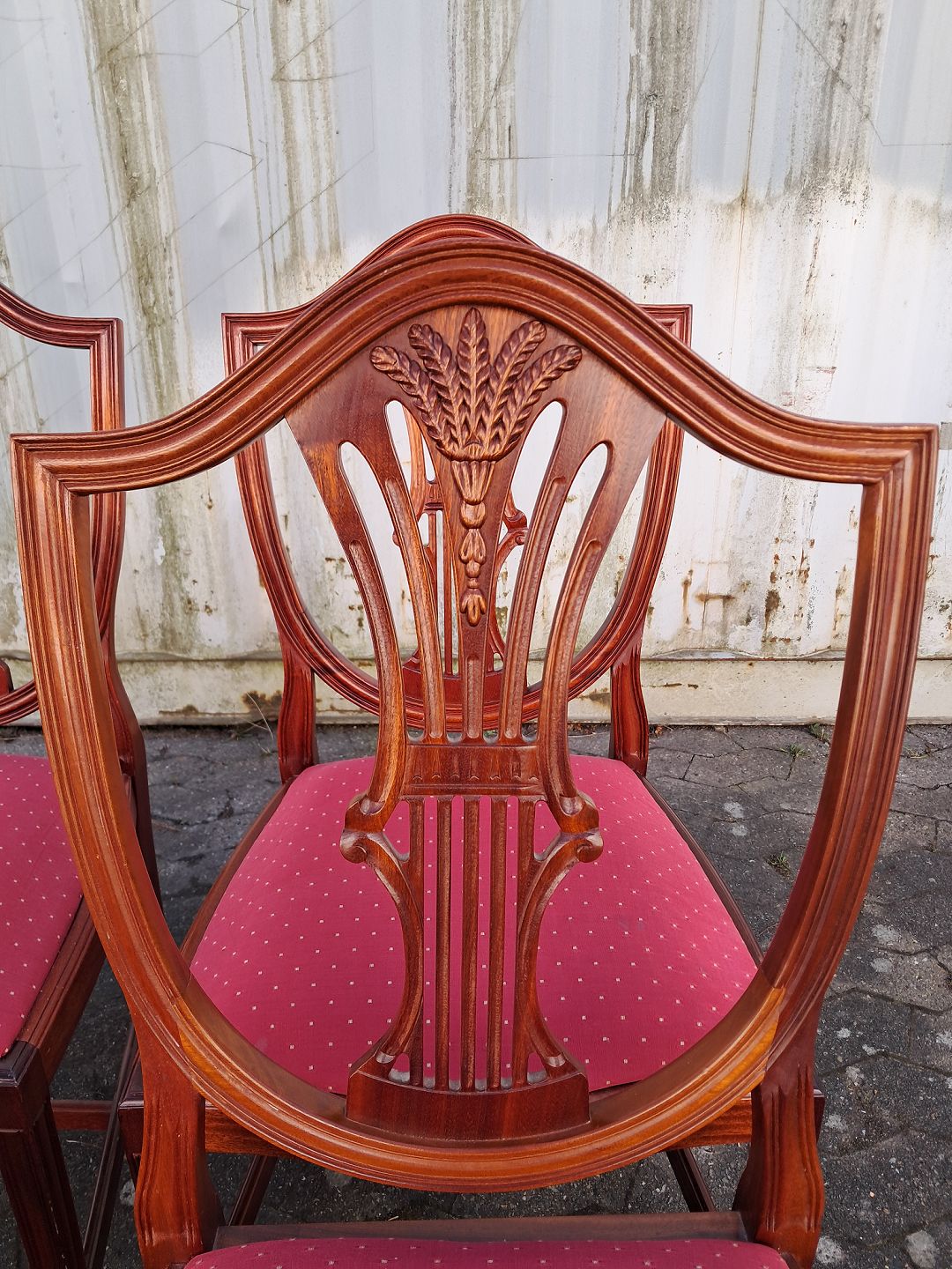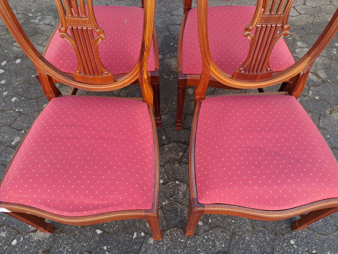 4 Stole i masstivt mahogni og bøgetræ, fra 1990erne.De har brugsspor.