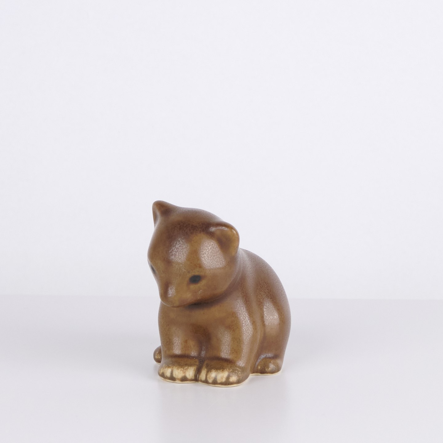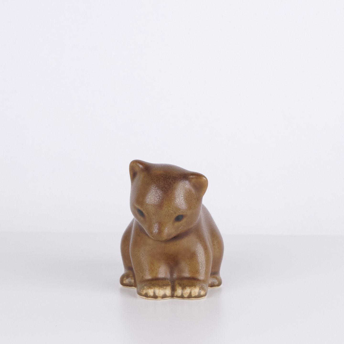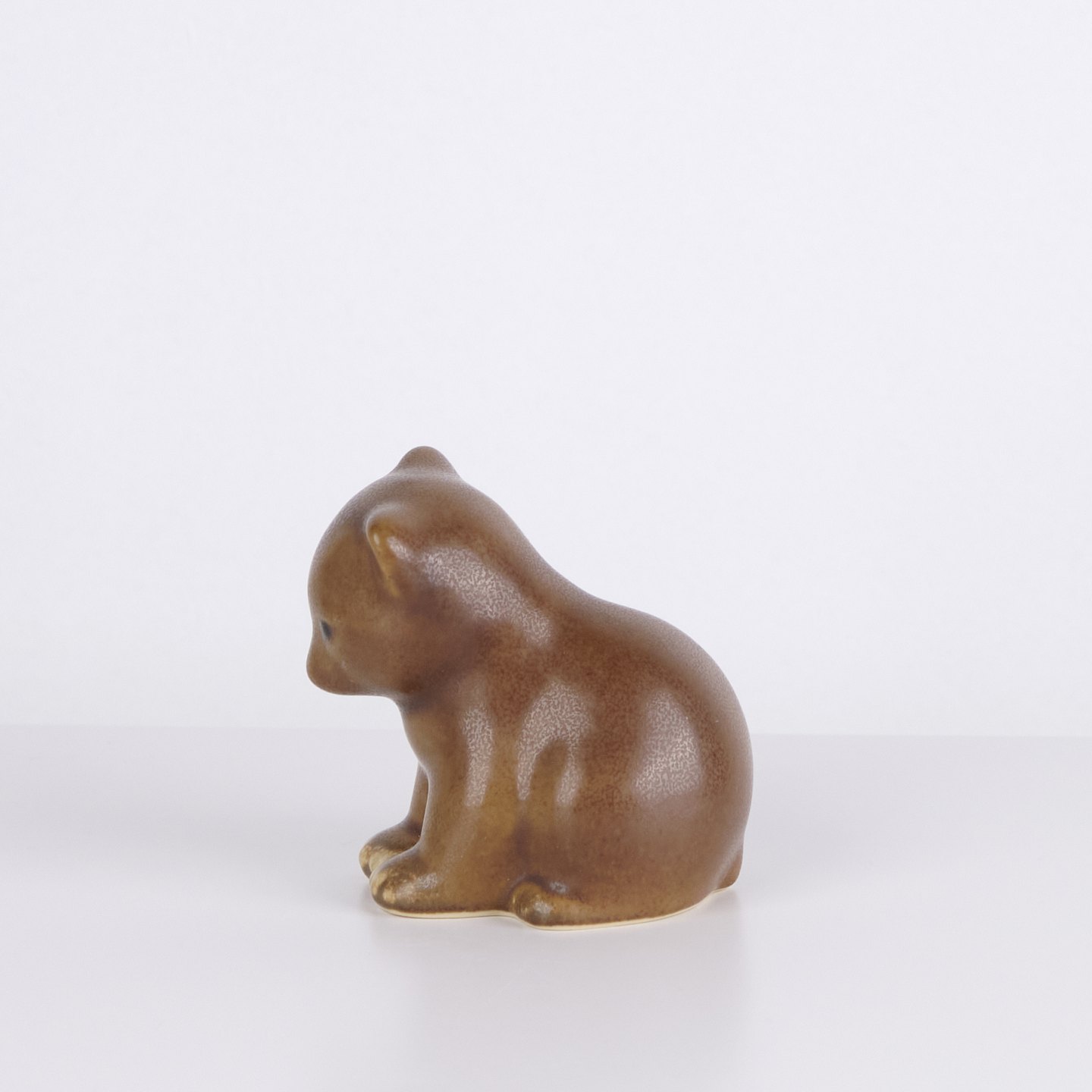 Cat figure by Knud Basse made in glazed ceramic. The figure has soft organic shapes and a calm stylized expression, characteristic of Knud Basse’s popular animal figures. Danish art pottery and sought-after collector’s item from the mid-century period.— Origin: Denmark