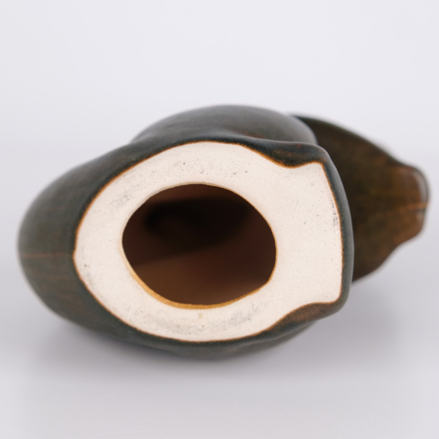 Knud Basse Squirrel Figure in Dark Ceramic with Nut, Danish Design, 1960s