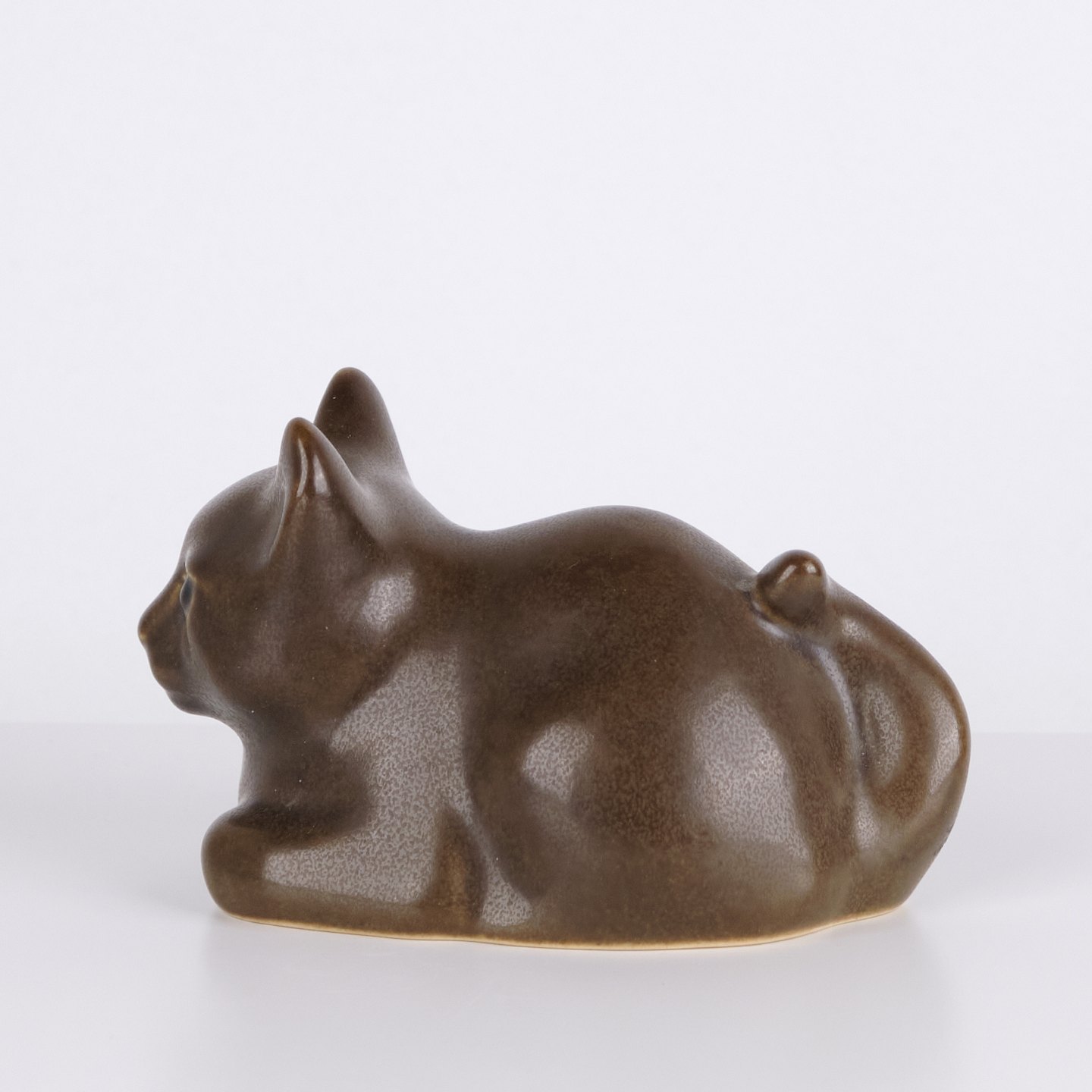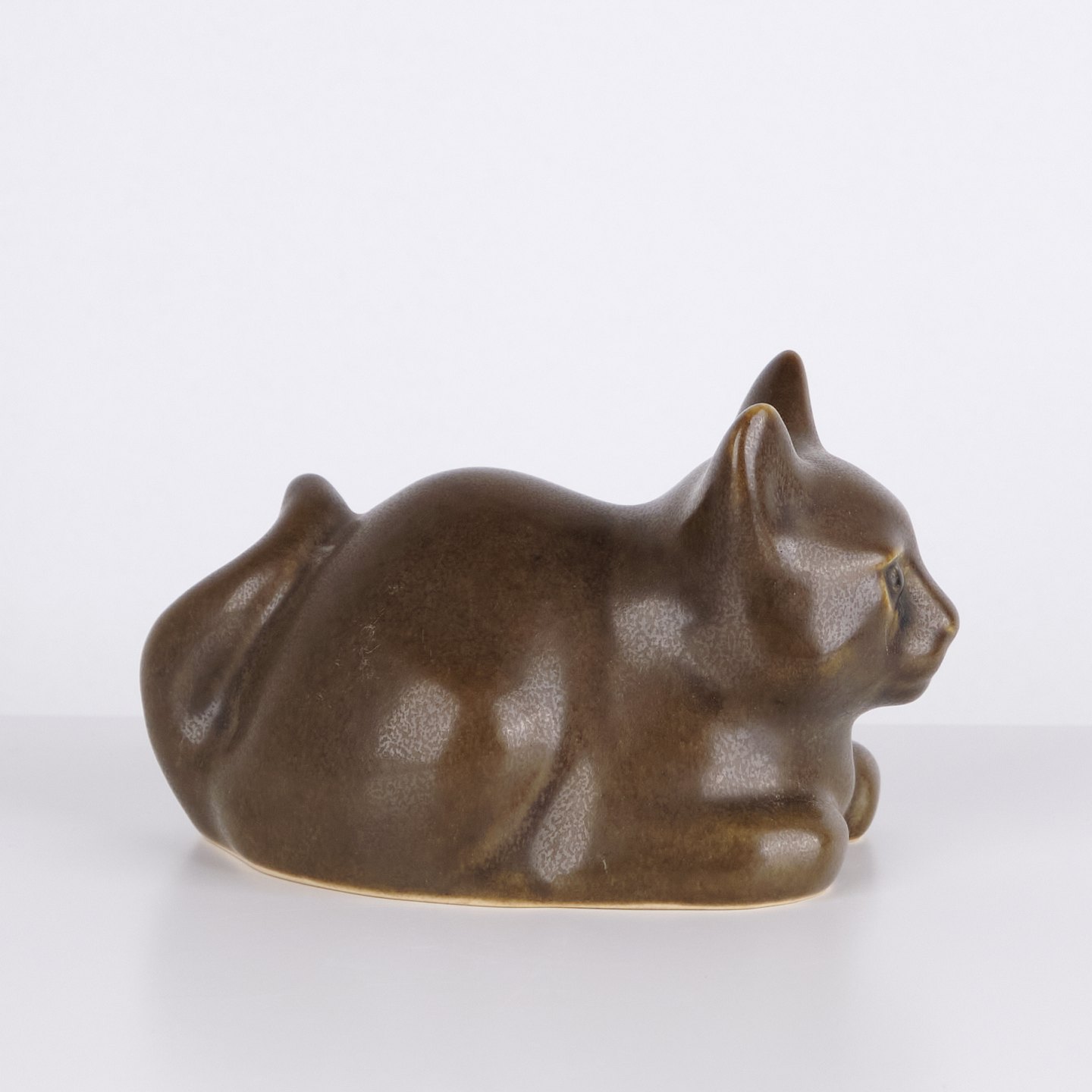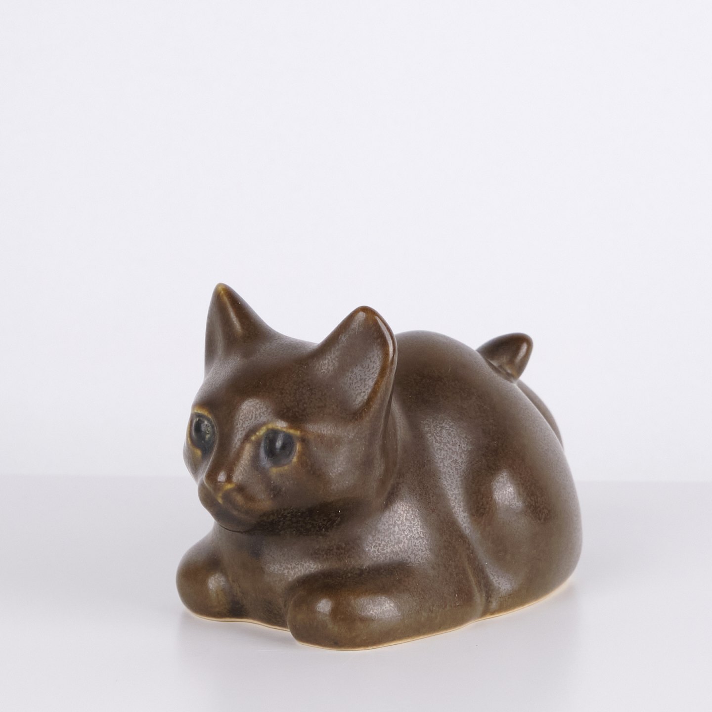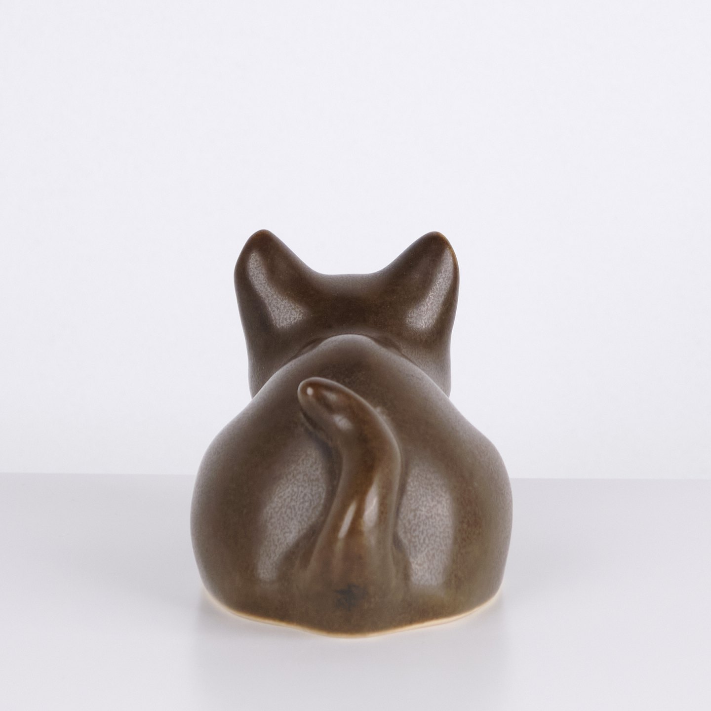 Cat figure by Knud Basse made as a vase in brown glazed ceramic.— Origin: Denmark