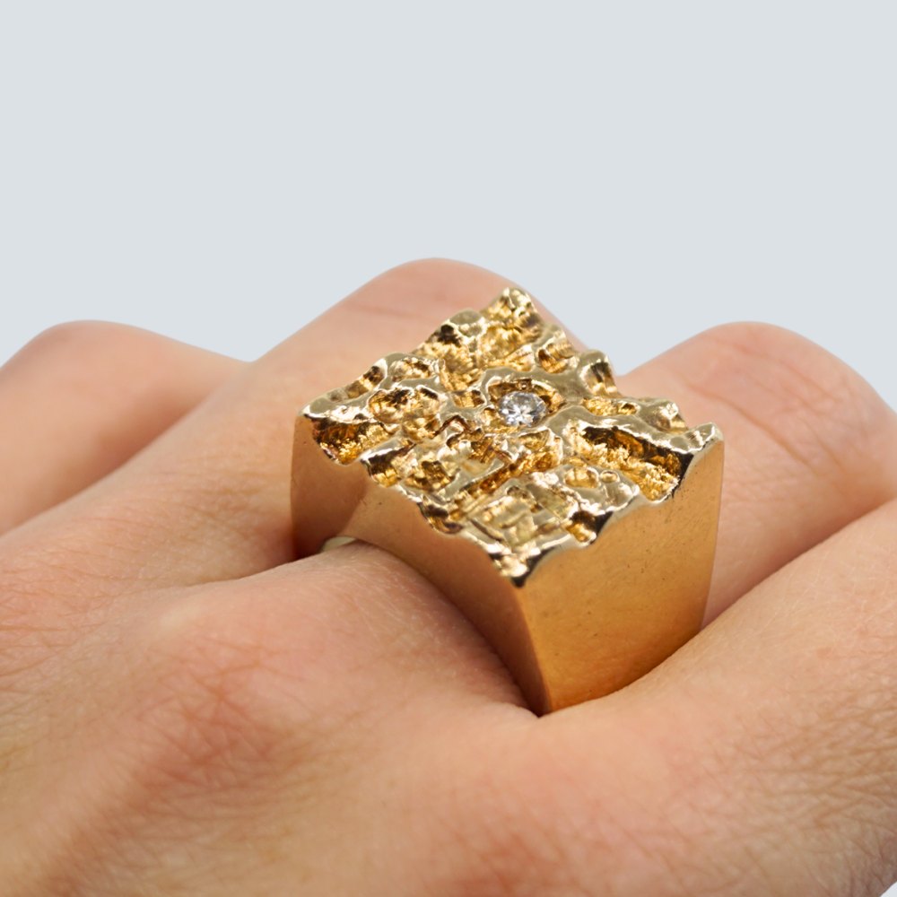 Ejvind Sørensen; Large signet ring in 14k gold with diamond, approx. 0.10 ct. Strong quality. Weight: 50 grams.Ring size 61-62.