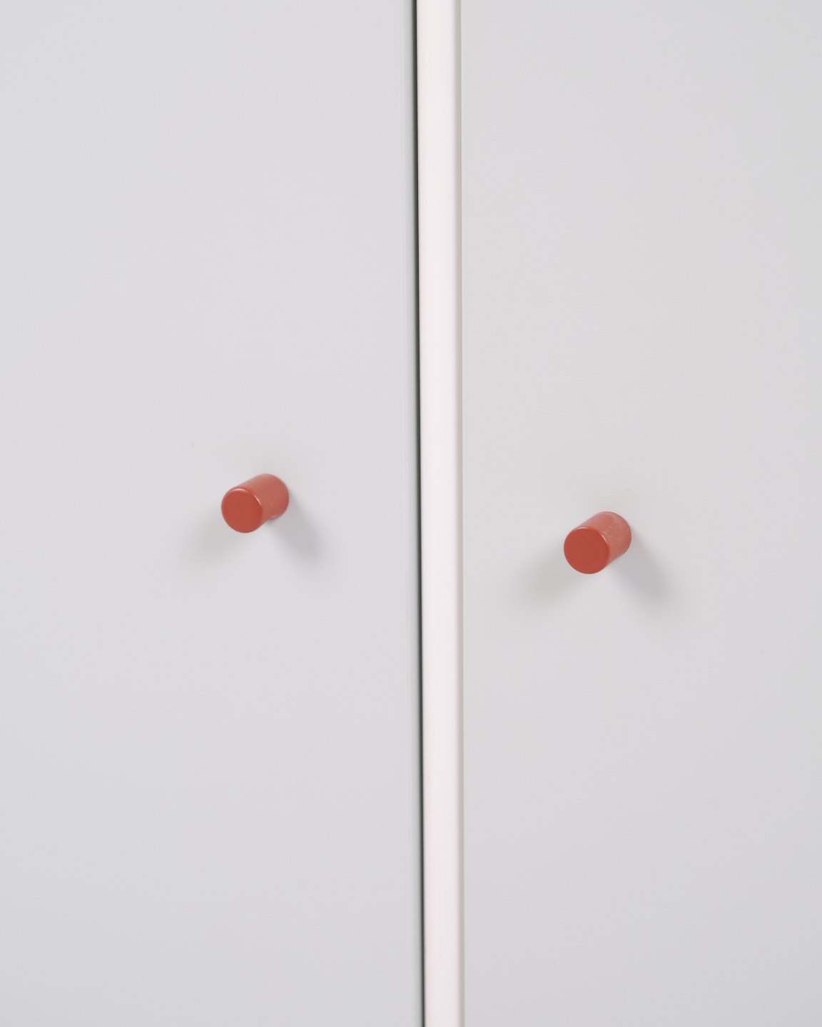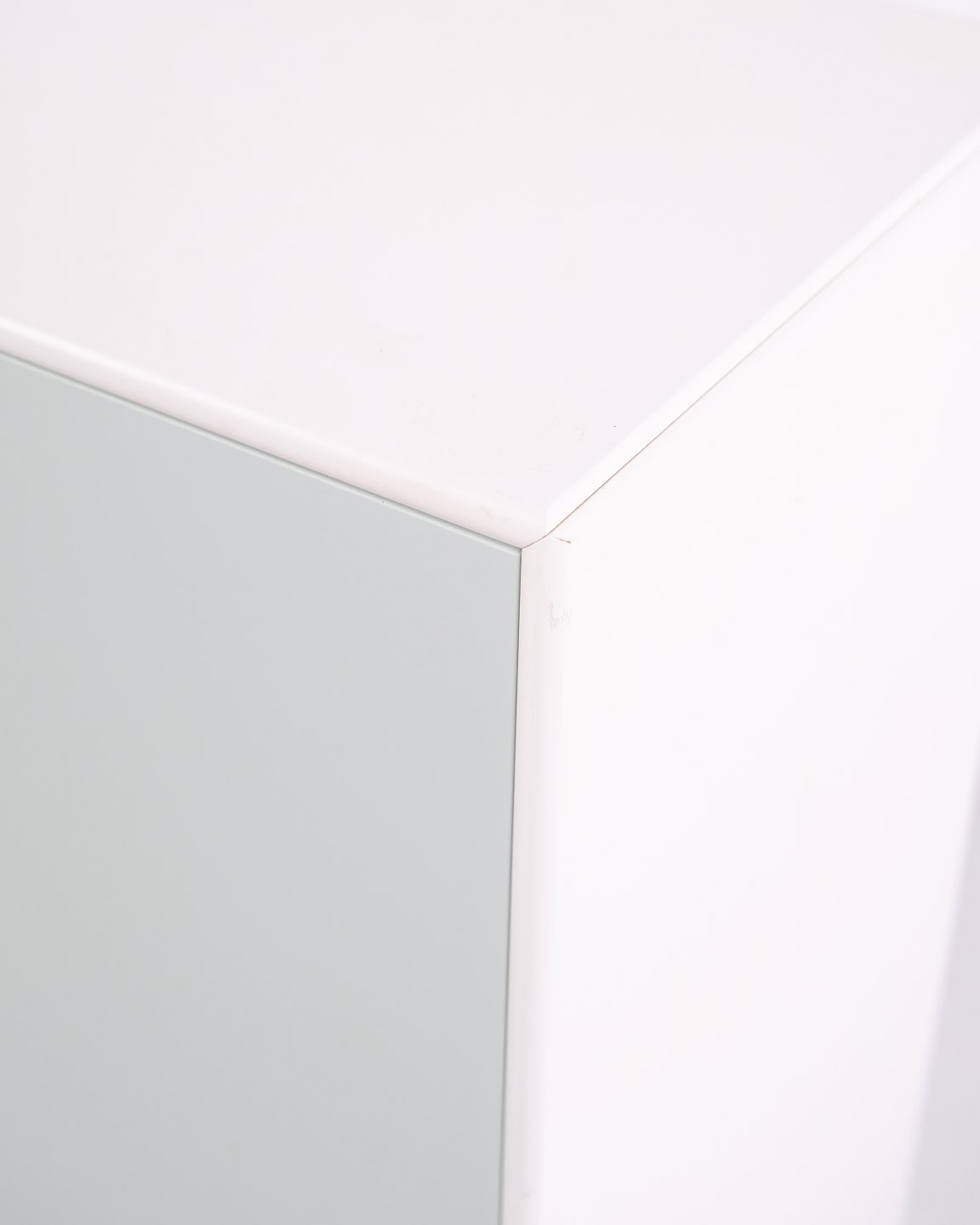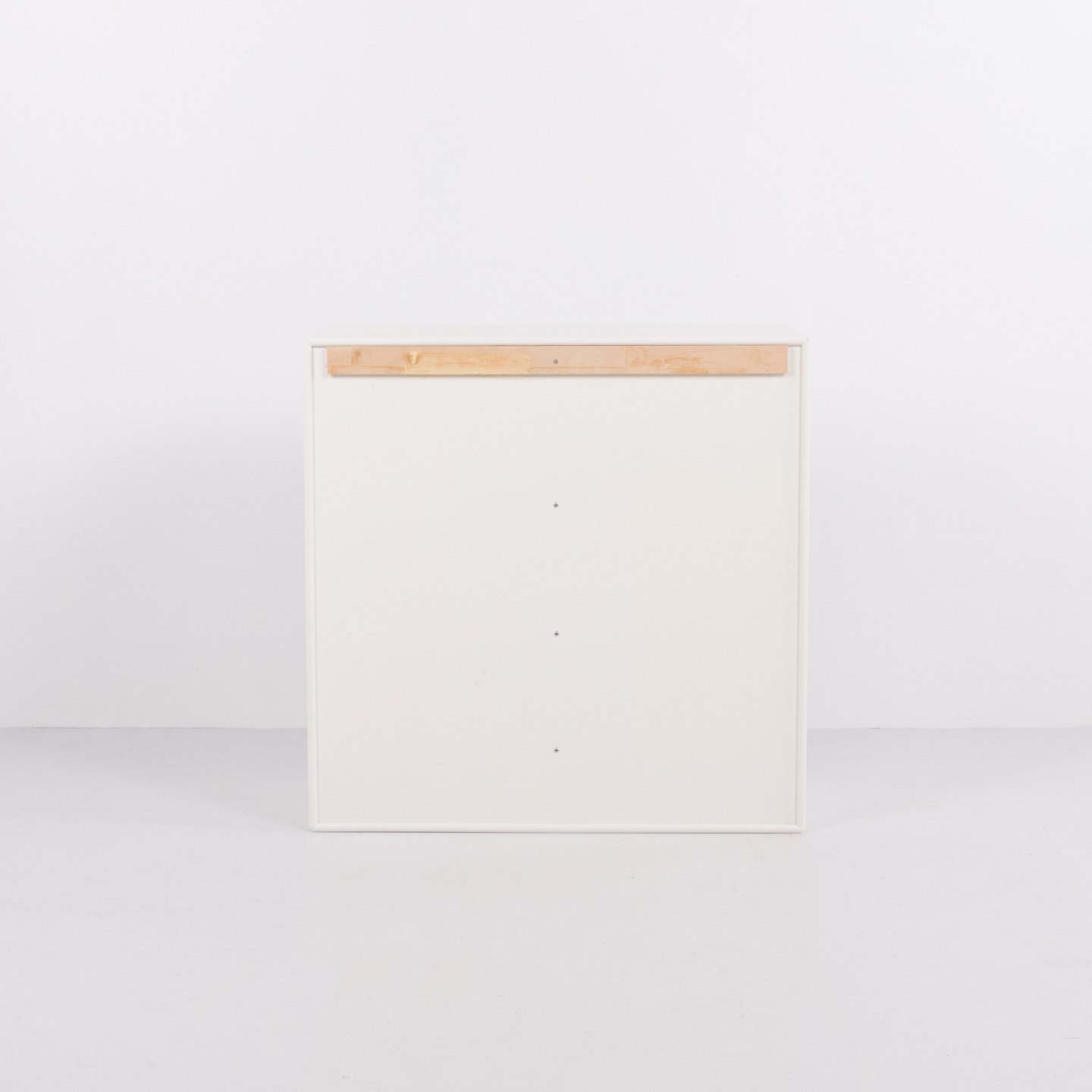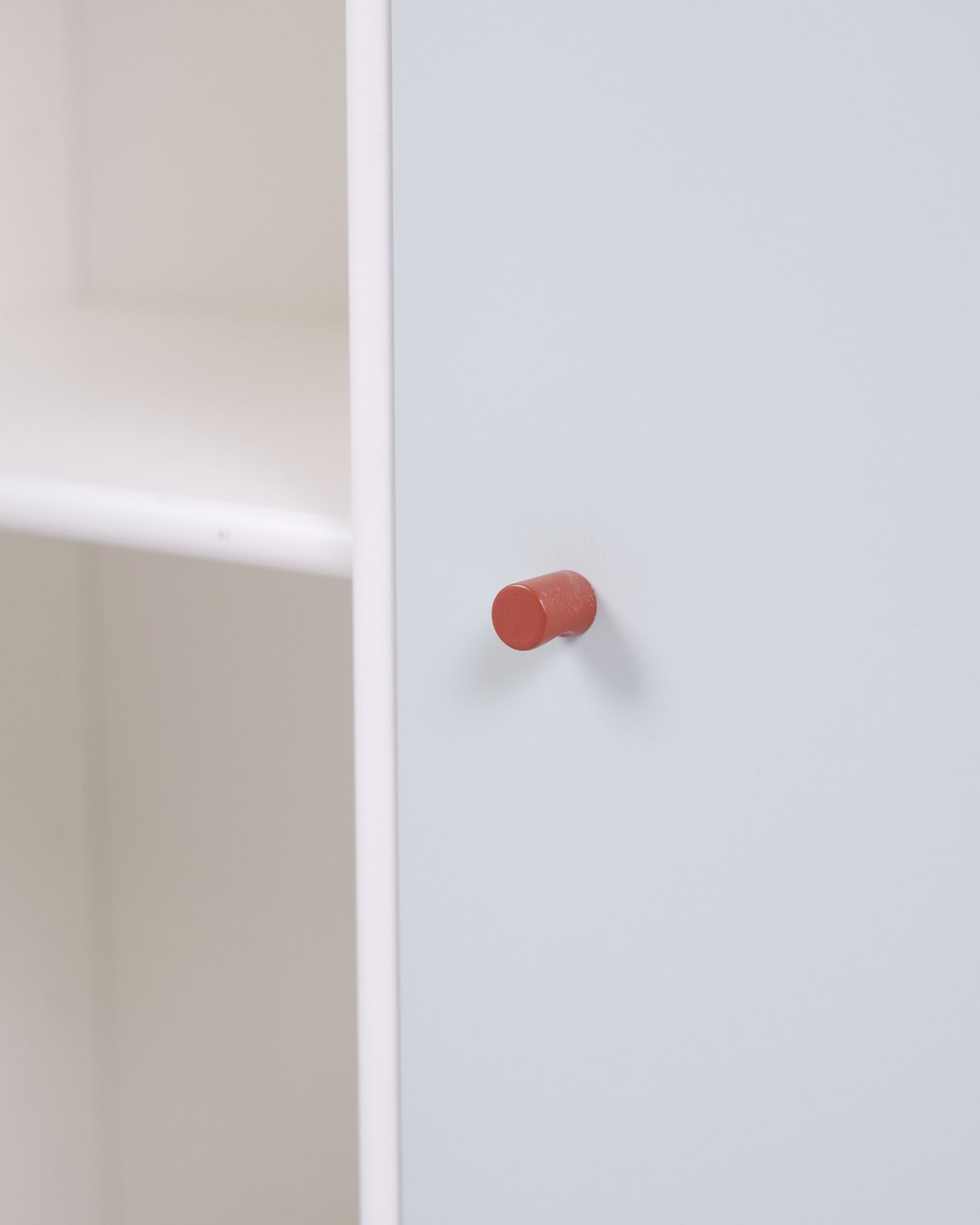 Montana cabinet module from the Montana System designed by Peter J. Lassen for Montana. Made of lacquered MDF with white корпус, two mint green doors and brown handles. Suitable as a wall cabinet, hallway unit or storage module. 2 pieces in stock.— Origin: Denmark