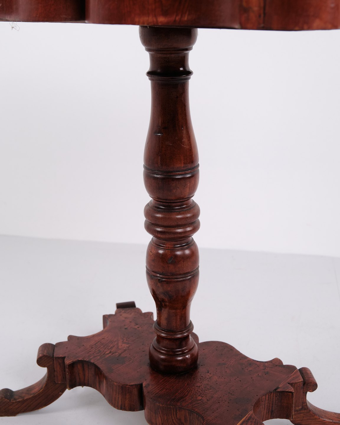 — Base: Turned pedestal with four legs