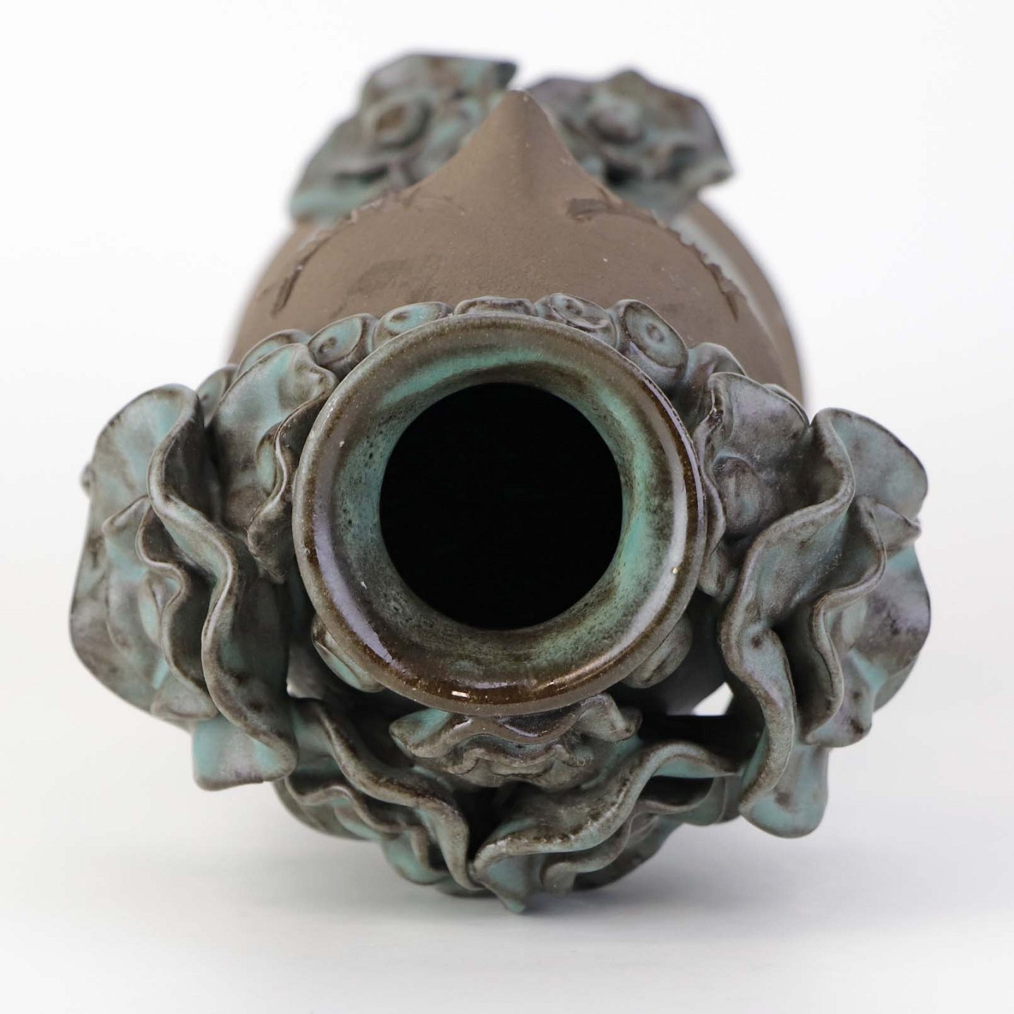 Vase i delvist glaseret keramik med motiv af Thurøpige med grønlig glasur.Producent Flemming Ross
