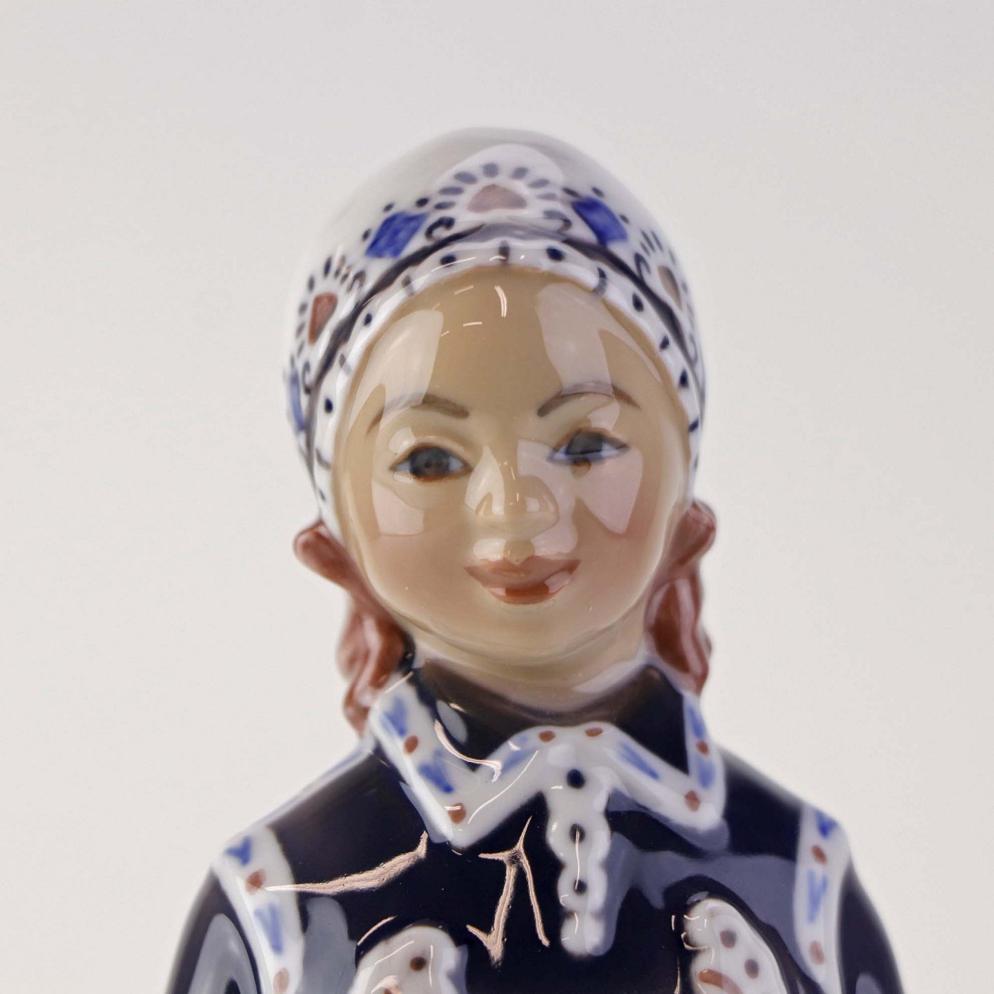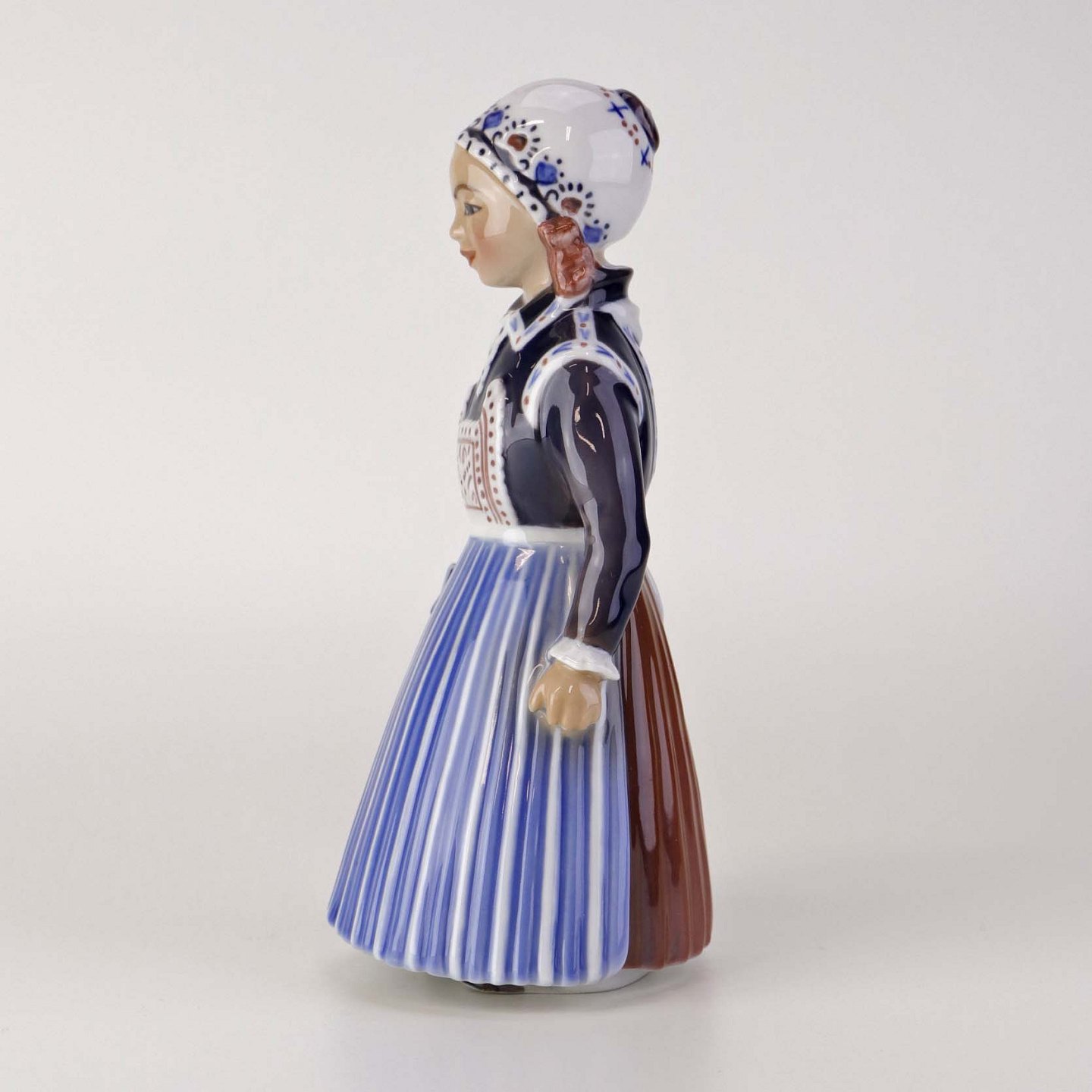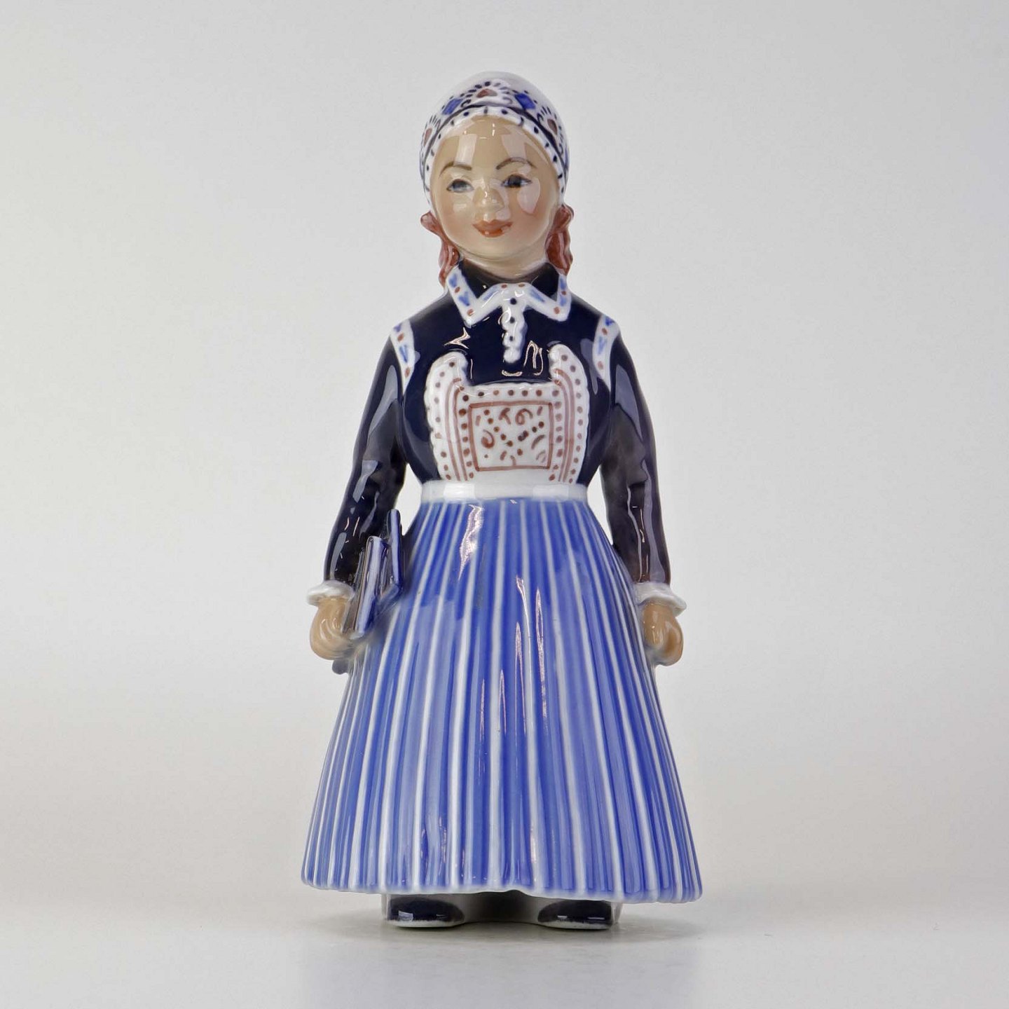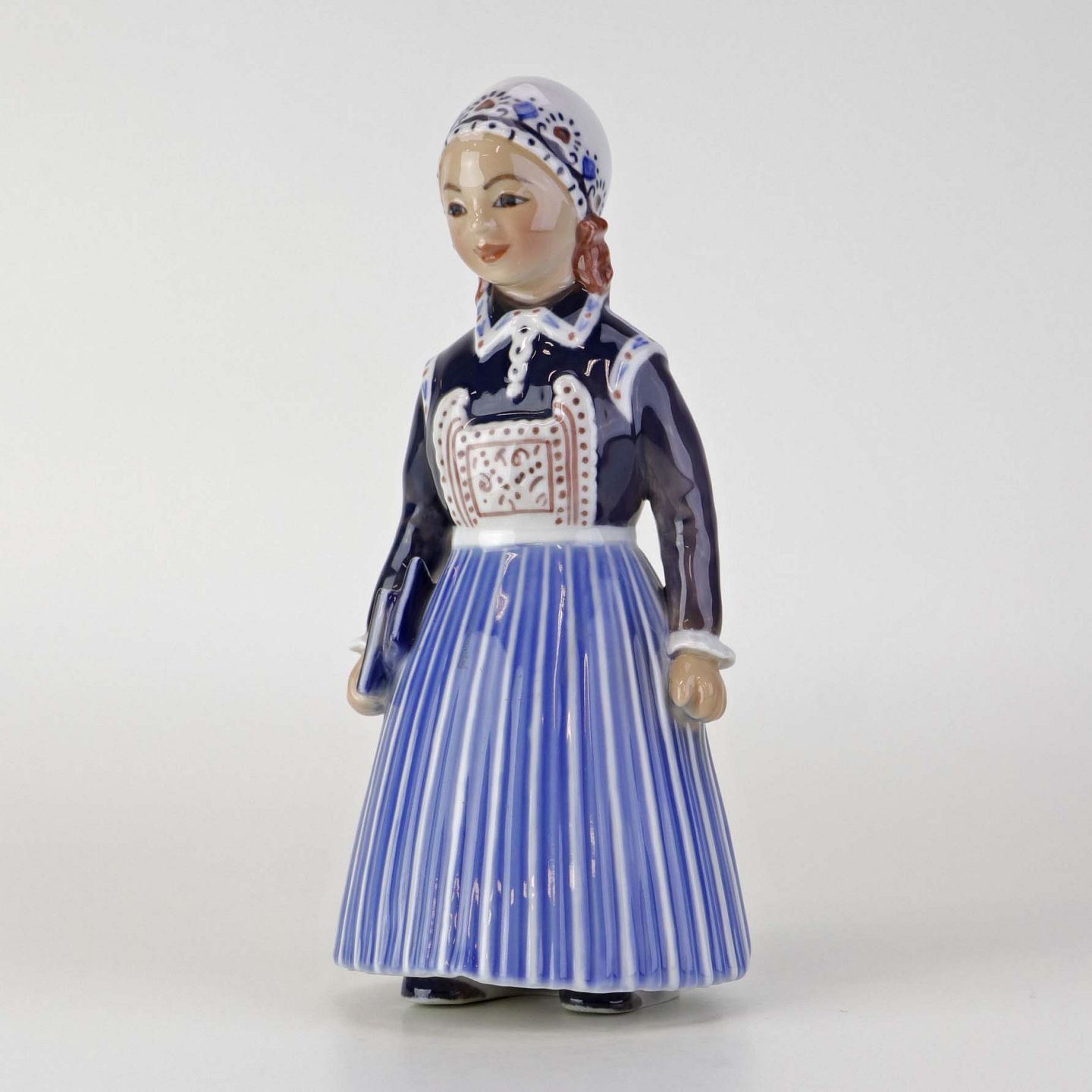 Figur i porcelæn med motiv af skolepige fra Skåne. Nr. 1378