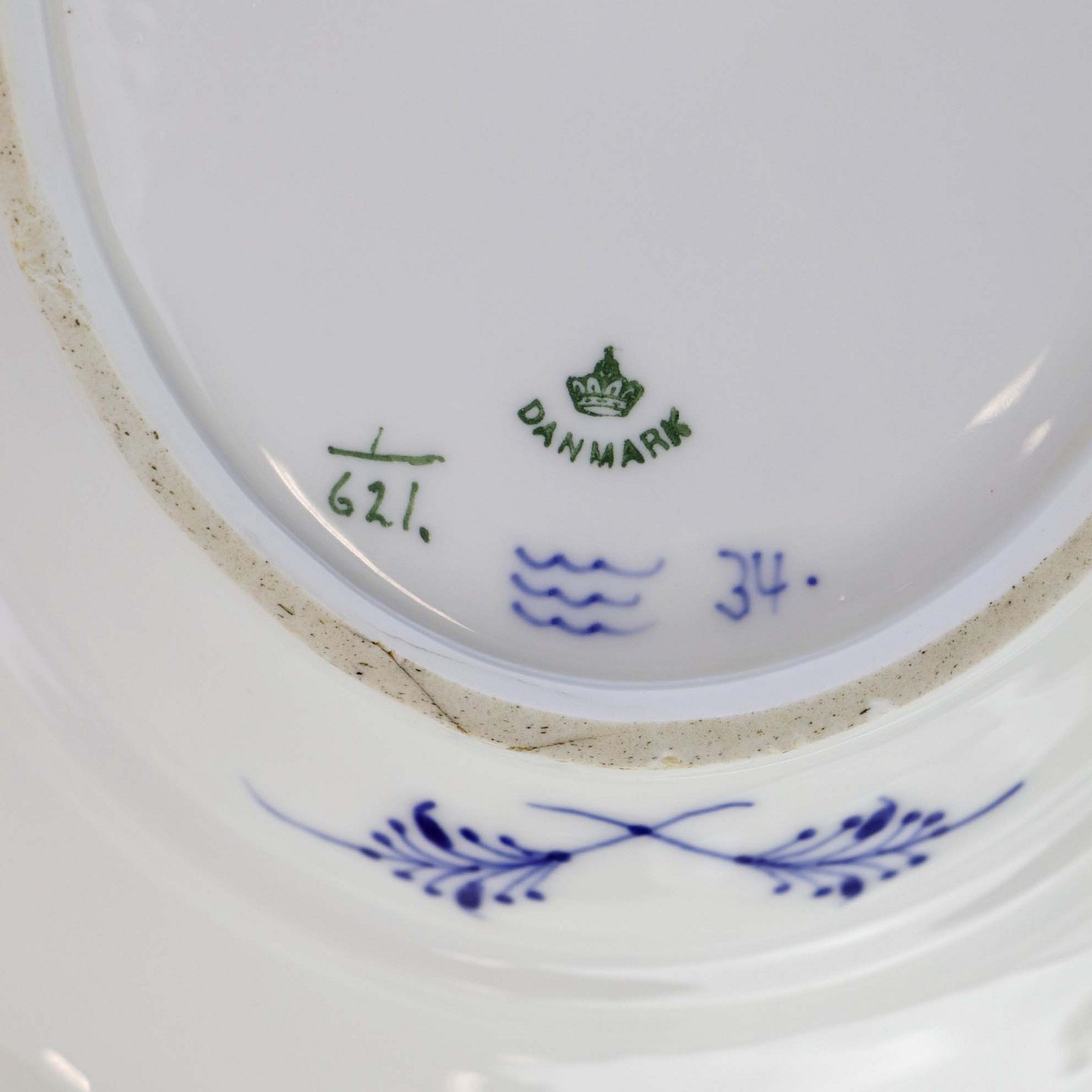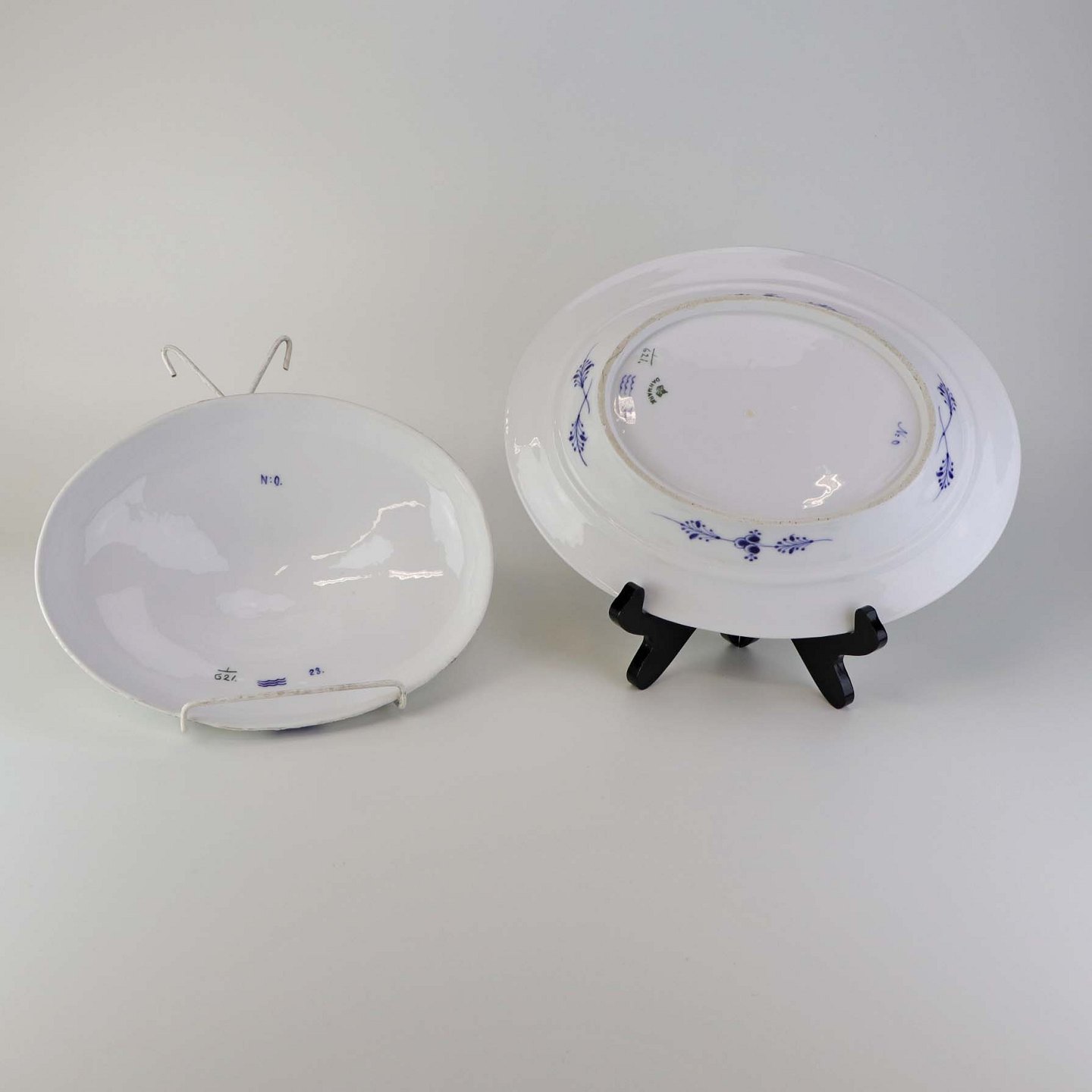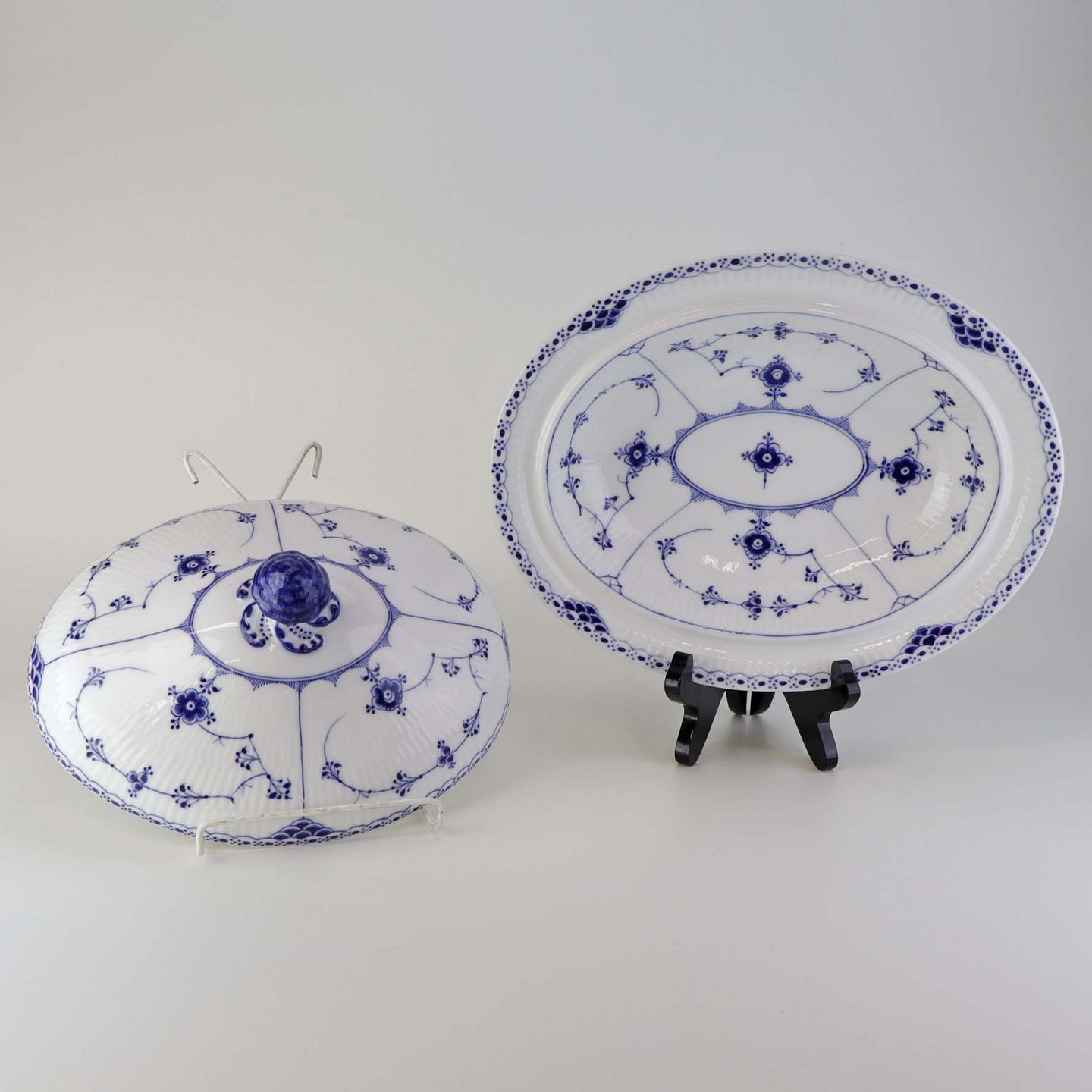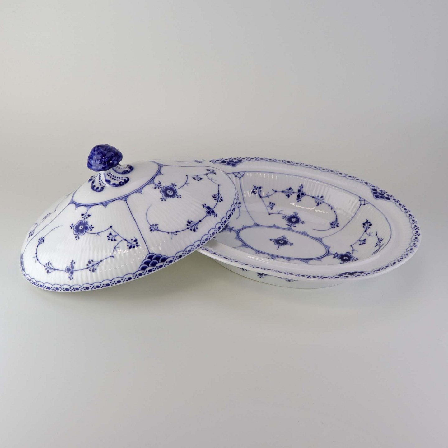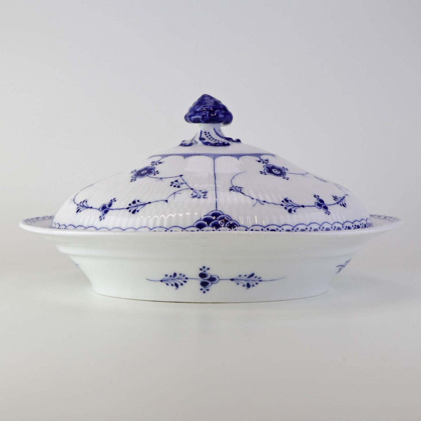 Oval terrin med låg kongeligt porcelæn fra stellet Musselmalet Halvblonde. Nr. 1/621Design Arnold Krog