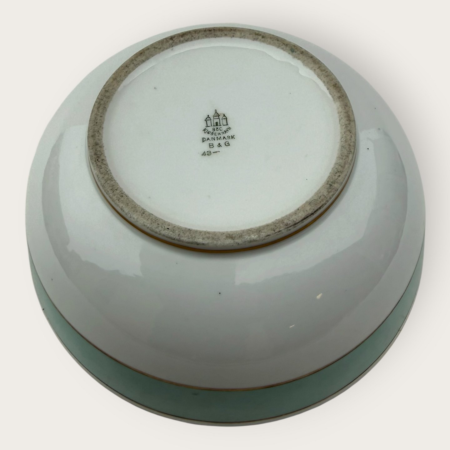 Bing & Grondahl, Form 643 with wide turquoise decoration and gold rim, Serving bowl, #43, 8cm high, width 21cm, 2nd grade, *Good condition*Stock: 1