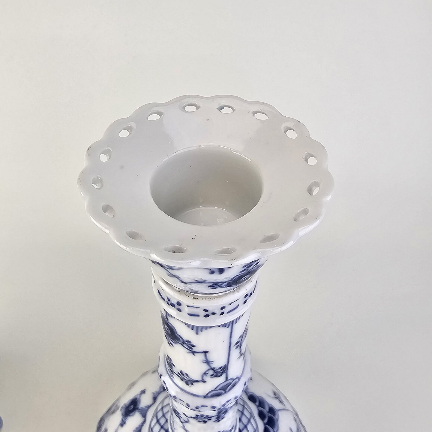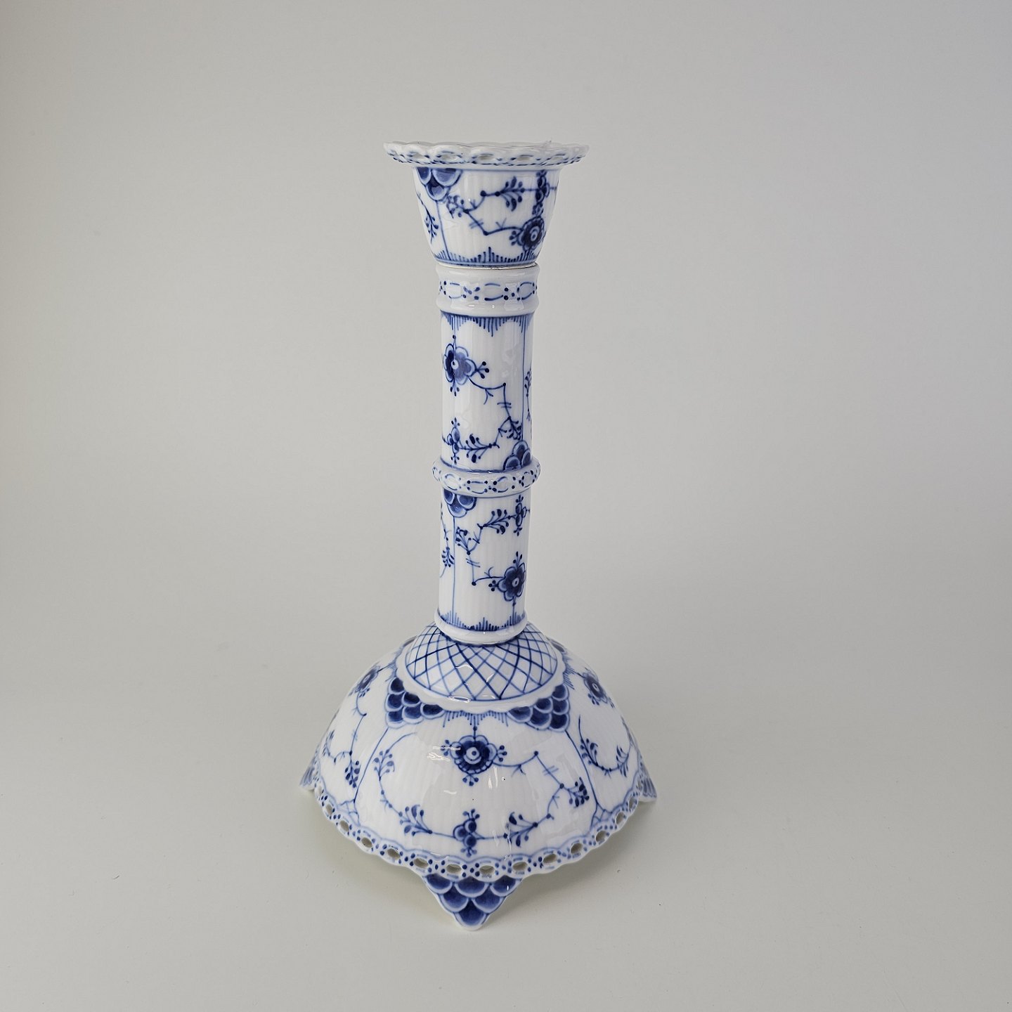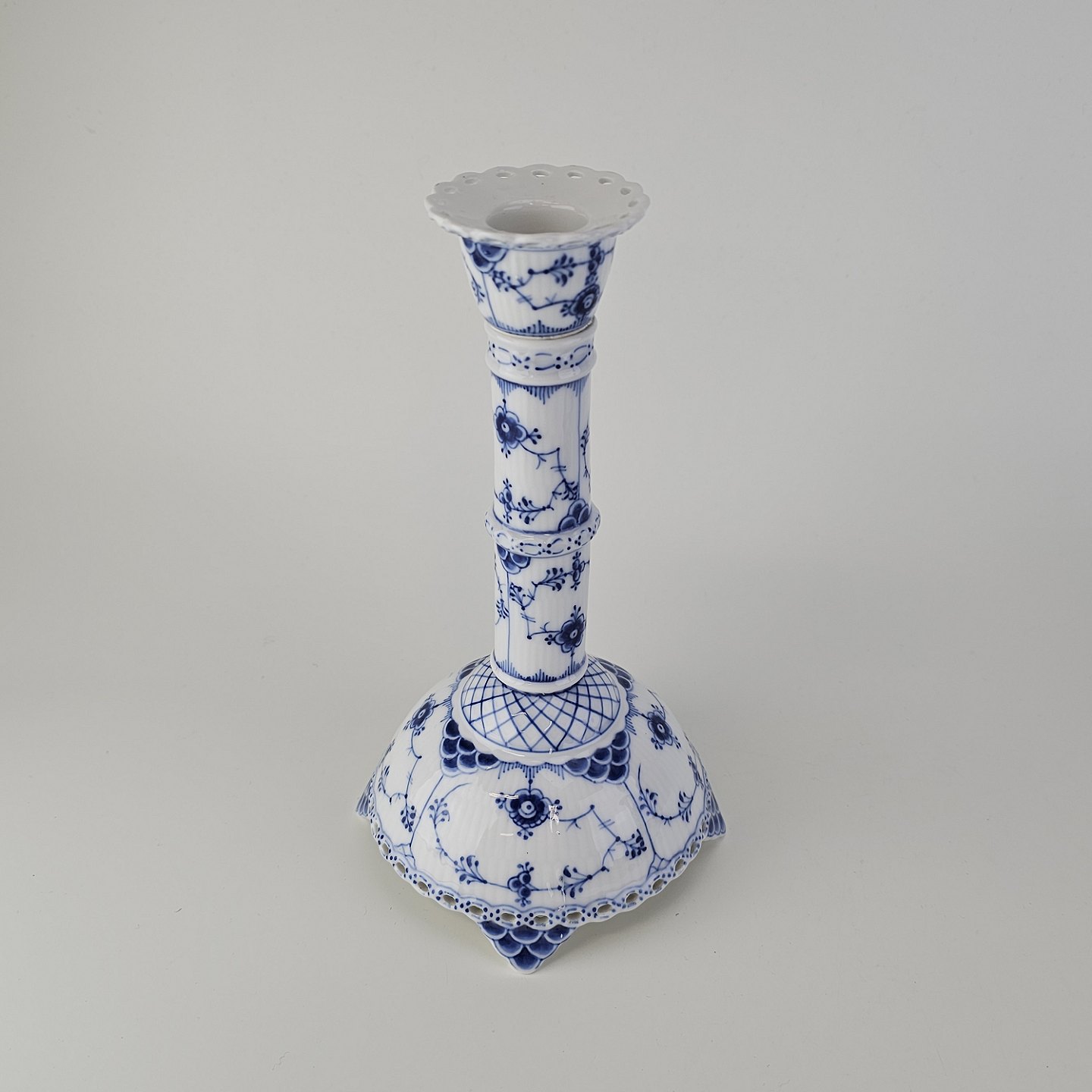 Sæt af to lysestager i kongeligt porcelæn fra stellet Musselmalet Helblonde. Nr. 1/1008Design Arnold Krog