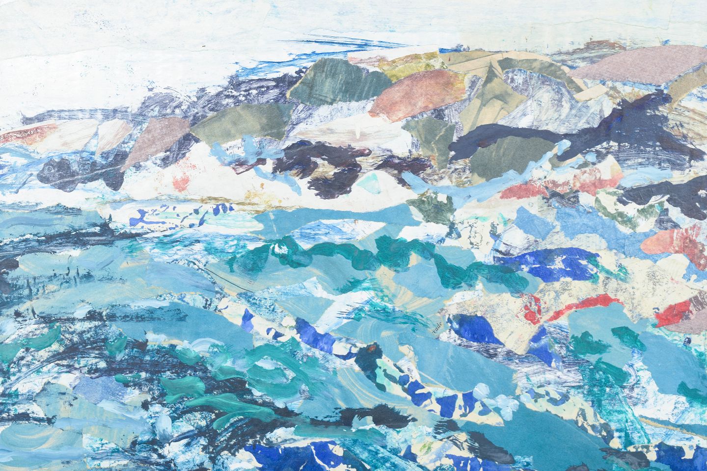 GÖSTA Alm, mixed media on board, listed Swedish visual artist.Expressive coastal motif from the Swedish archipelago with dynamic brushstrokes and layered fields of color in blue, green, and earthy tones. The composition is executed in mixed media on board and appears signed and dated 1969.