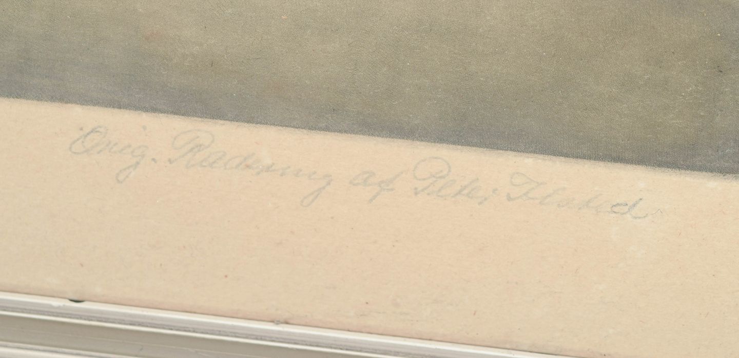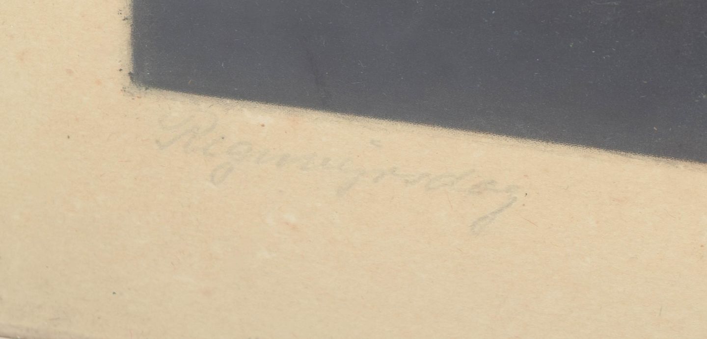 Peter Ilsted, color mezzotint, “Rainy Day”, listed Danish artist.Quiet interior scene depicting figures gathered around a table in subdued light, executed as a color mezzotint in Ilsted’s characteristic tonal and atmospheric style. Signed in pencil.