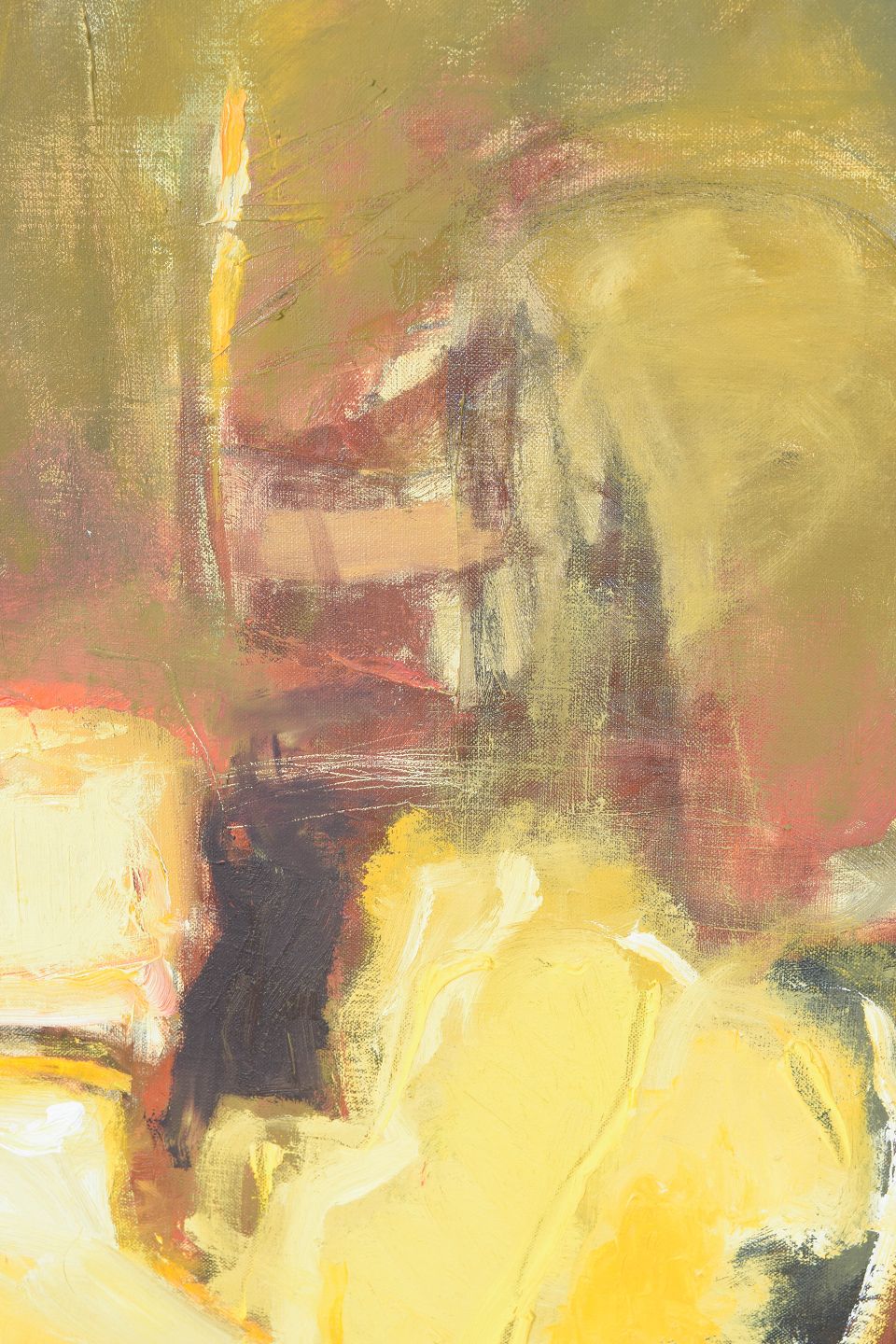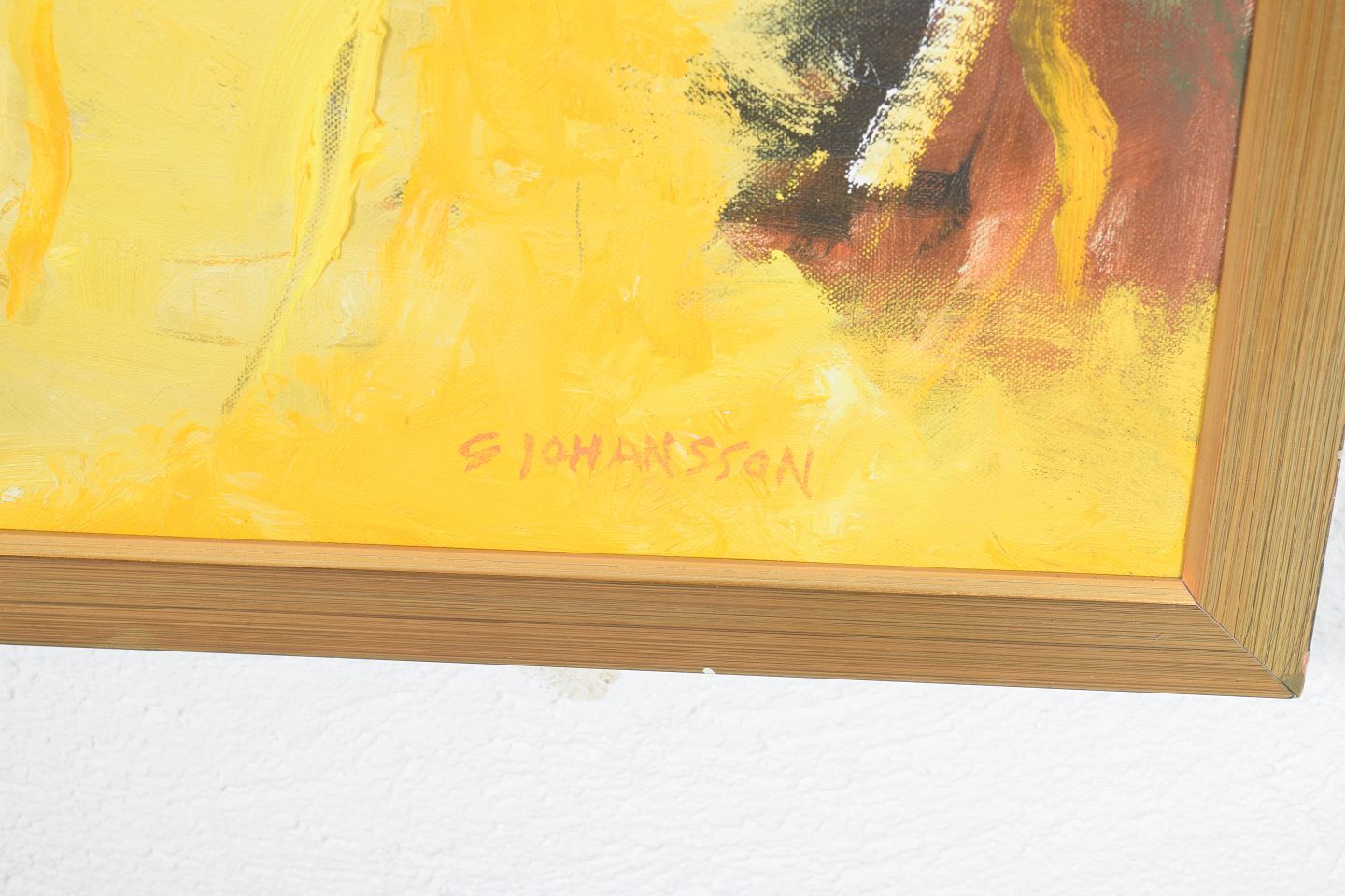 G. Johansson, abstract composition, Swedish artist.Abstract composition executed in oil on canvas with subtle figurative elements and soft, dissolved forms in warm tonalities. Signed.