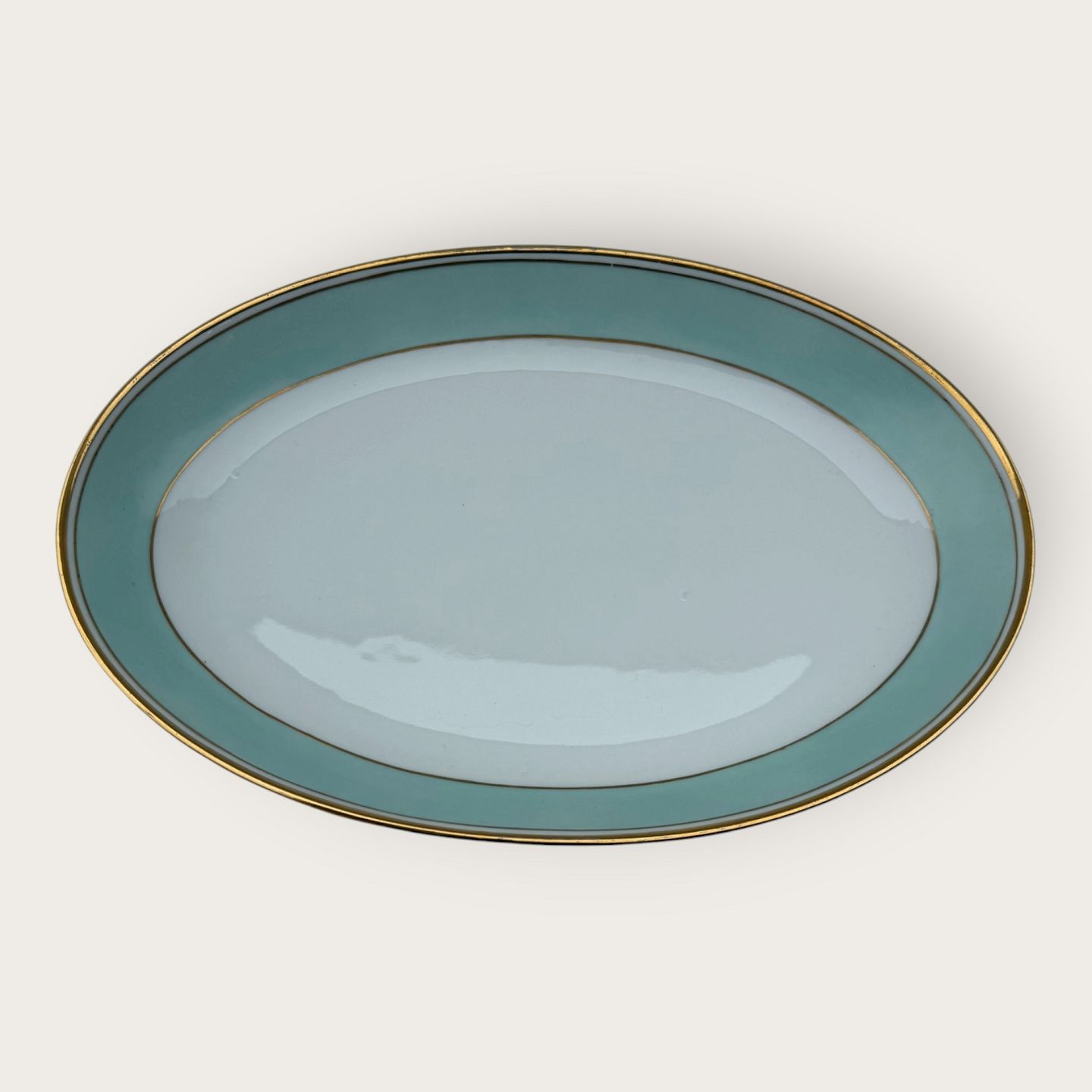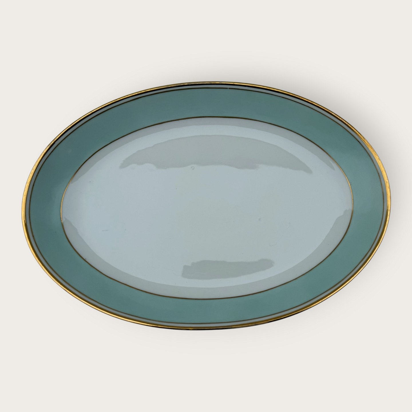 Bing & Grondahl, Form 643 with wide turquoise decoration and gold rim, Serving dish, 33.5x23cm, 2nd grade, *nice condition*Stock: 1