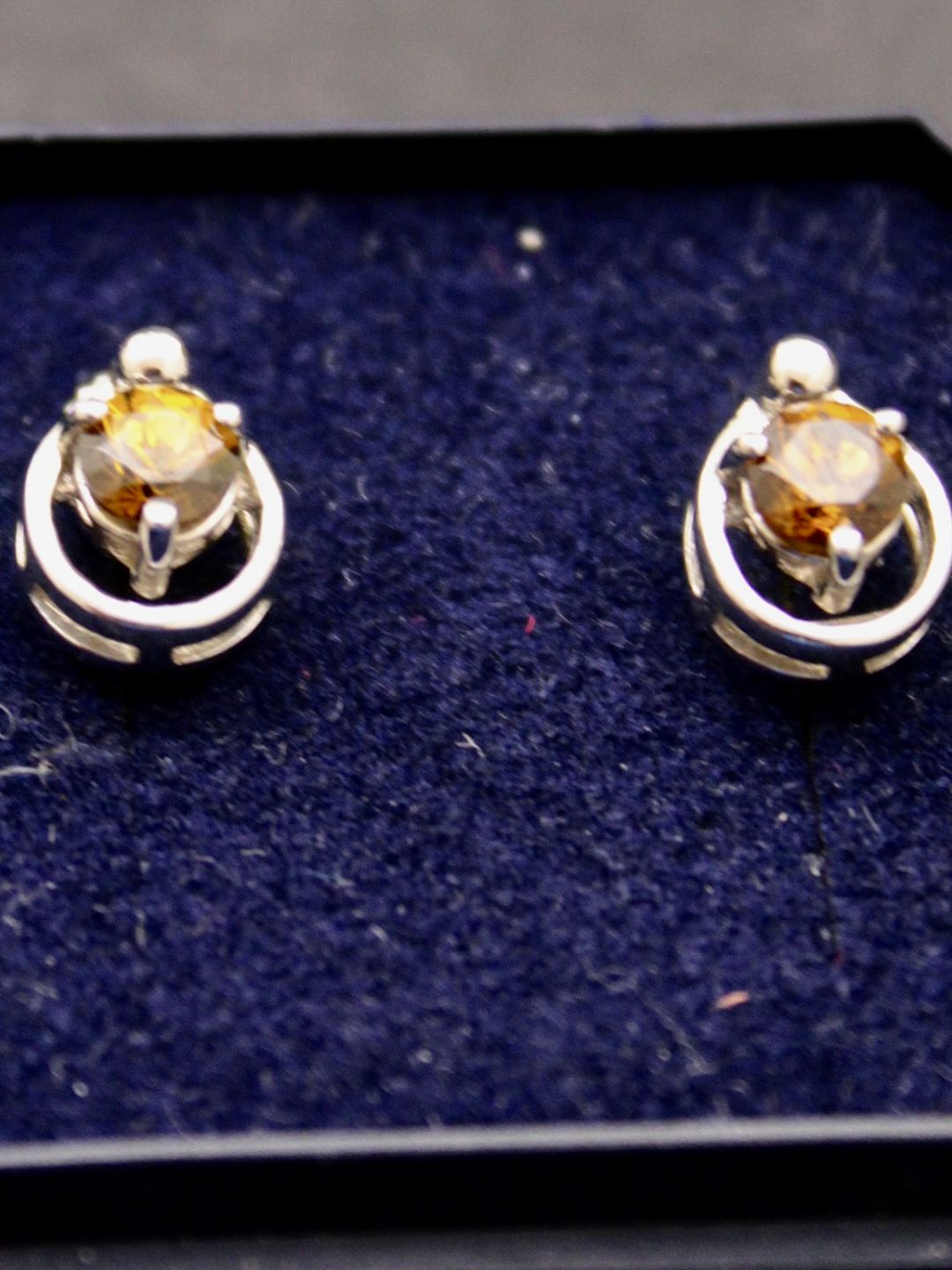 Sterling silver ear stud 1 x 0.8 cm. with yellow topaz item no. 636280 Dealer