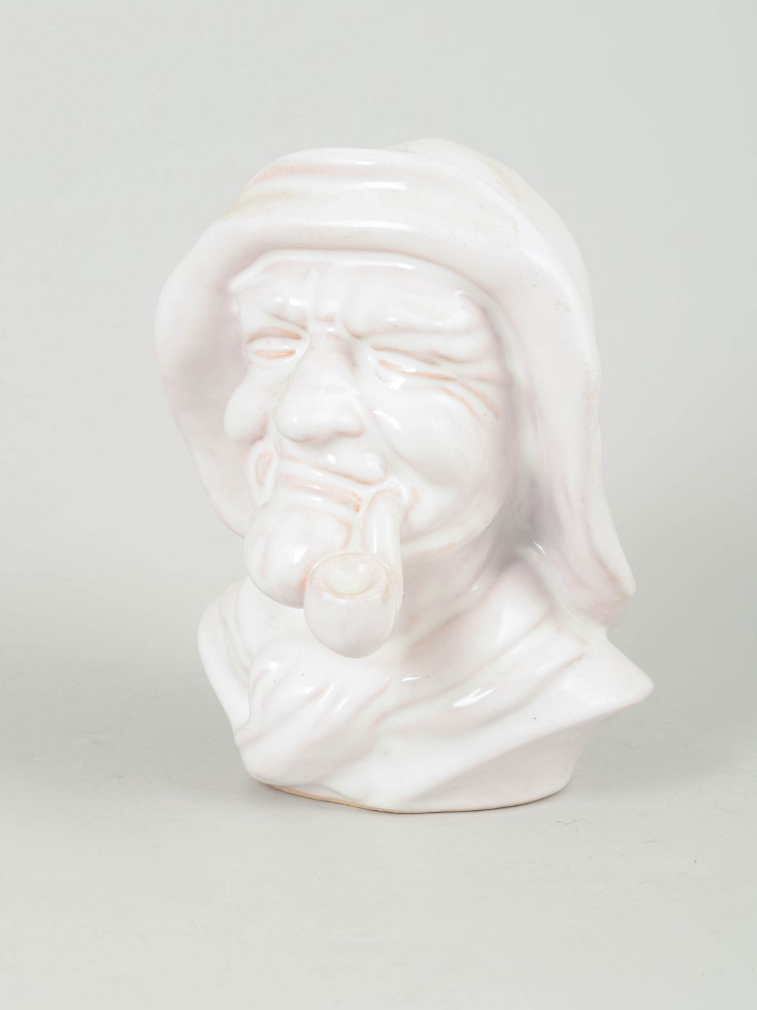 Michael Andersen & Søn, fisherman bust model 3934.Naturalistically modelled ceramic bust depicting an elderly fisherman with a pipe, rendered with fine facial details and a characterful expression in a white glaze.
