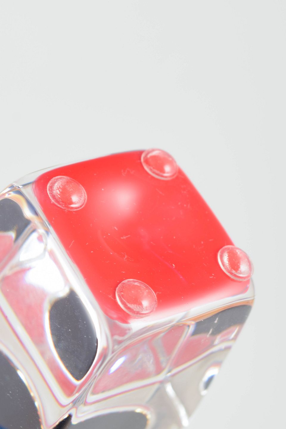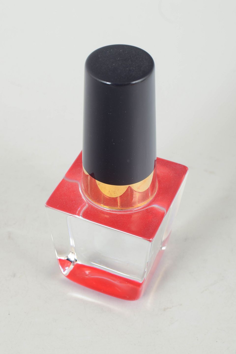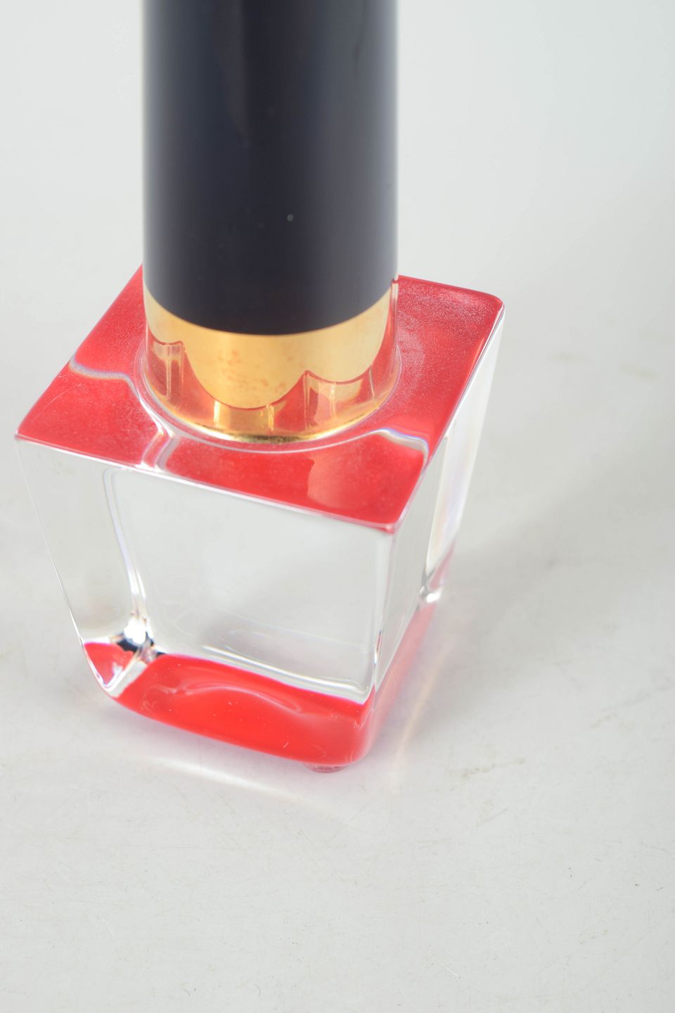 Åsa Jungnelius for Kosta Boda, glass sculpture in the form of nail polish.Geometric glass sculpture in the form of nail polish, executed in clear and coloured glass with a solid square base and a cylindrical top in a dark tone.