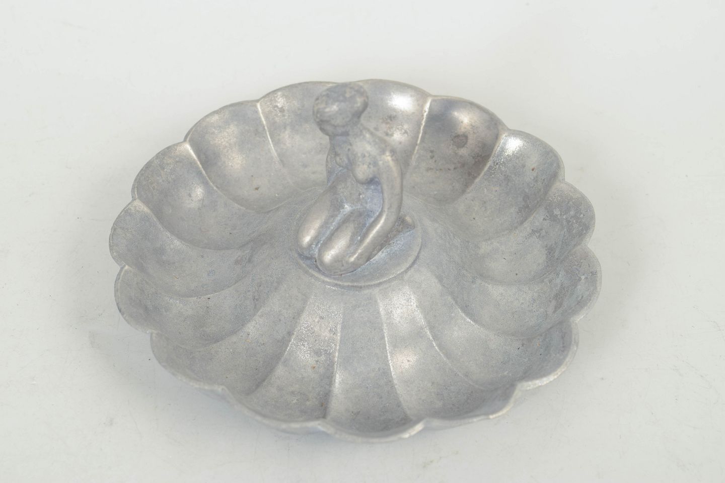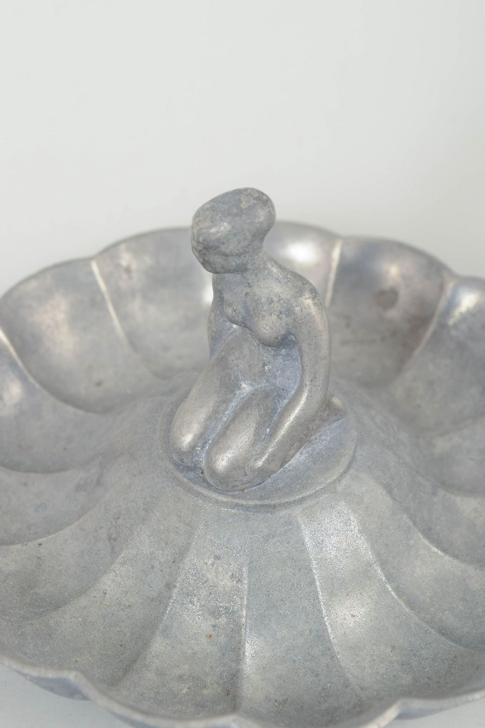 Just Andersen, pewter bowl with figure.Decorative pewter bowl with a central seated female figure, model 185, designed with a fluted rim and a stylised Art Deco expression.