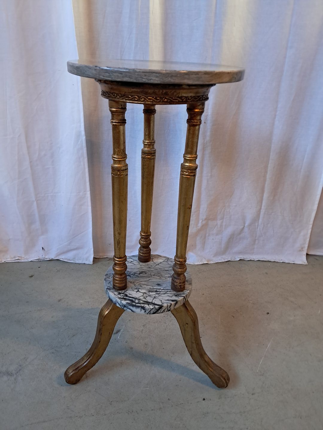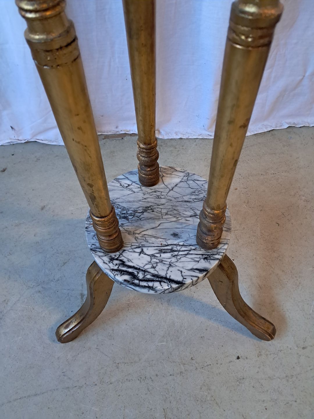Guldmalet piedestal med marmorplader, fra 1950erne.Den har brugsspor.
