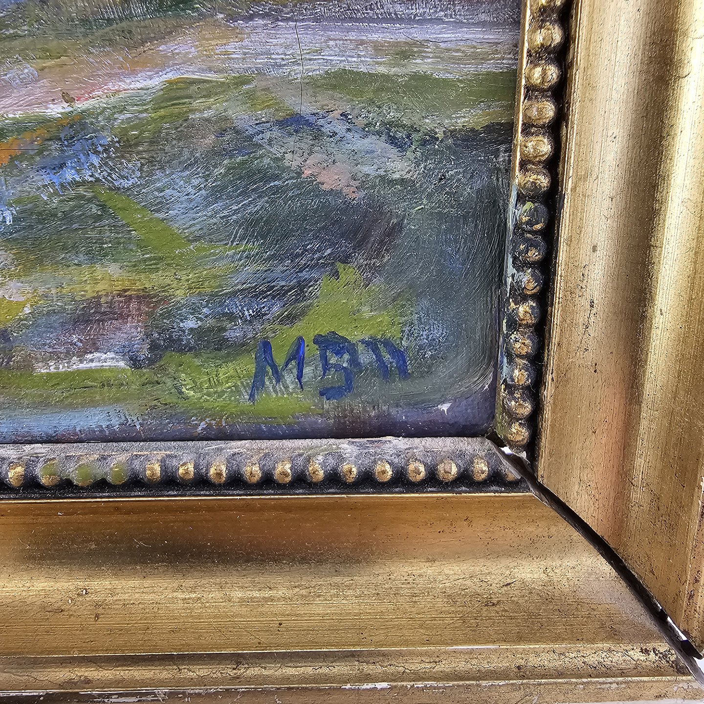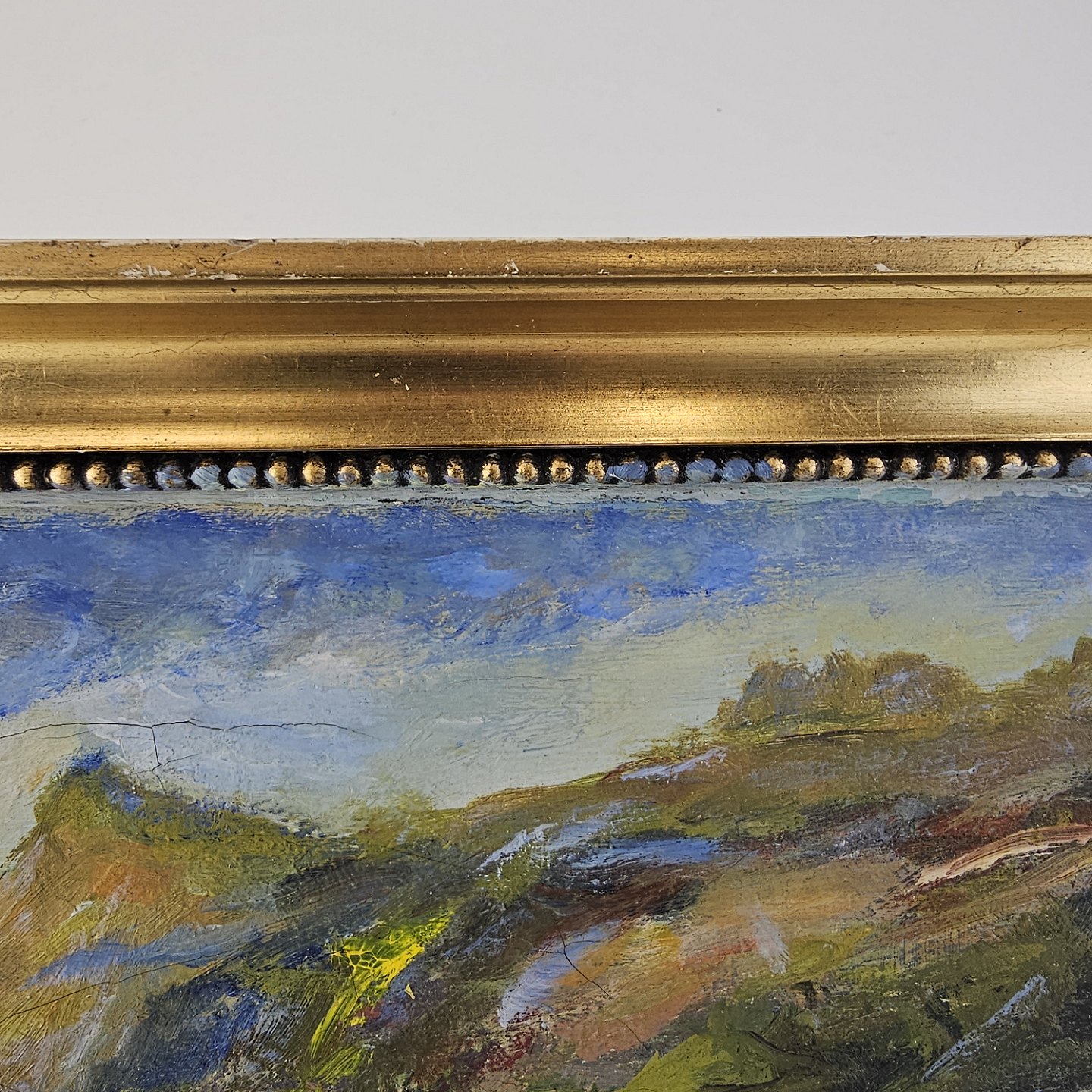 Oliemaleri på lærred med naturmotiv monteret i guldmalet trærammeKunstner ukendt, signeret