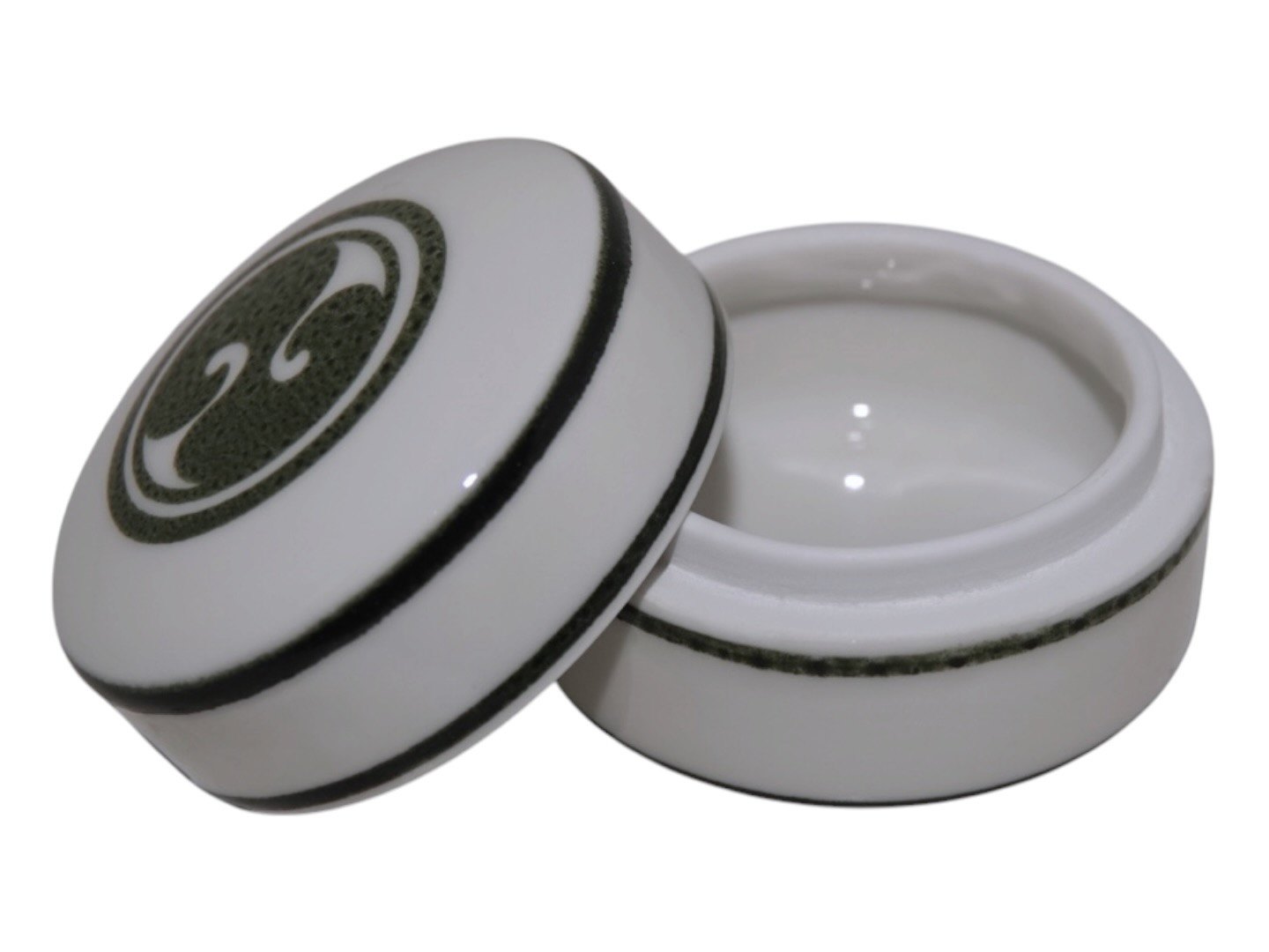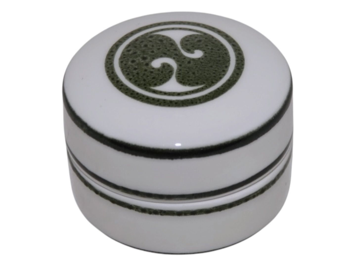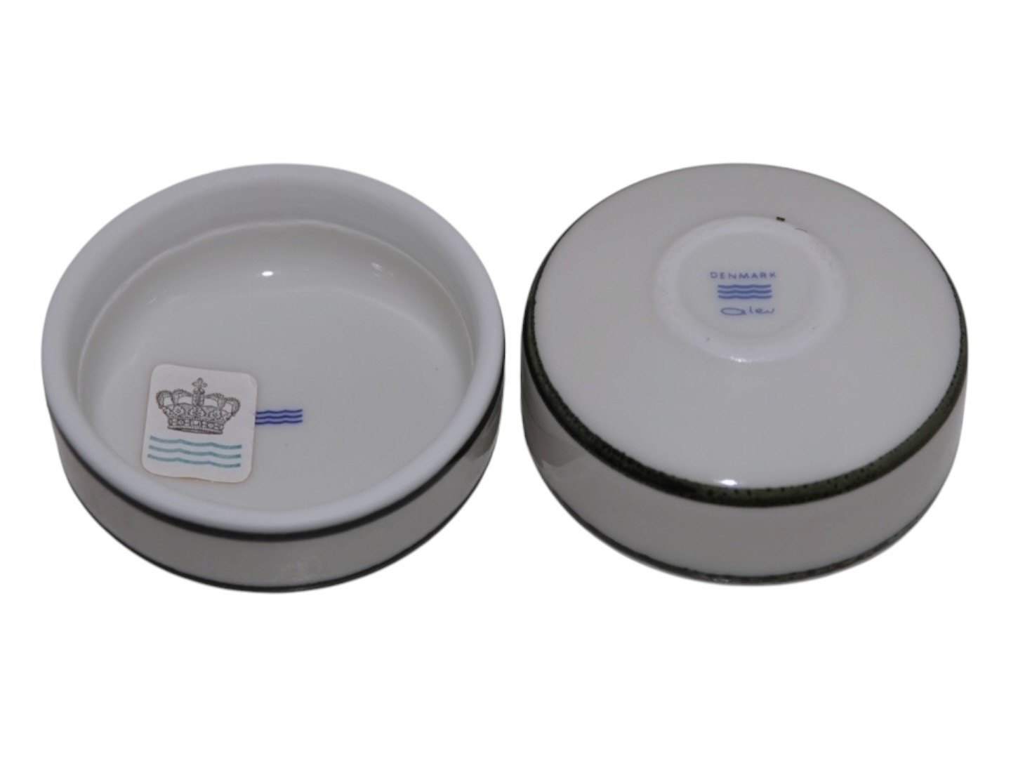 Royal Copenhagen art porcelain, small lidded box with green decoration designed by artist Alev Siesbye.Factory first.