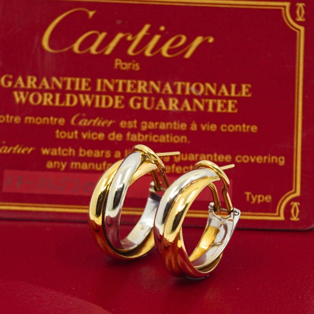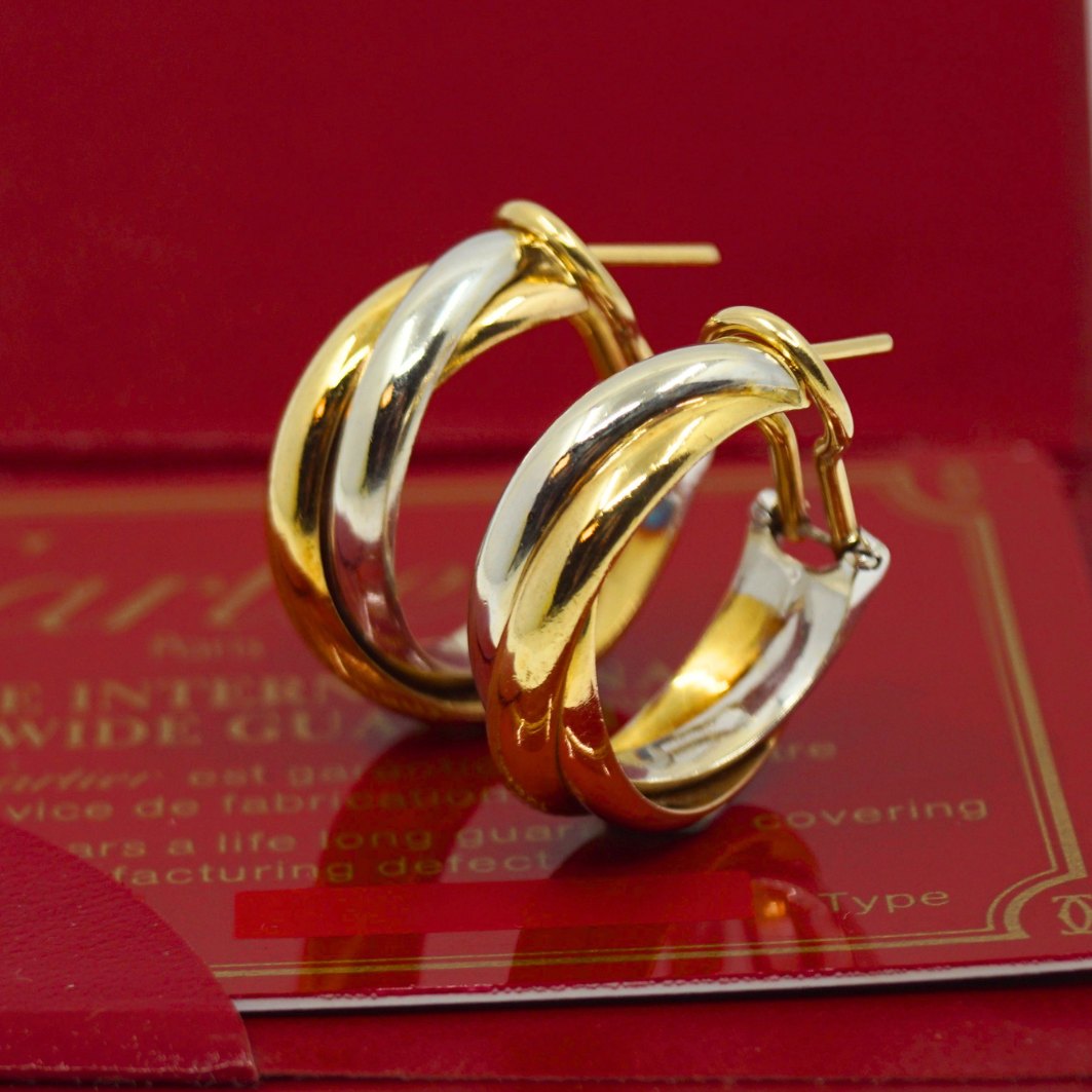 Pair of Cartier Trinity earrings in medium size made of 18k gold, rose gold, and white gold.Diameter 2.3 cm.