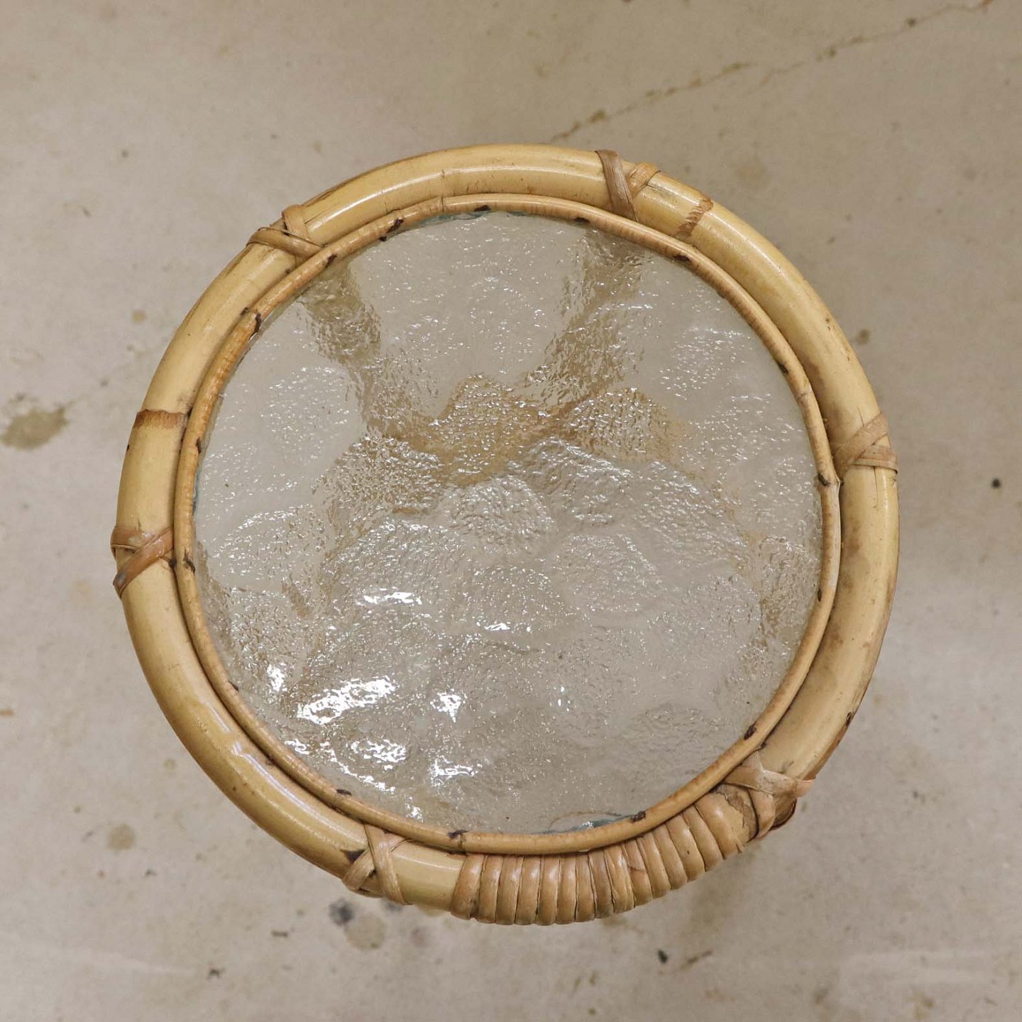Blomsteropsats i bambus med topplade i glas med struktureret bagside.Producent ukendt