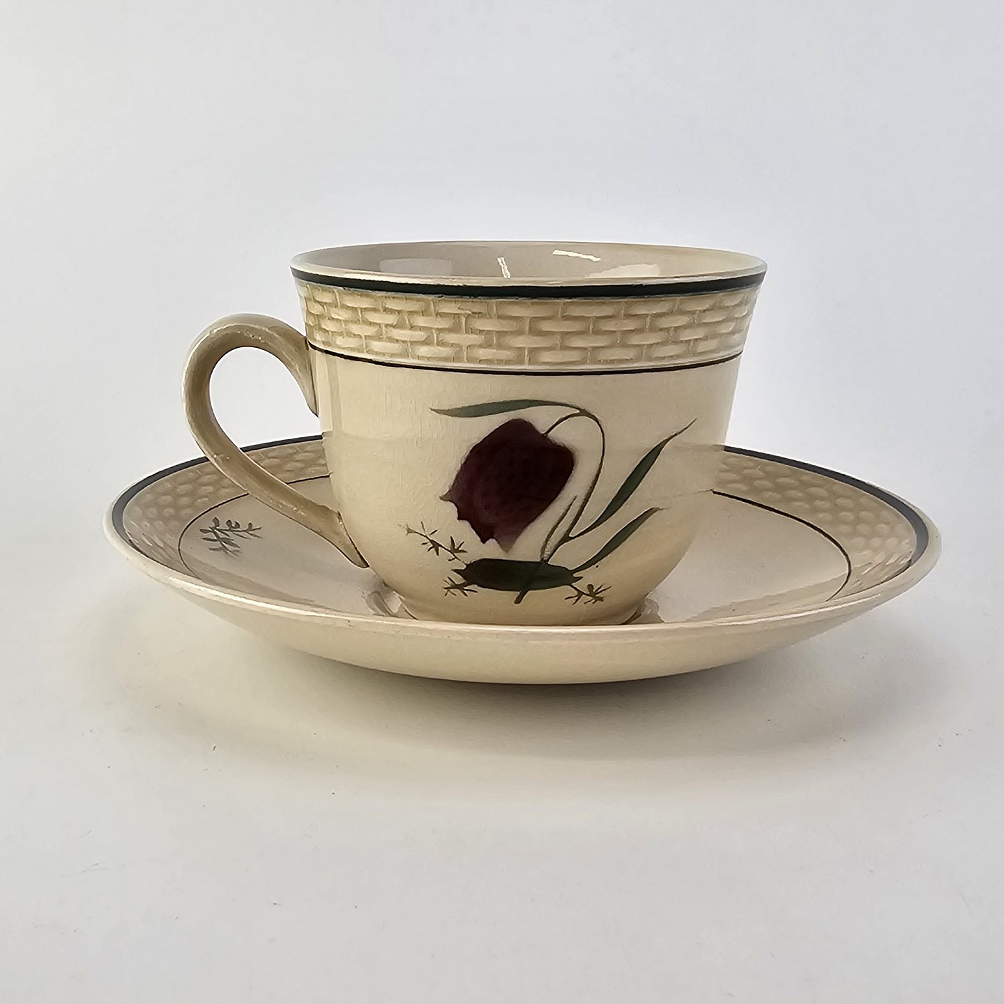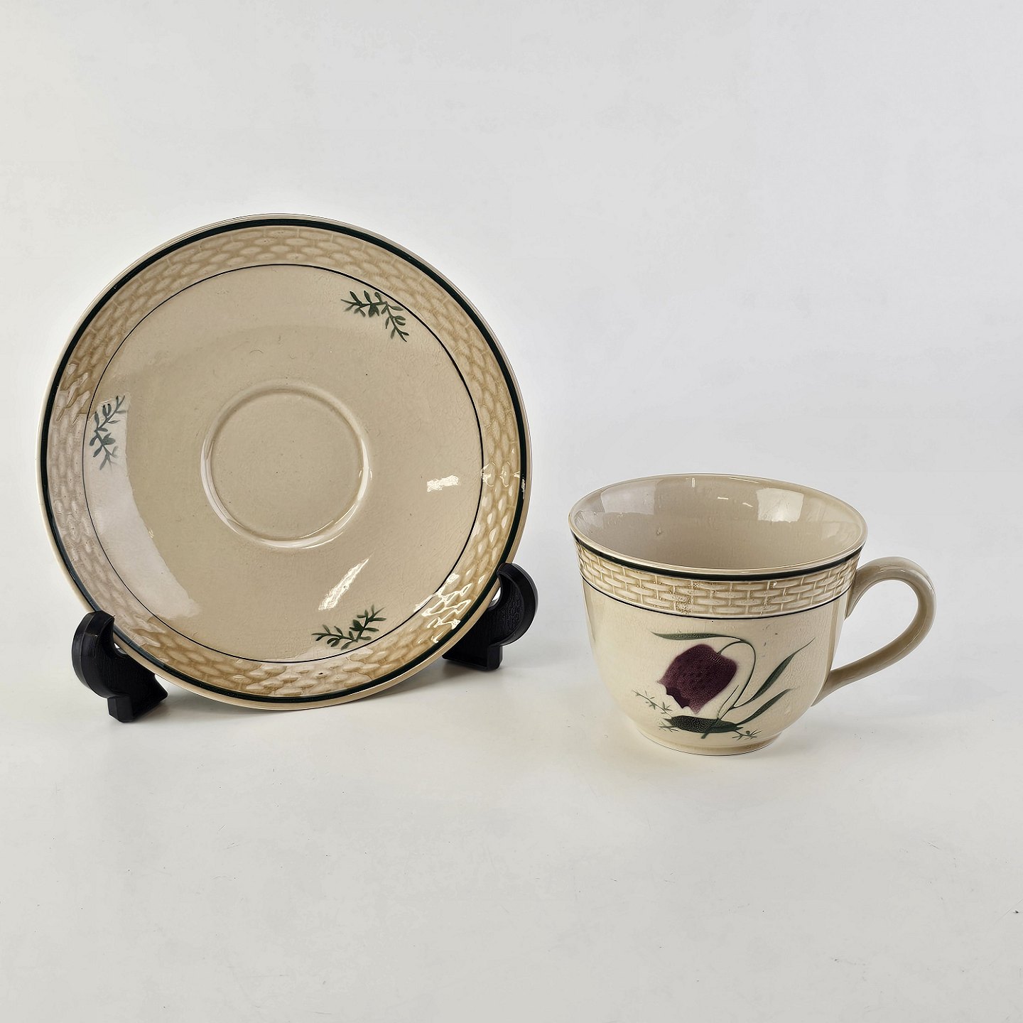 Kaffekop med underkop i fajance fra stellet Vibeæg Formgiver Nils Thorsson